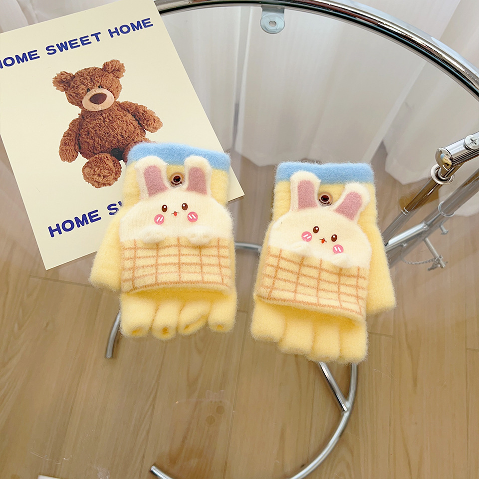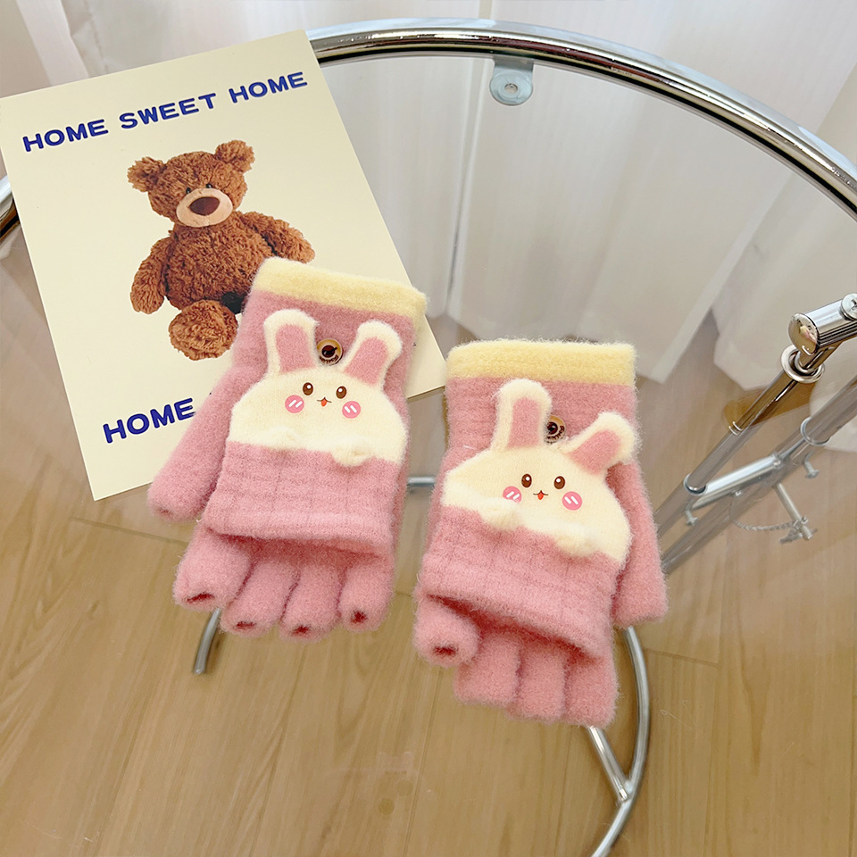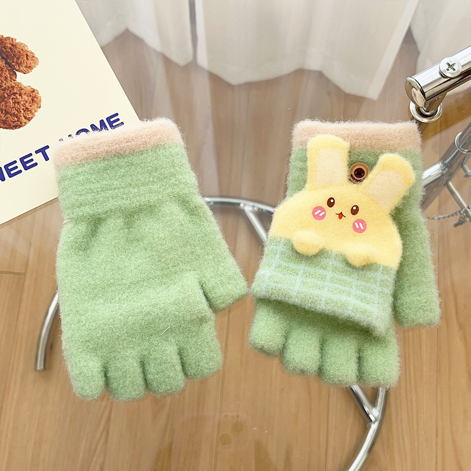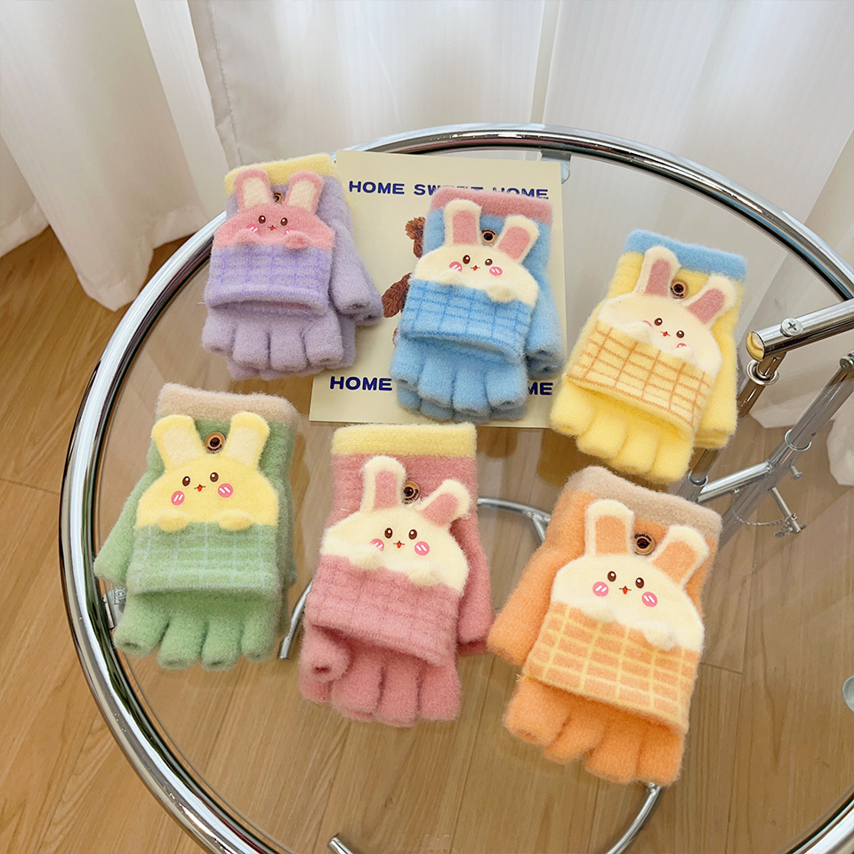 한국 슈퍼 귀여운 어린이 하프 핑거 플립 장갑 겨울 방한 두꺼운 만화 귀여운 중간과 큰 어린이 어린 소녀 다섯 손가락