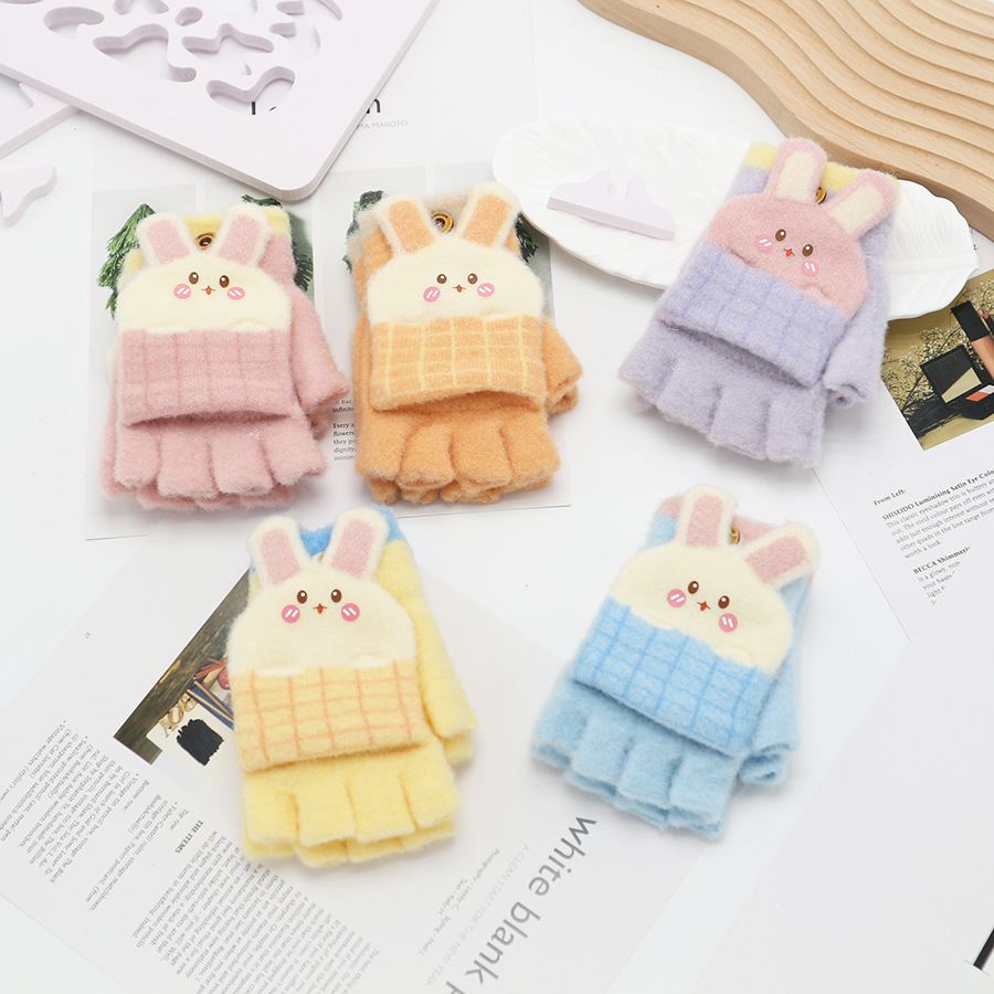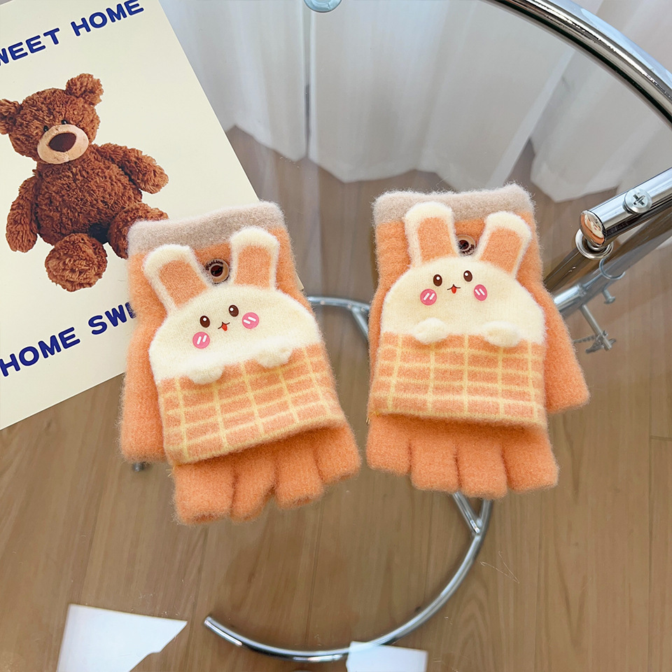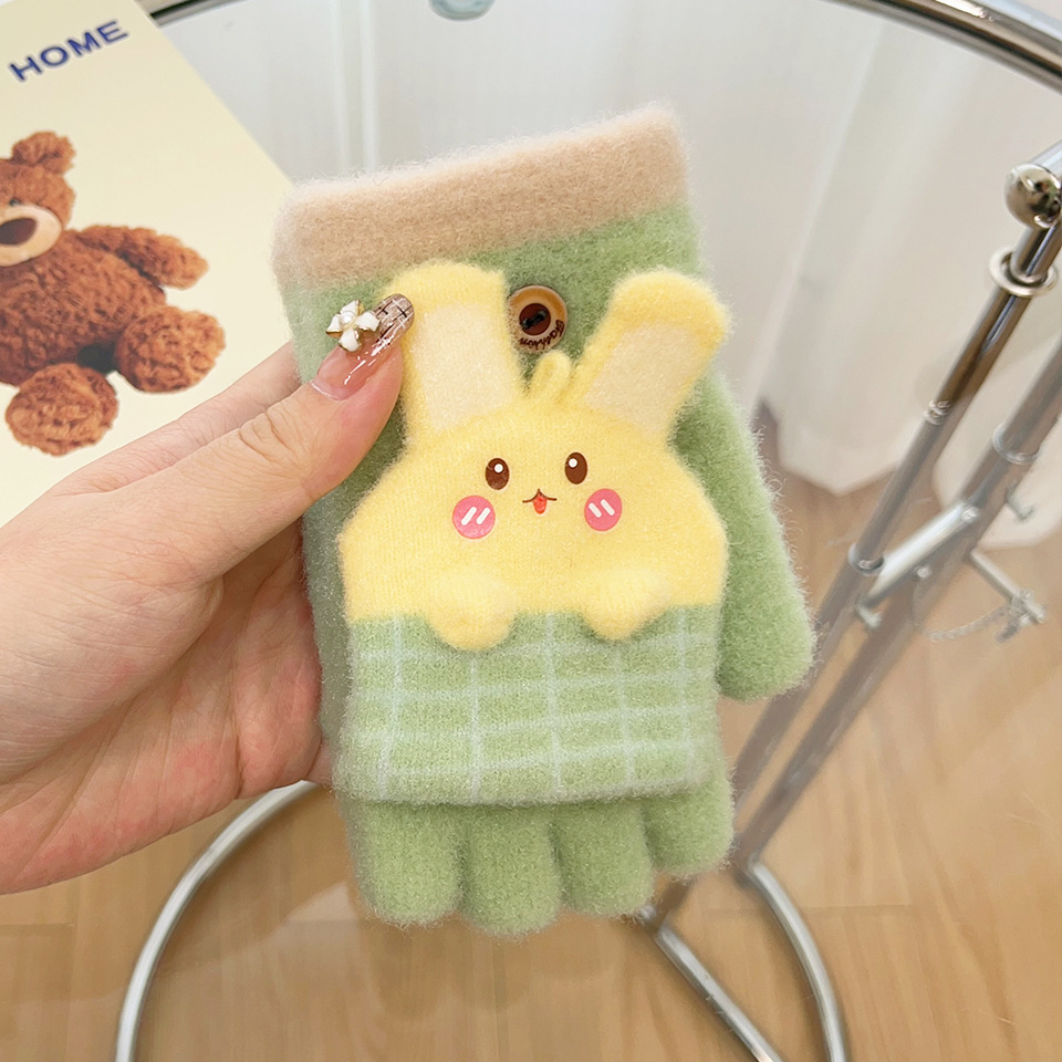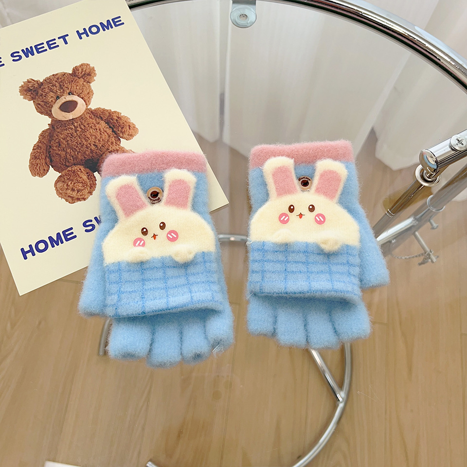 한국 슈퍼 귀여운 어린이 하프 핑거 플립 장갑 겨울 방한 두꺼운 만화 귀여운 중간과 큰 어린이 어린 소녀 다섯 손가락