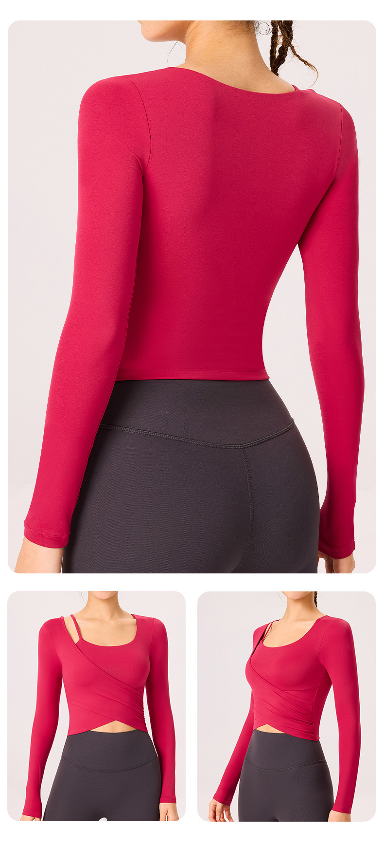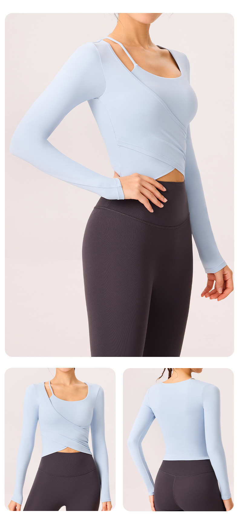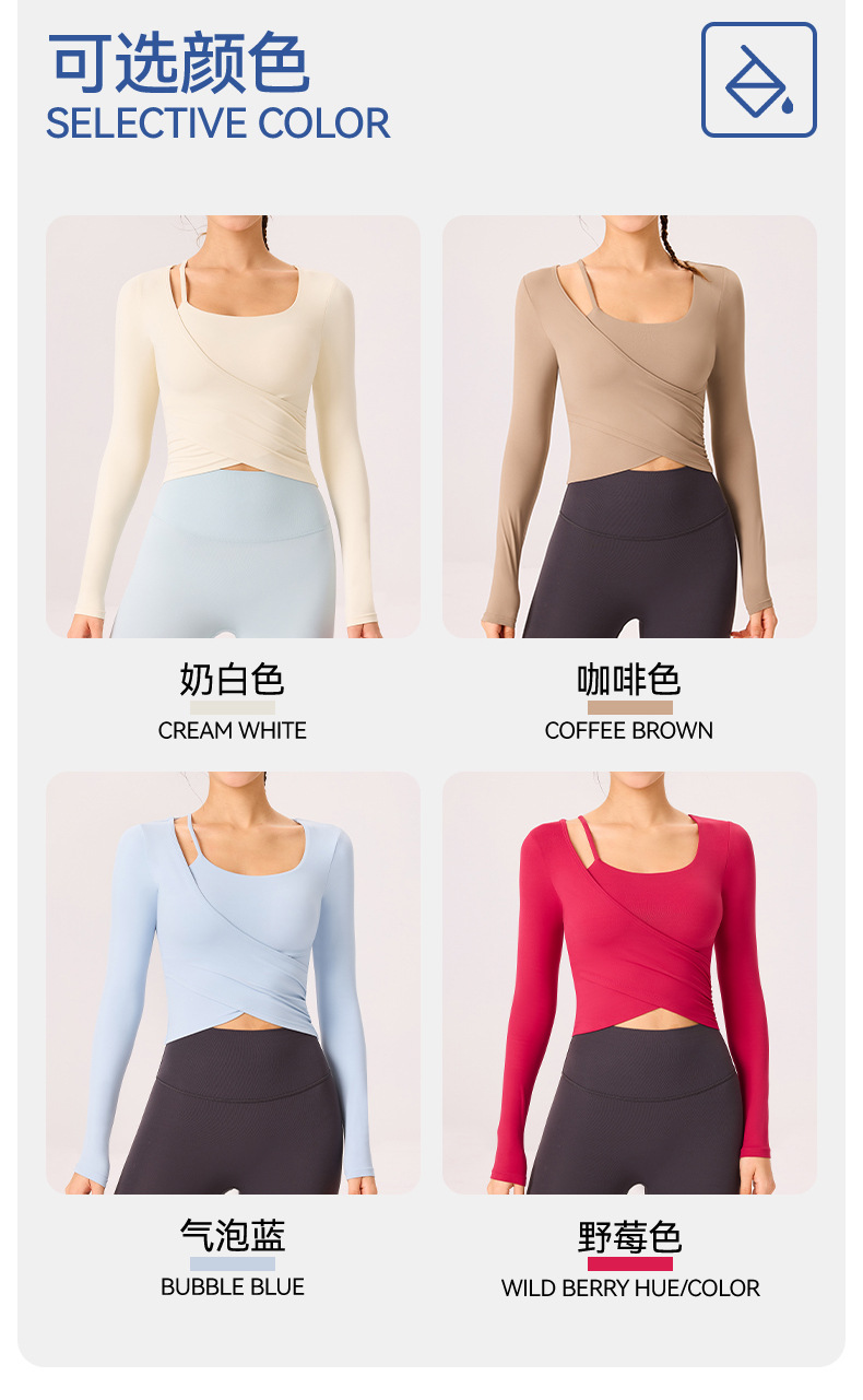 가을 겨울 신상품, 누드톤 요가복, 긴팔 통기성 슬림핏 고정컵 일체형 피트니스 러닝 탑 여성용