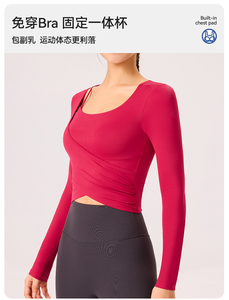 가을 겨울 신상품, 누드톤 요가복, 긴팔 통기성 슬림핏 고정컵 일체형 피트니스 러닝 탑 여성용스토어 가기