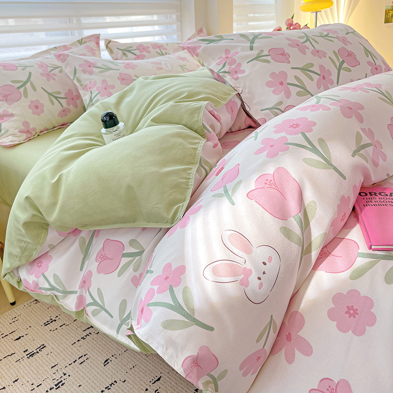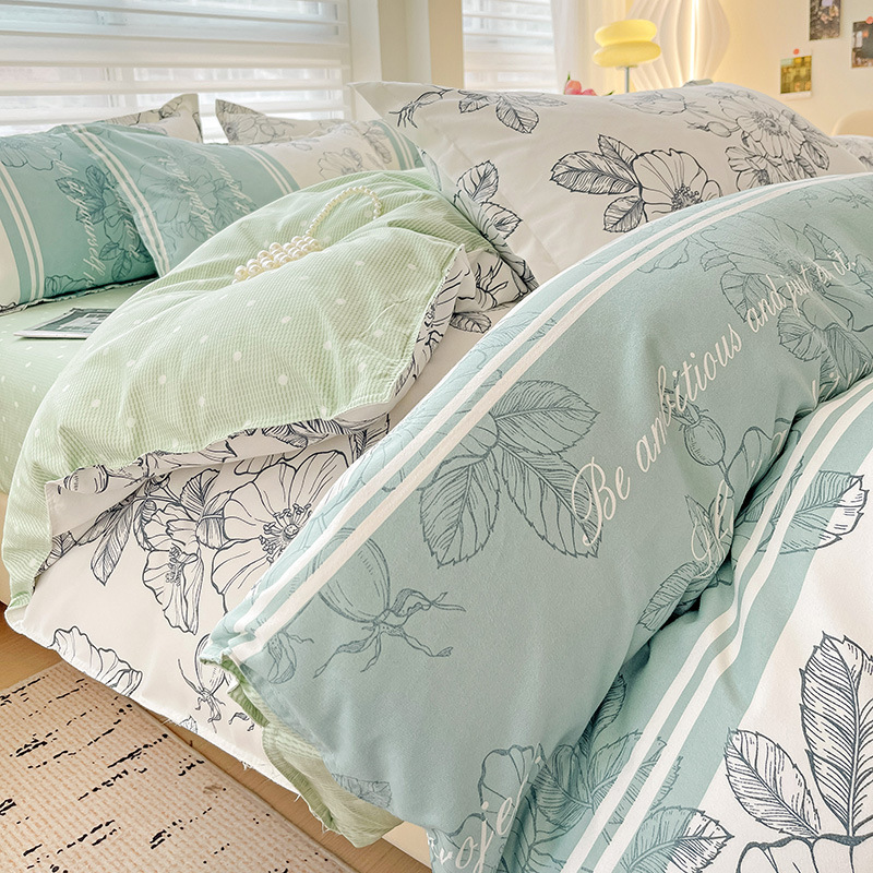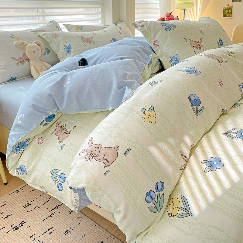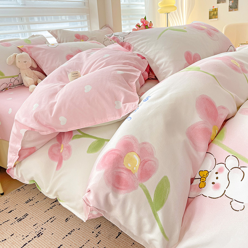 클래스 A 작은 신선한 면 기모 4피스 선물 세트 학생 기숙사 3피스 홈 세트 이불 커버