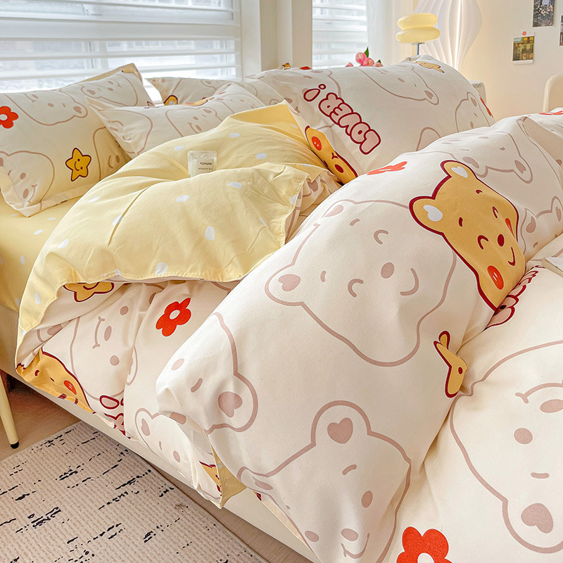 클래스 A 작은 신선한 면 기모 4피스 선물 세트 학생 기숙사 3피스 홈 세트 이불 커버스토어 가기