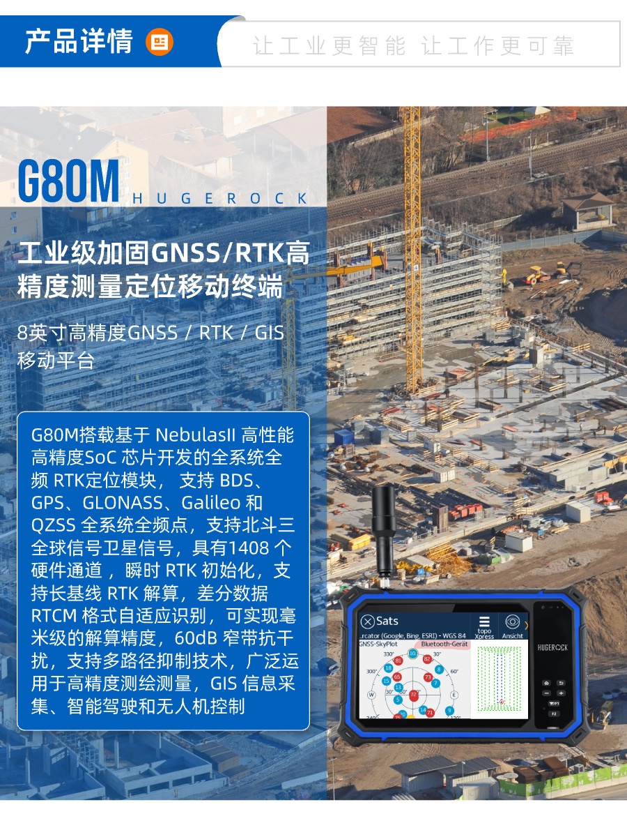 HUGEROCK G80M 산업용 등급 8inch 휴대용 모바일 포지셔닝 터미널 고정밀 측정 전방향 밀리미터 수준