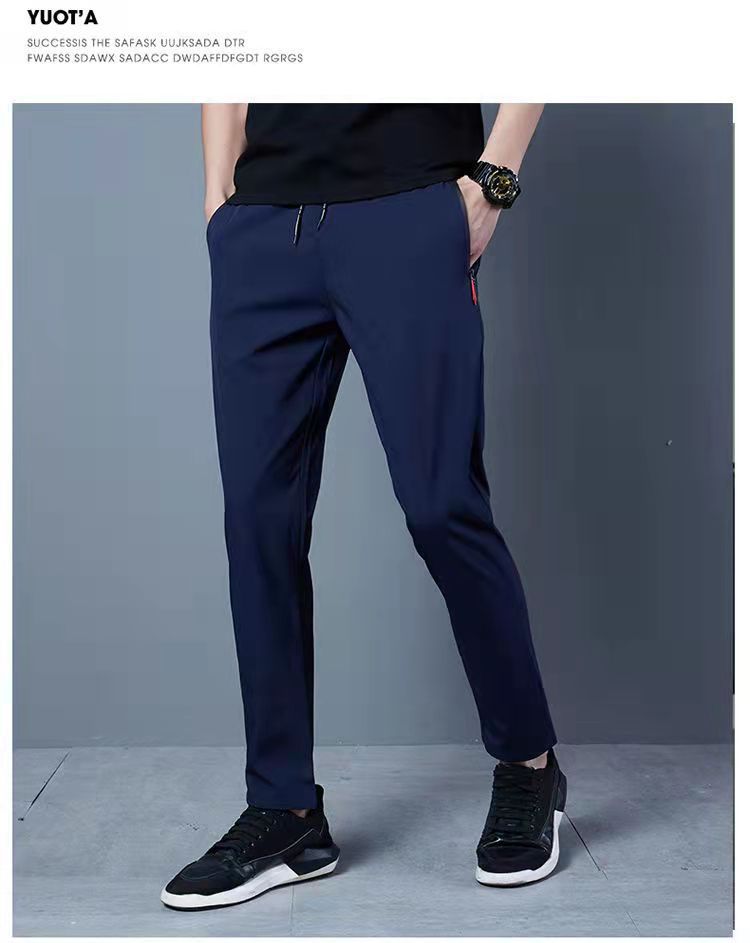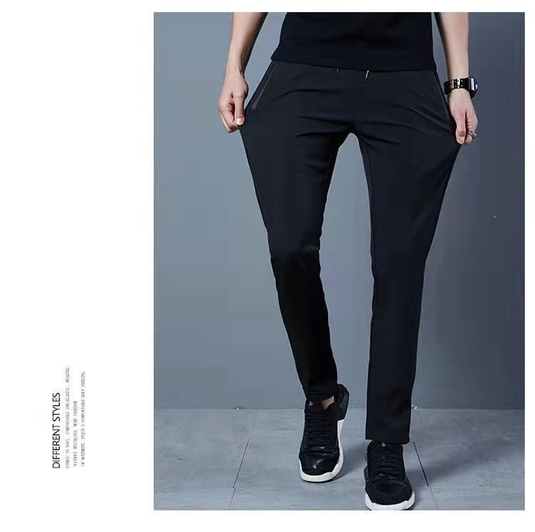 2022 년 봄과 가을 바지 남성 한국 트렌드 단색 슬림 스트레이트 튜브 스트레칭 조커 아이스 실크 남성 토양 캐주얼 바지 도매스토어 가기