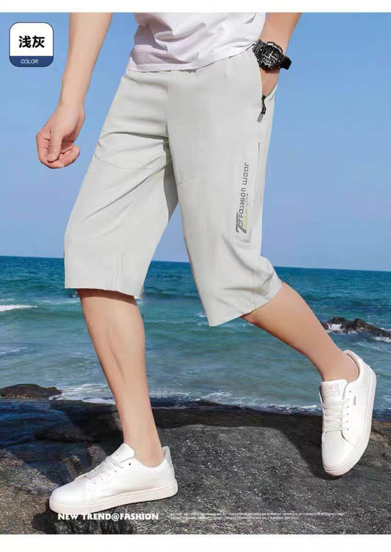 TikTok 바지 남자 여름 얇은 느슨한 얼음 실크 캐주얼 스포츠 유행 여름 바지 플러스 사이즈 반바지스토어 가기