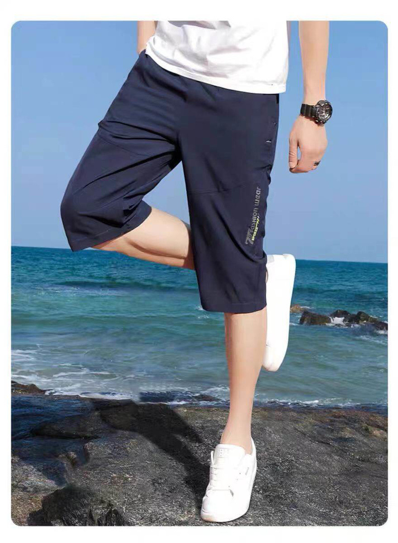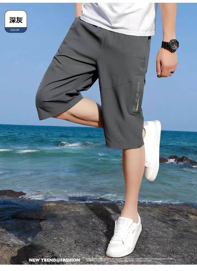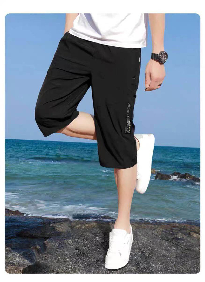 TikTok 바지 남자 여름 얇은 느슨한 얼음 실크 캐주얼 스포츠 유행 여름 바지 플러스 사이즈 반바지