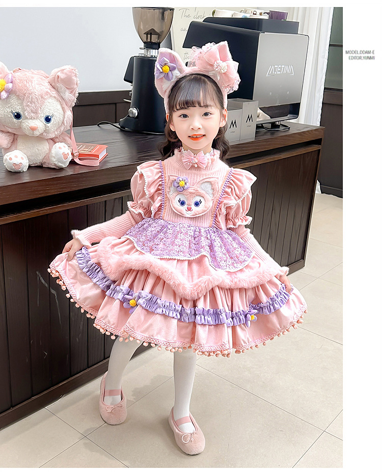 소녀 로리타 링나 벨 프린세스 원피스 2024 가을/겨울 새 어린이 스웨터 원피스 생일 폰카타
