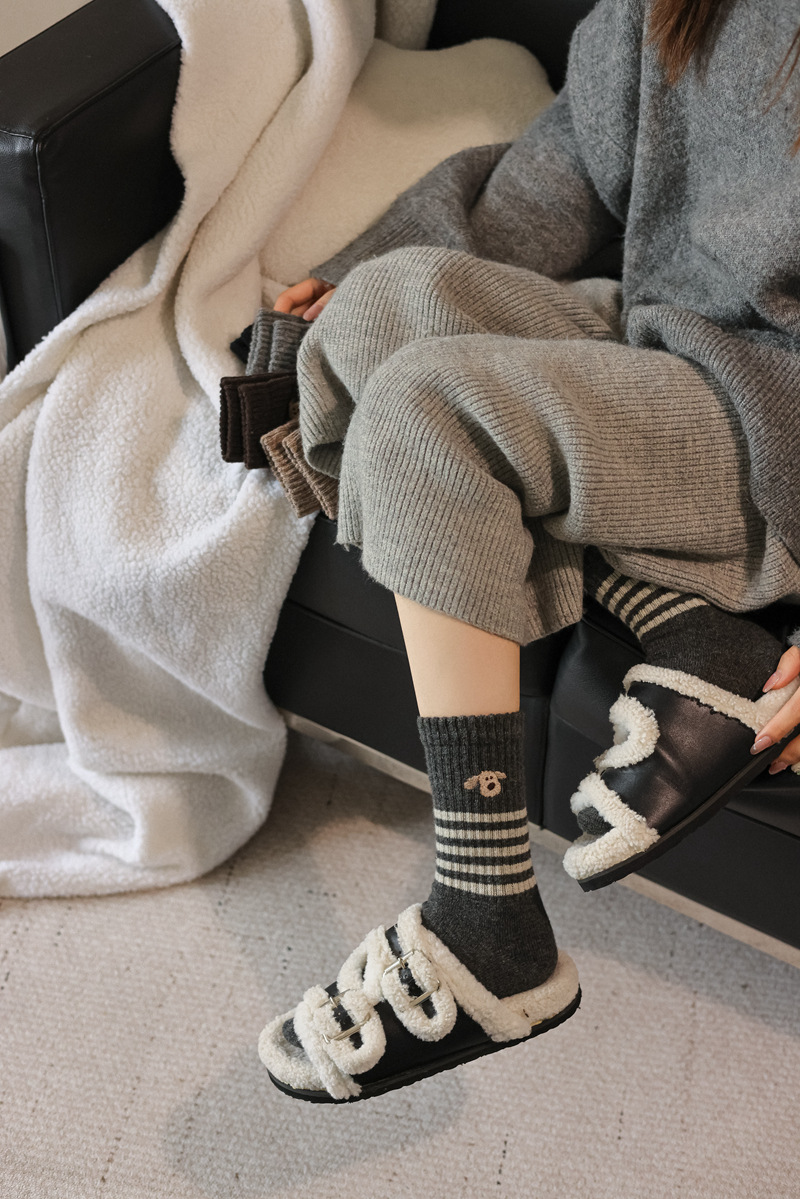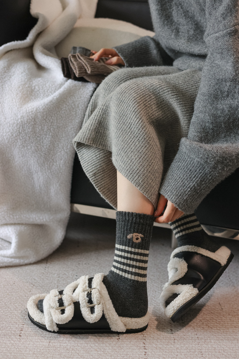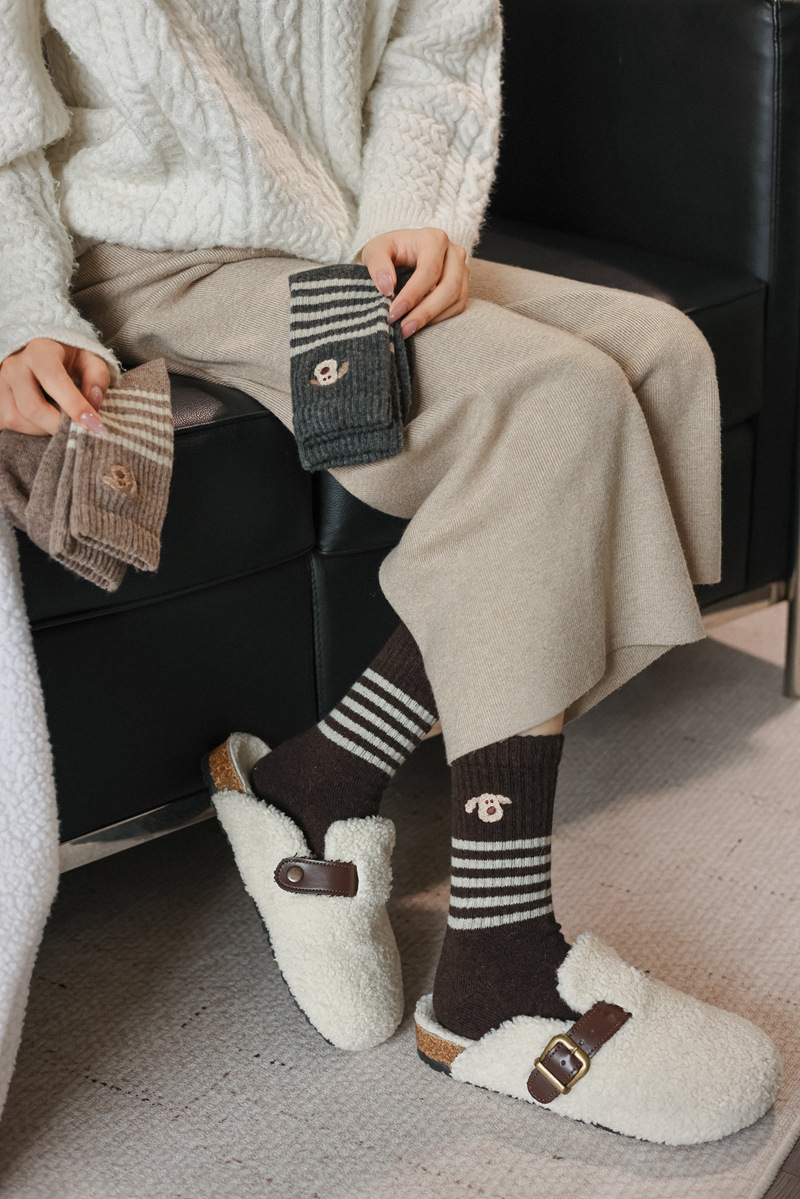 귀여운 개 양모 양말 여성 일본 줄무늬 마일 라드 미드 배럴 스택 양말 여성의 겨울 두꺼운 캐시미어 양말