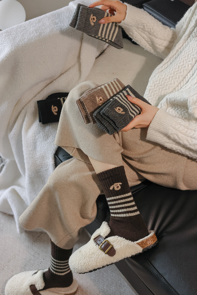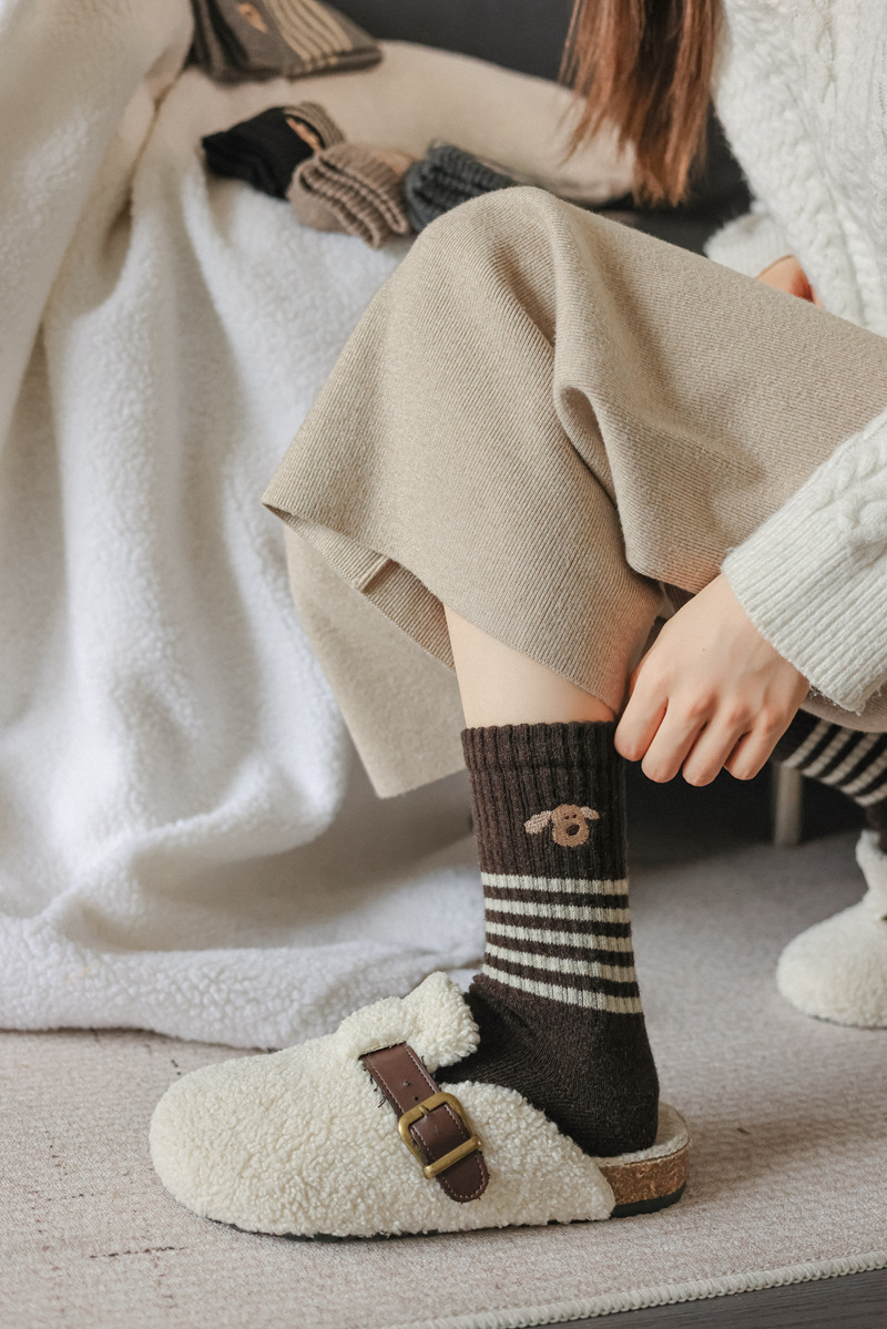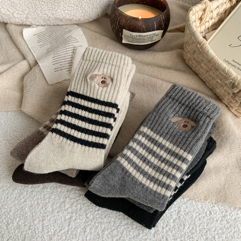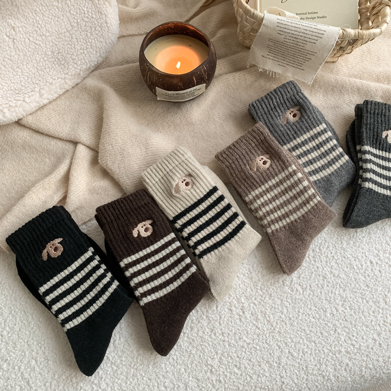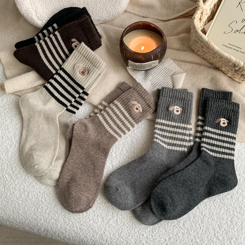 귀여운 개 양모 양말 여성 일본 줄무늬 마일 라드 미드 배럴 스택 양말 여성의 겨울 두꺼운 캐시미어 양말스토어 가기