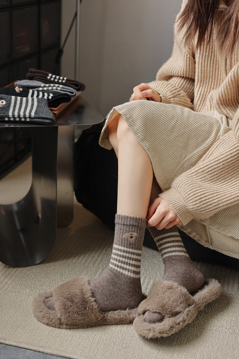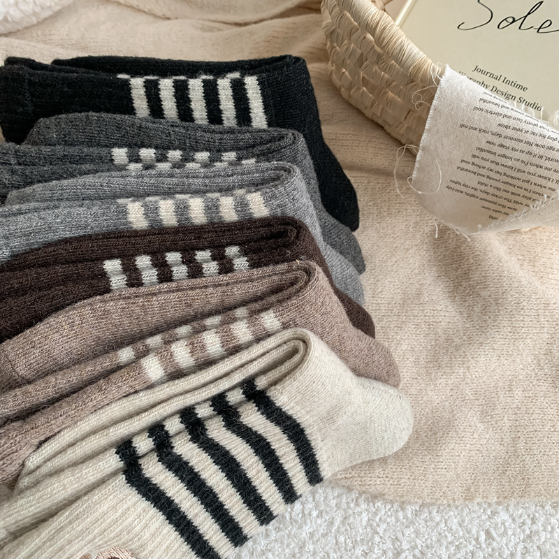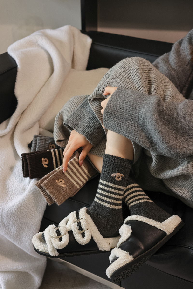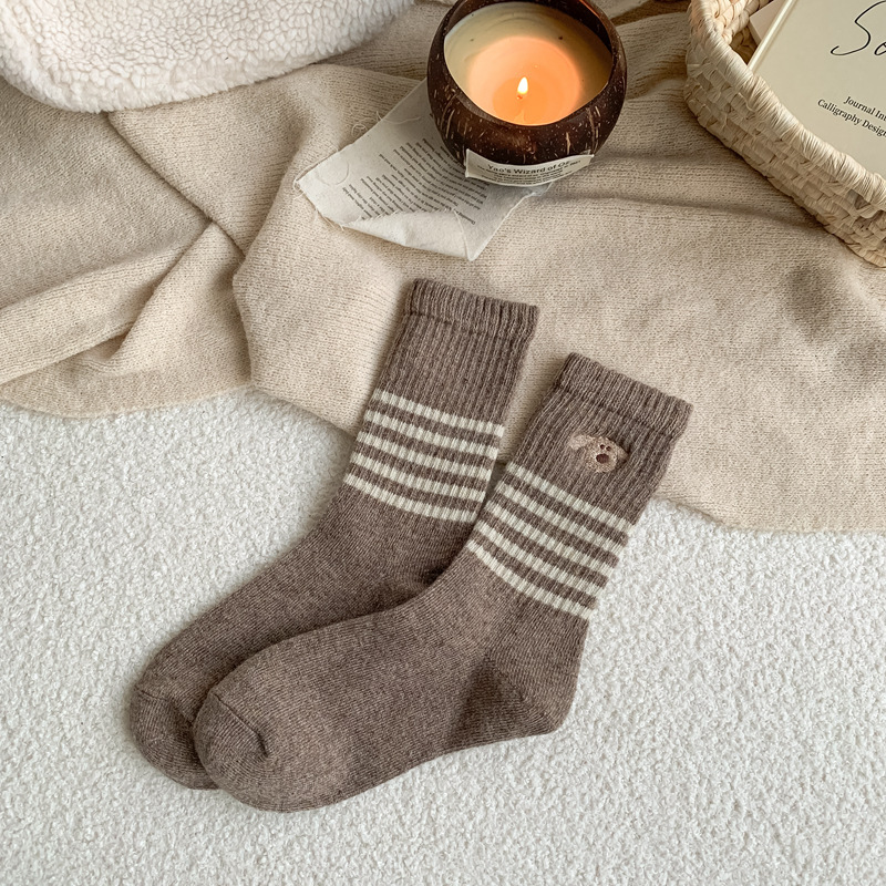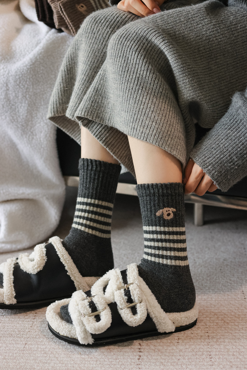 귀여운 개 양모 양말 여성 일본 줄무늬 마일 라드 미드 배럴 스택 양말 여성의 겨울 두꺼운 캐시미어 양말스토어 가기