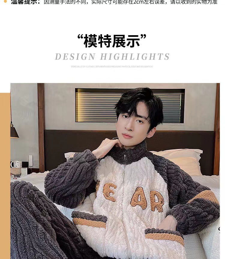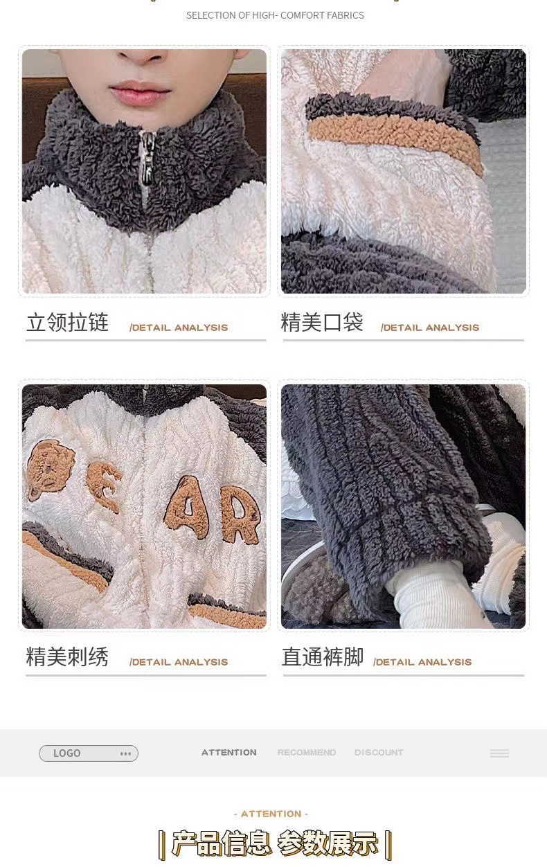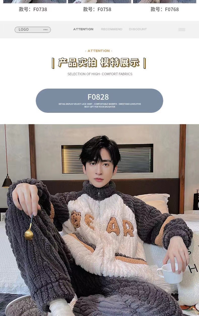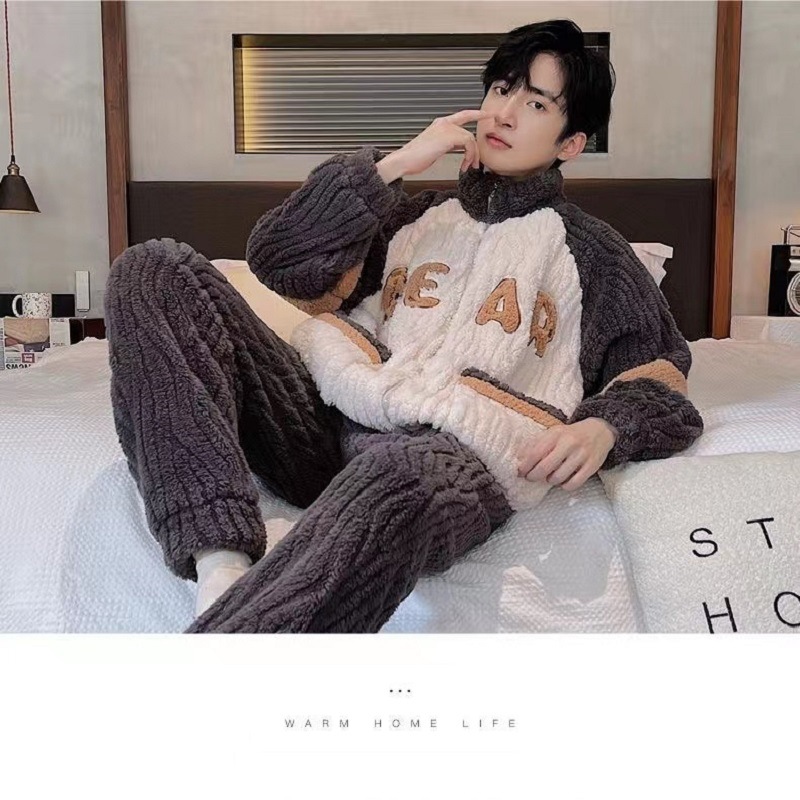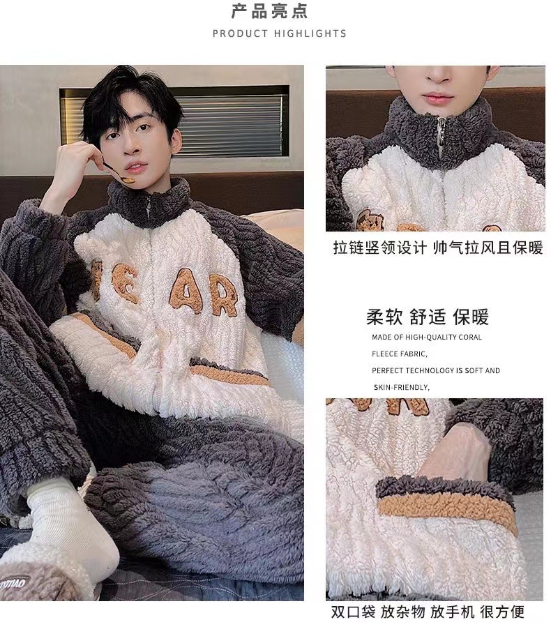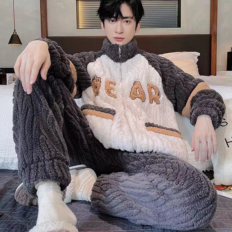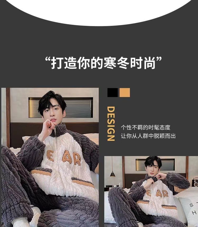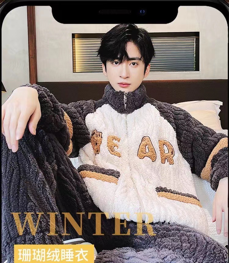 2023 새로운 남자 잠옷 겨울 산호 양털 지퍼 두꺼운 기모 홈 옷 플러스 사이즈 세트스토어 가기