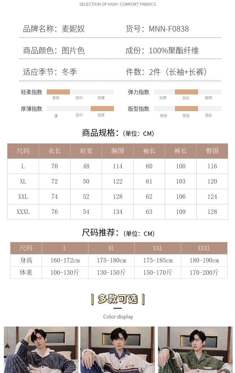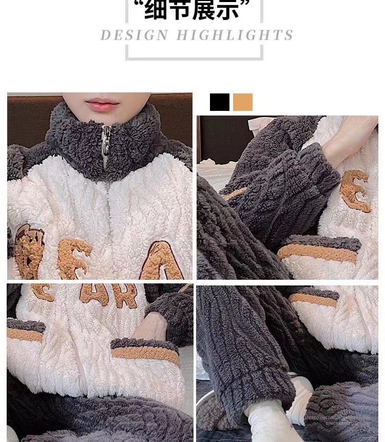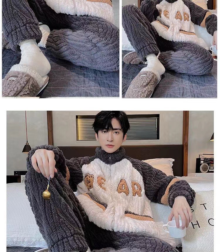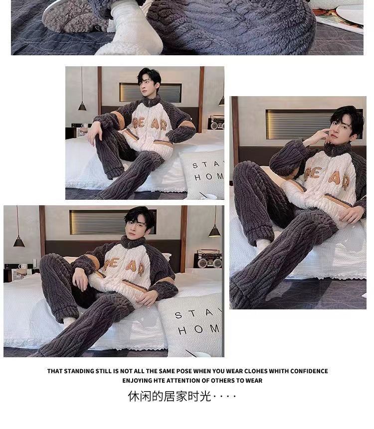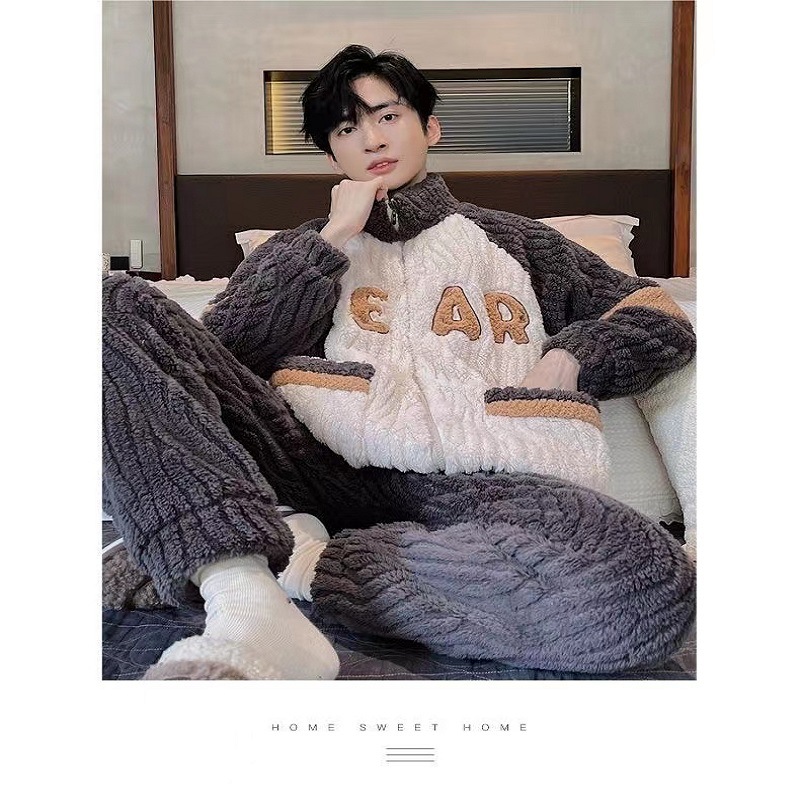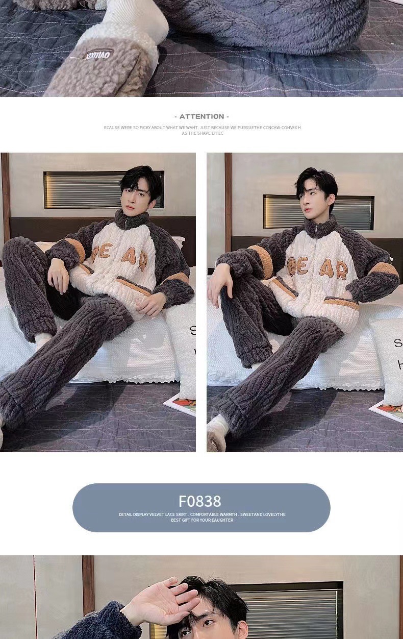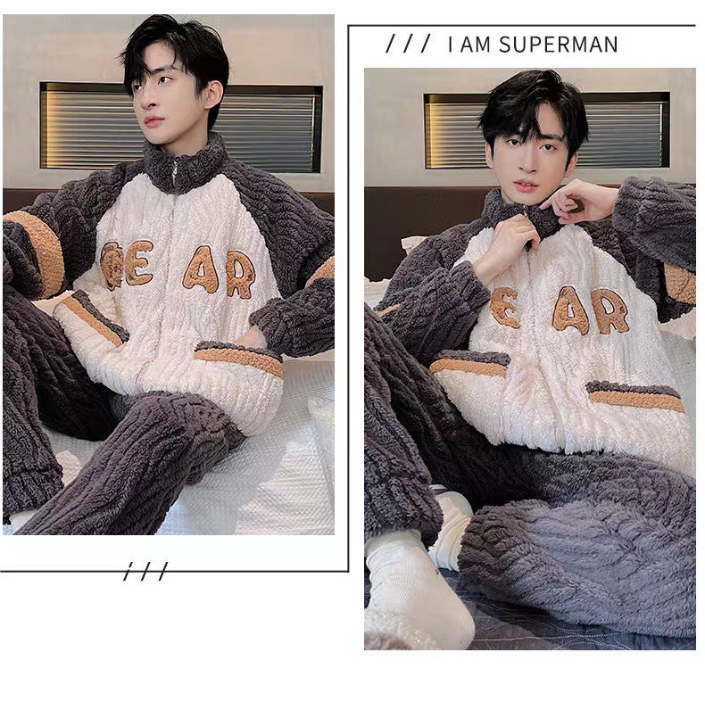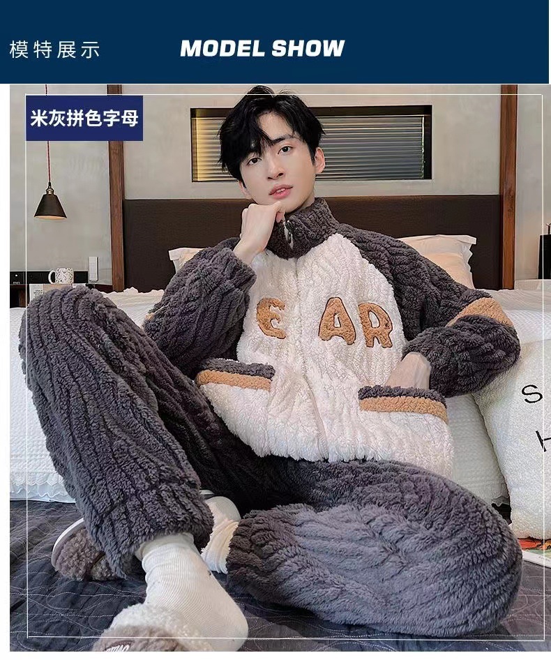 2023 새로운 남자 잠옷 겨울 산호 양털 지퍼 두꺼운 기모 홈 옷 플러스 사이즈 세트스토어 가기