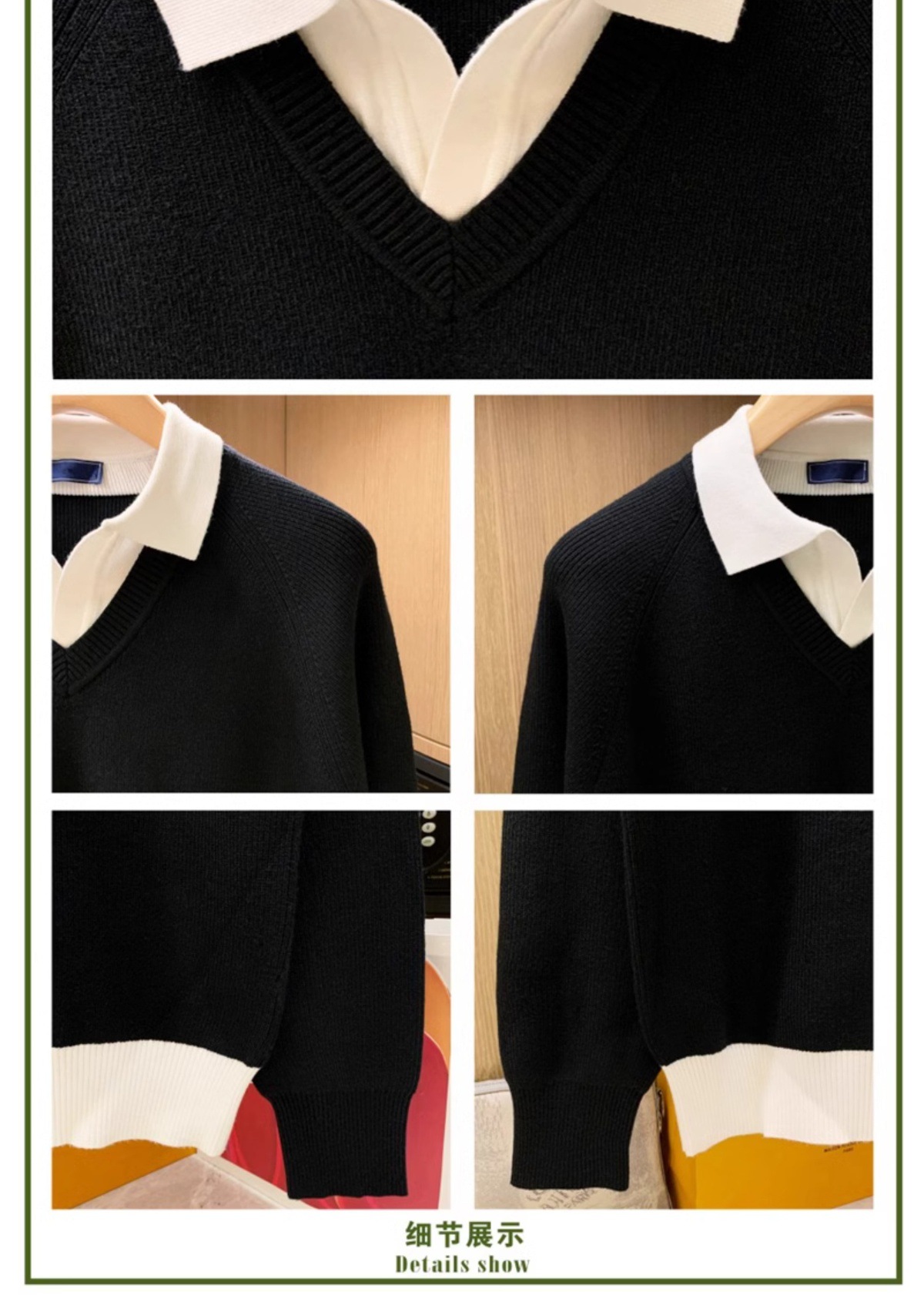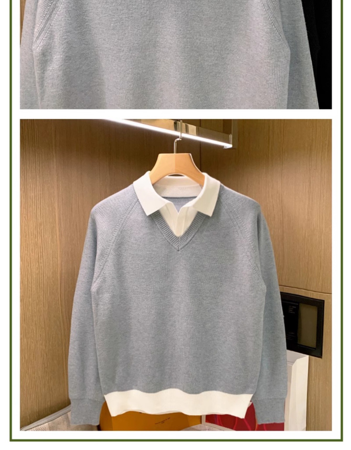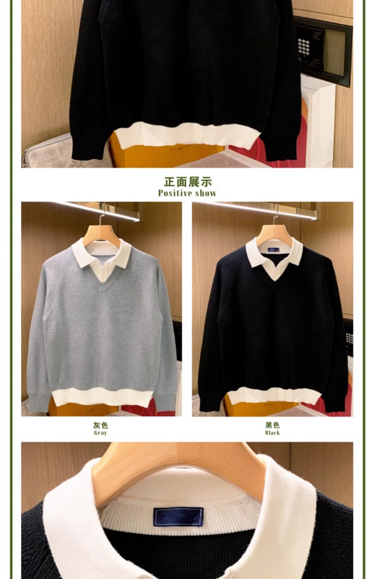 캐주얼 내부 니트 셔츠 남성 최고 긴팔 폴로 셔츠 남성용 하이 엔드 패션 스티칭 남성용 가짜 투피스 스웨터스토어 가기