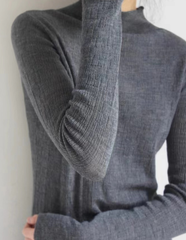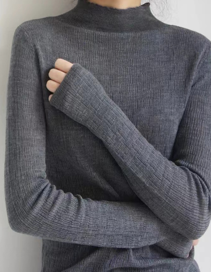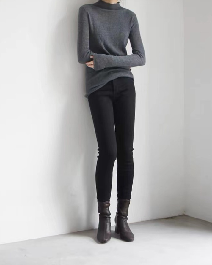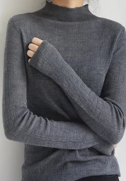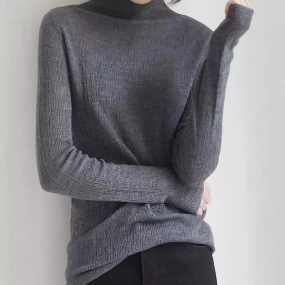 半高领竖纹软糯打底毛衣女秋冬款时尚洋气修身显瘦套头针织衫上衣
