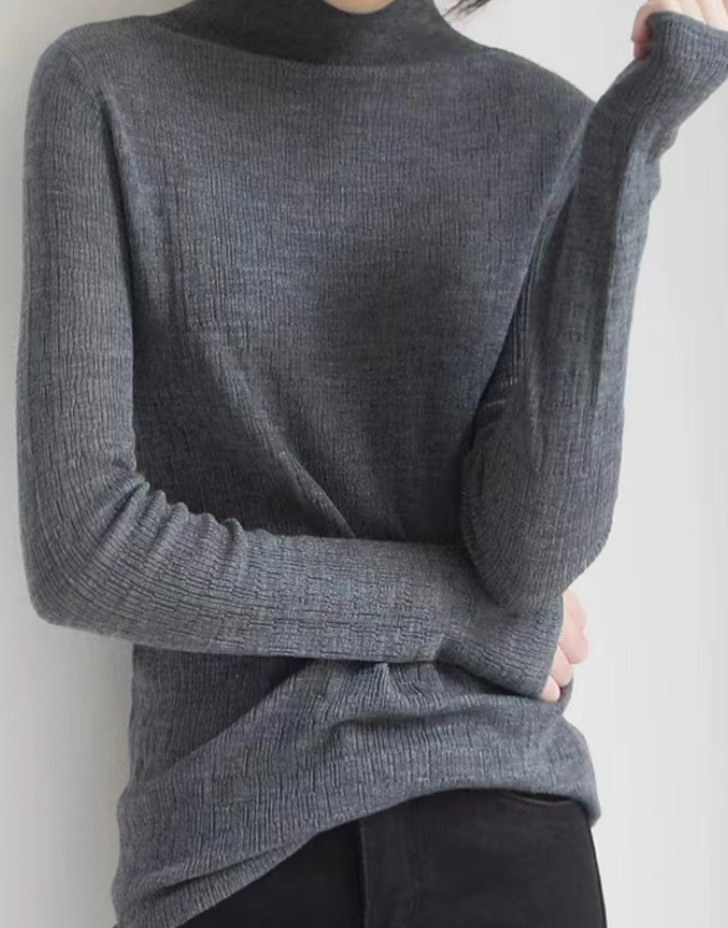 반 높이 칼라 수직 패턴 부드러운 왁스베이스 스웨터 여성의 가을 및 겨울 유행 웨스턴 스타일 슬림 핏 슬림 풀오버 스웨터 탑