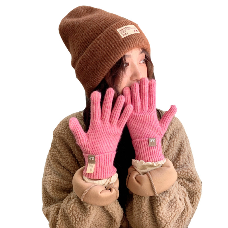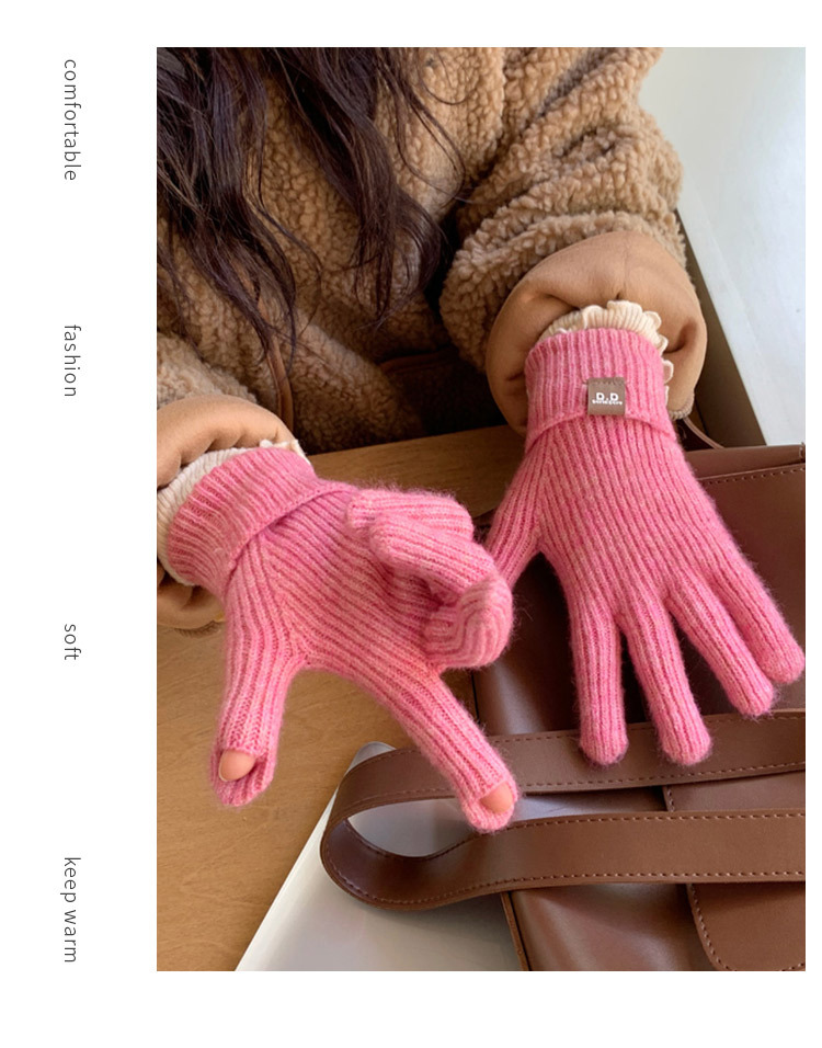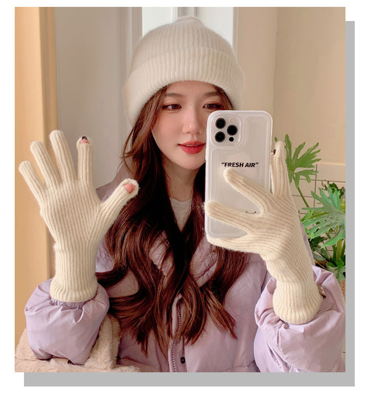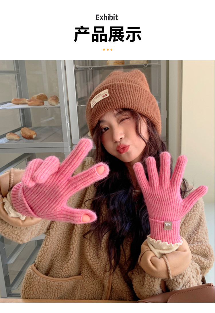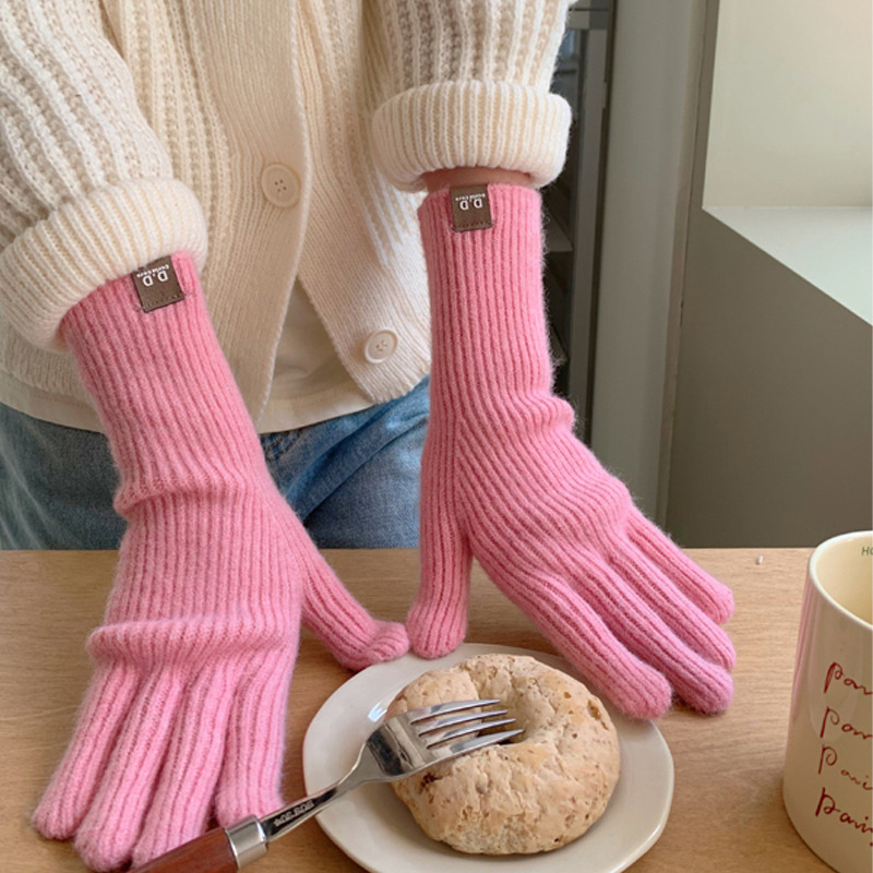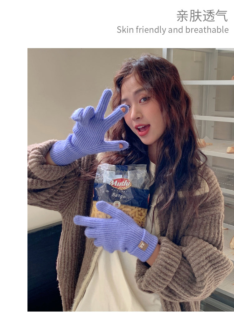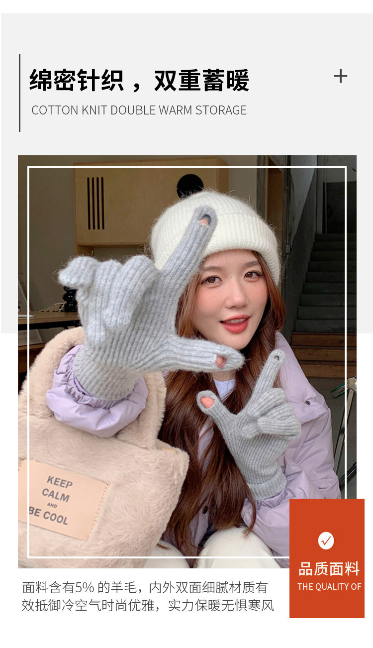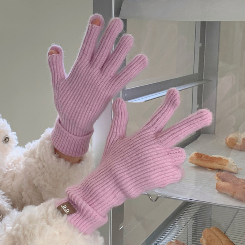 니트 겨울 터치 스크린 방풍 따뜻한 장갑 여성용 한국 귀여운 겨울 감기 방지 울 사이클링 핑거 장갑