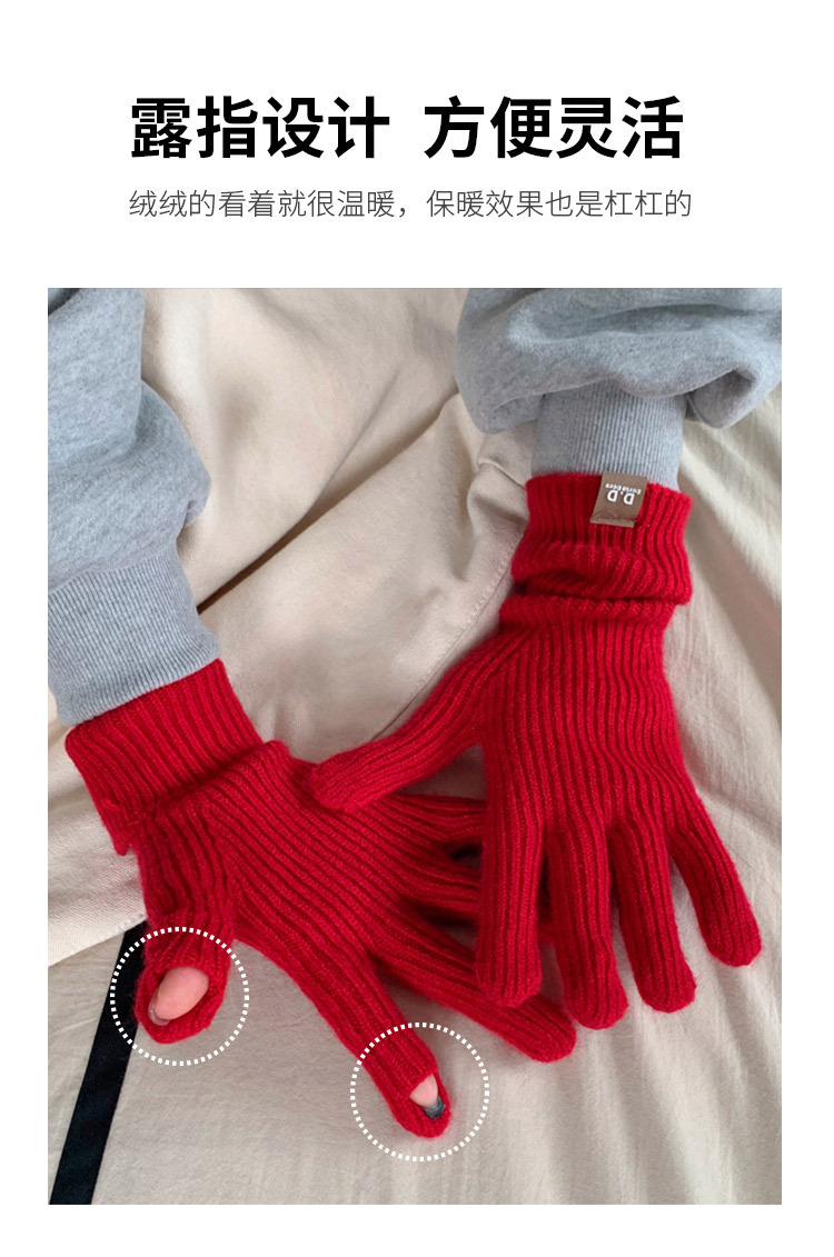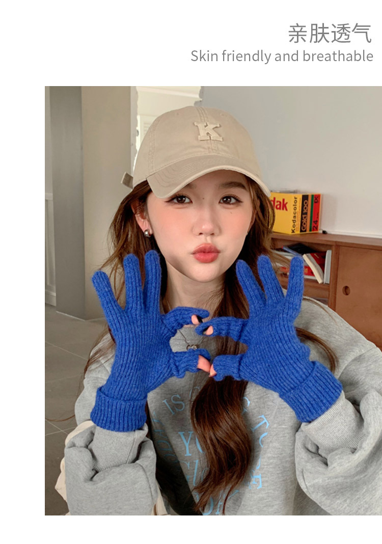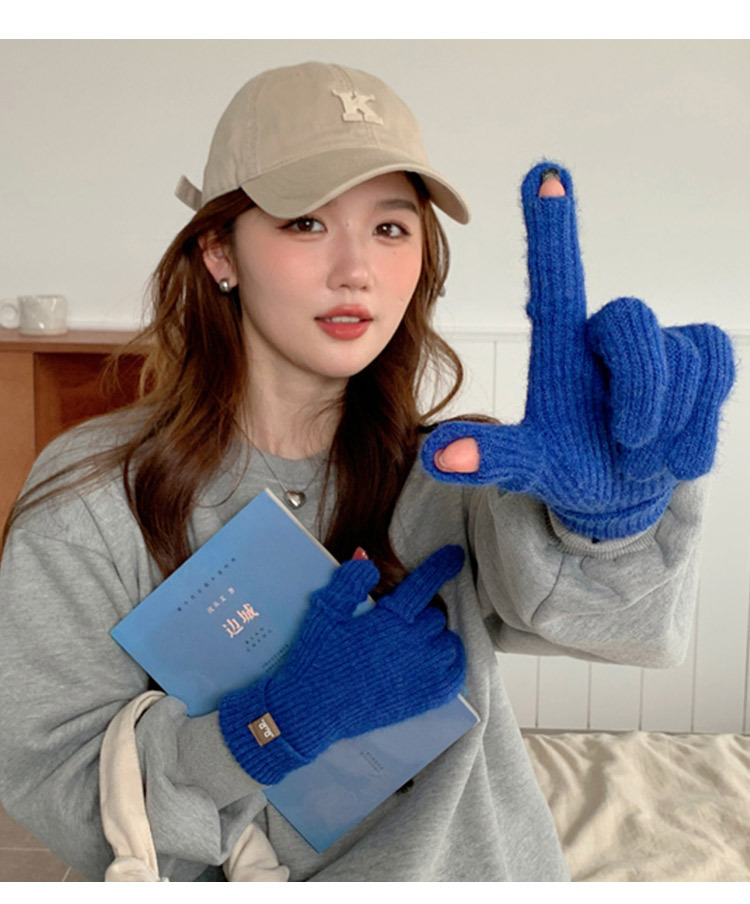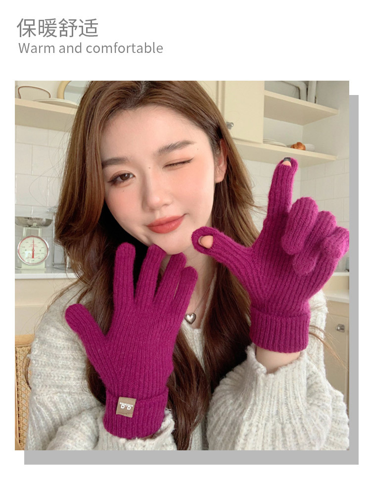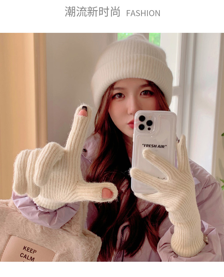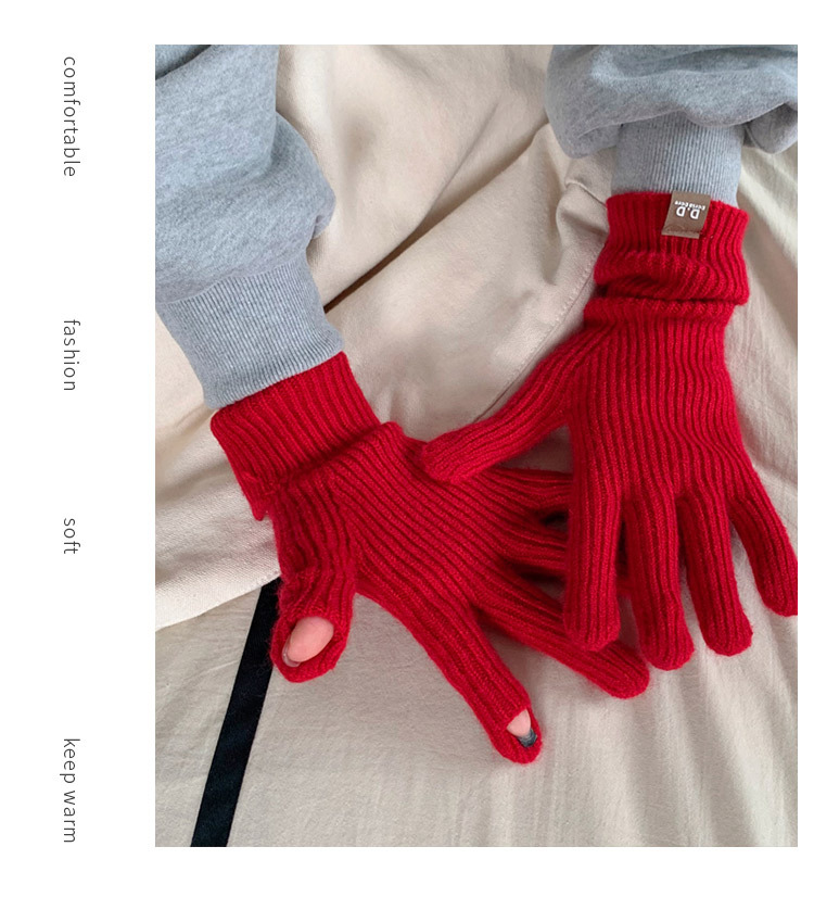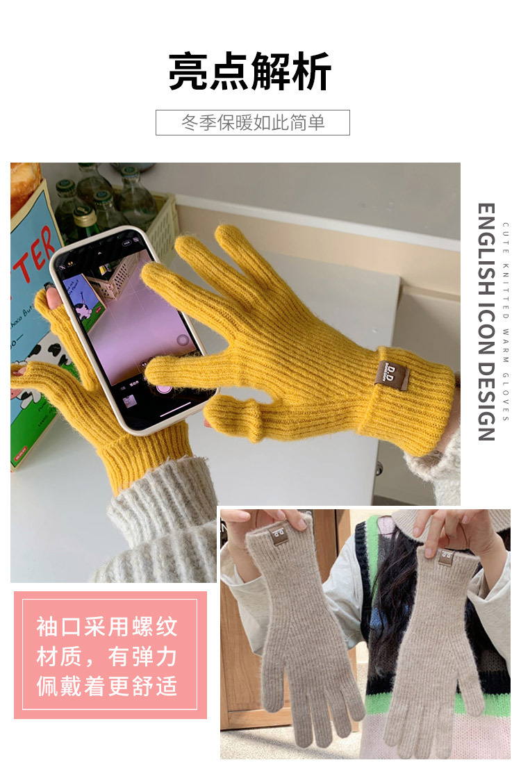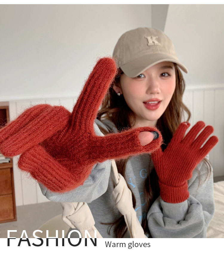 니트 겨울 터치 스크린 방풍 따뜻한 장갑 여성용 한국 귀여운 겨울 감기 방지 울 사이클링 핑거 장갑