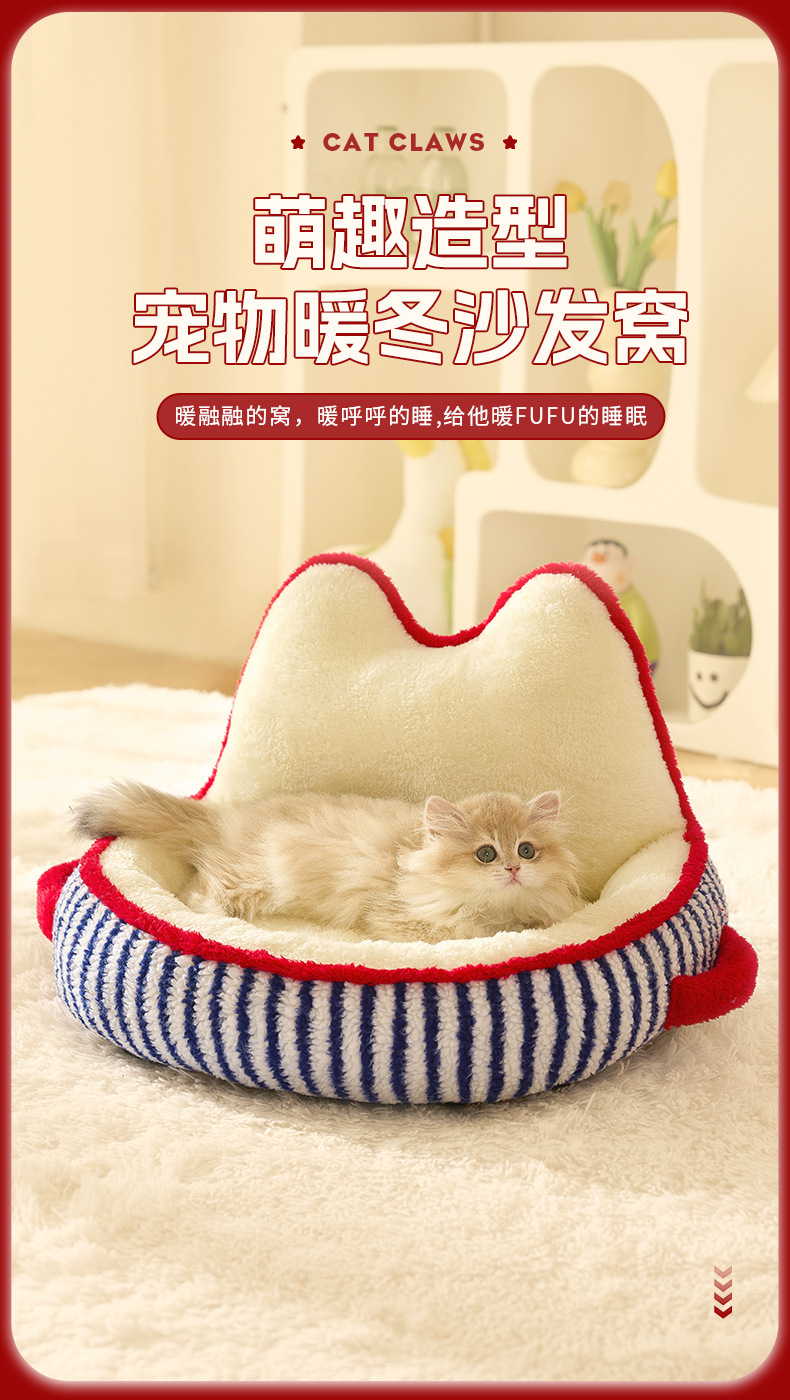 새로운 애완 동물 창조적 인 고양이와 개 가을과 겨울 따뜻한 국경 개집 귀여운 고양이 둥지 산호 양털 도매 소파 재고스토어 가기