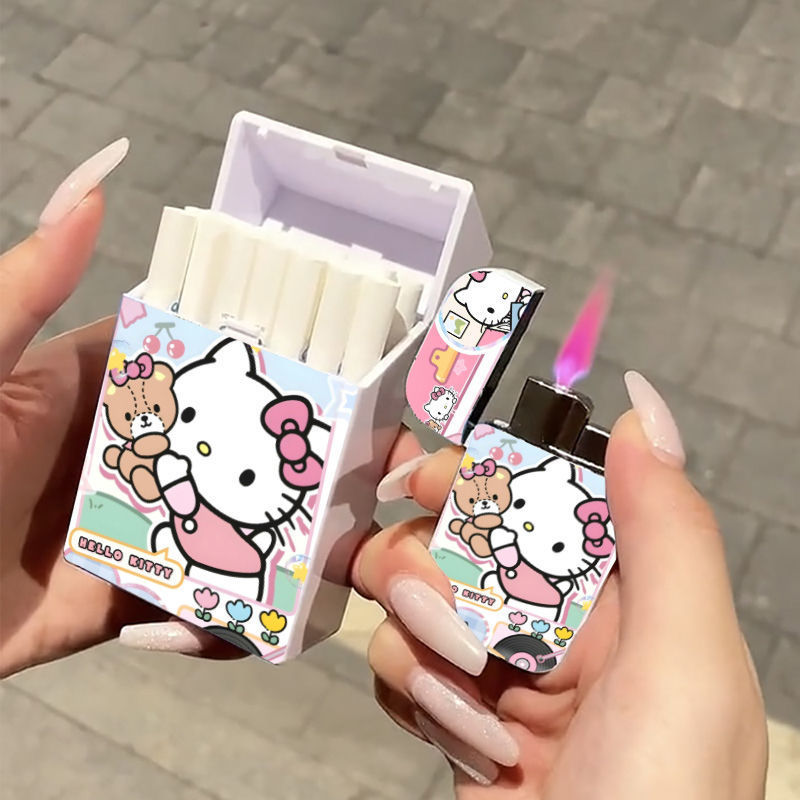 새로운 헬로 키티 고양이 풍선 라이터 플라스틱 담배 케이스 조합 내구성있는 방 방풍 분말 화재