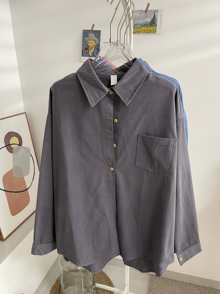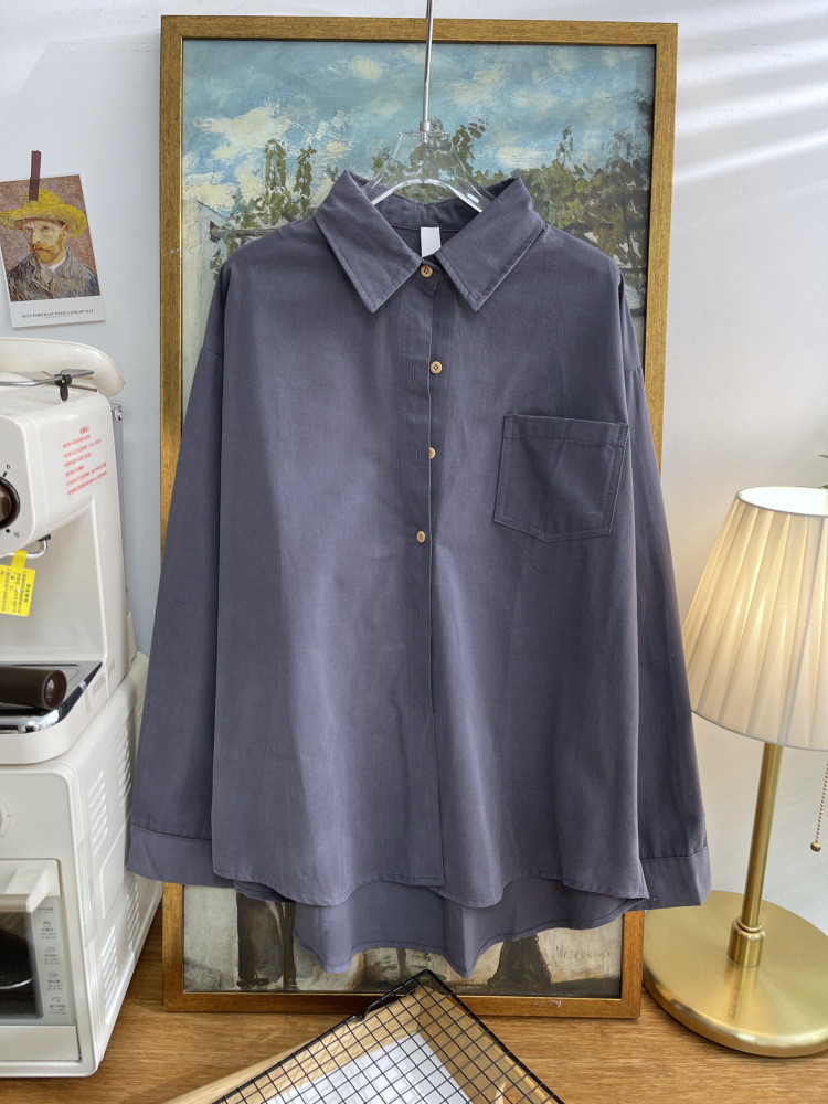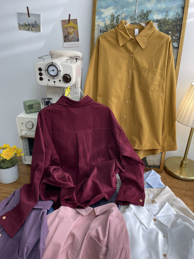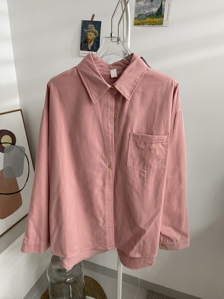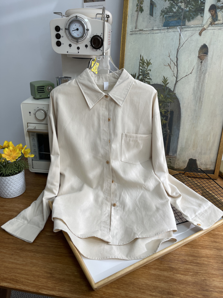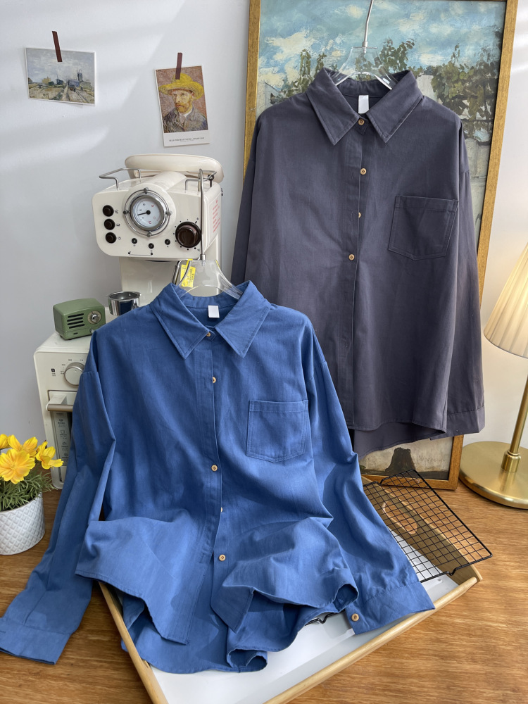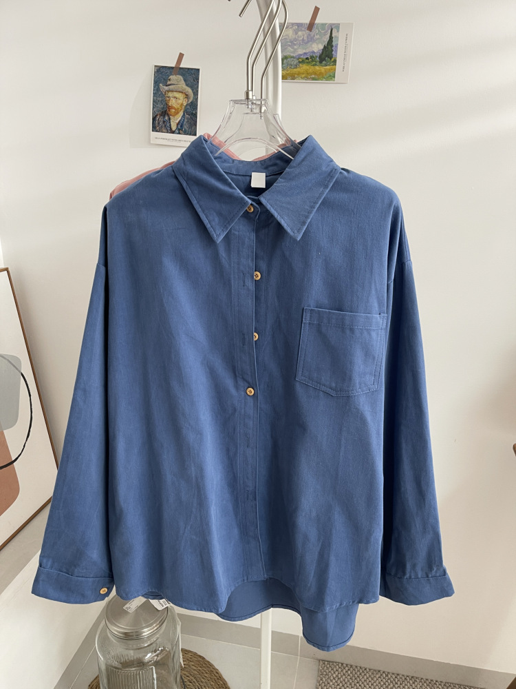 빈티지 옷깃 긴 소매 포켓 셔츠 여성 가을 겨울 한국 스타일 느슨한 캐주얼 스택 셔츠 올 매치 톱 4945