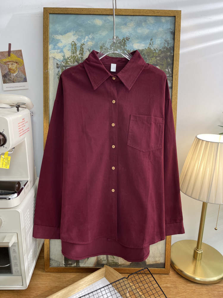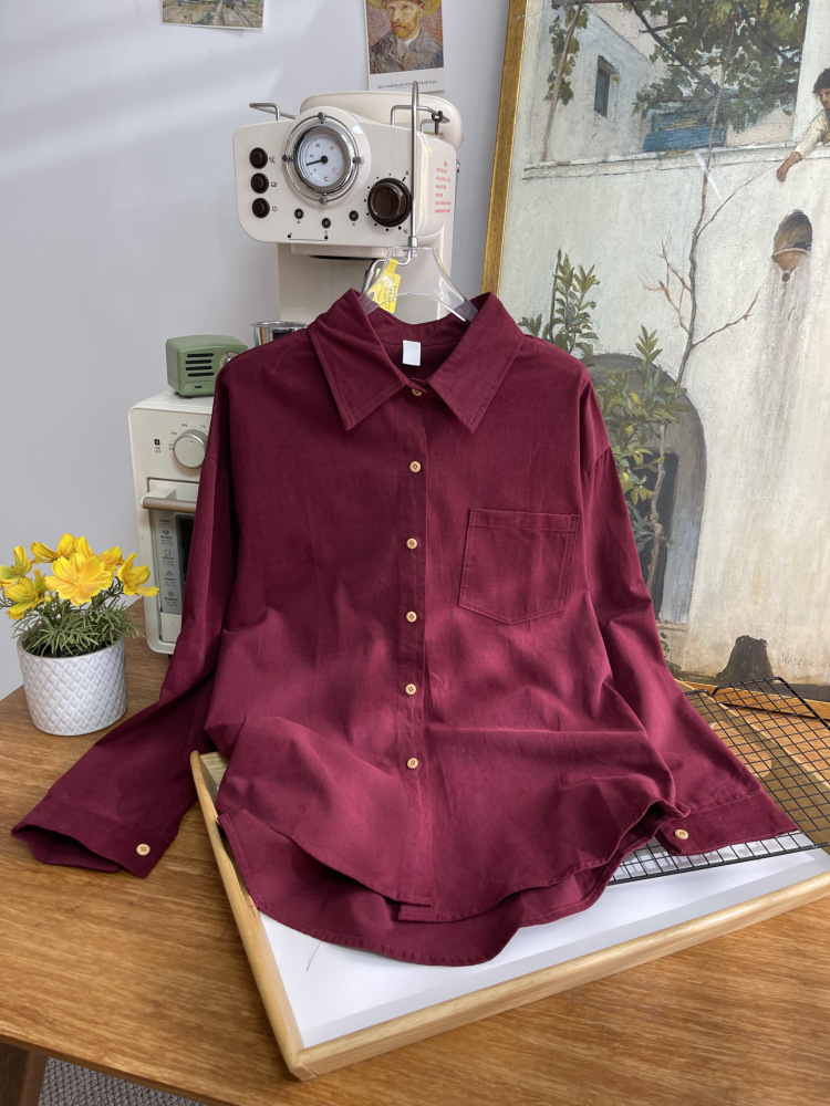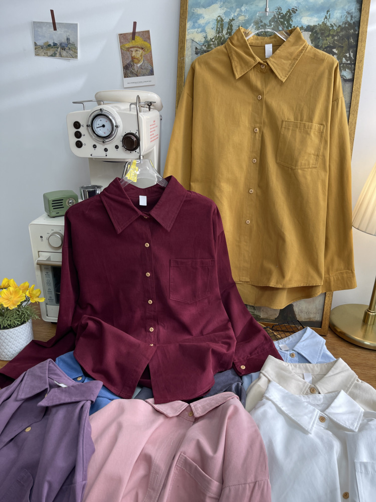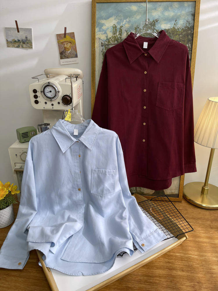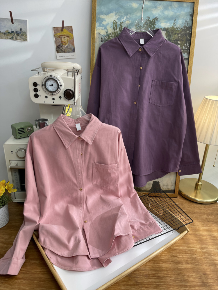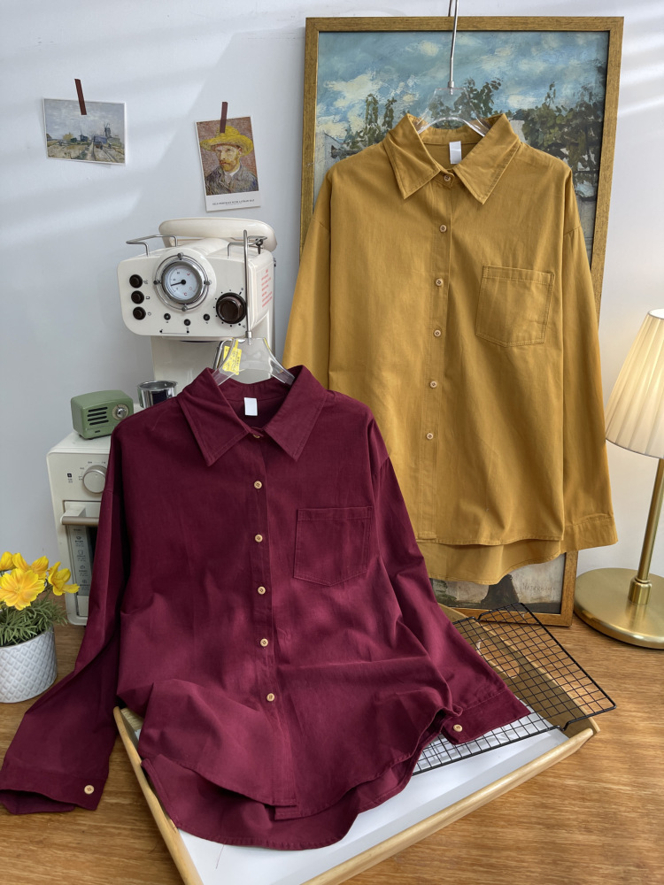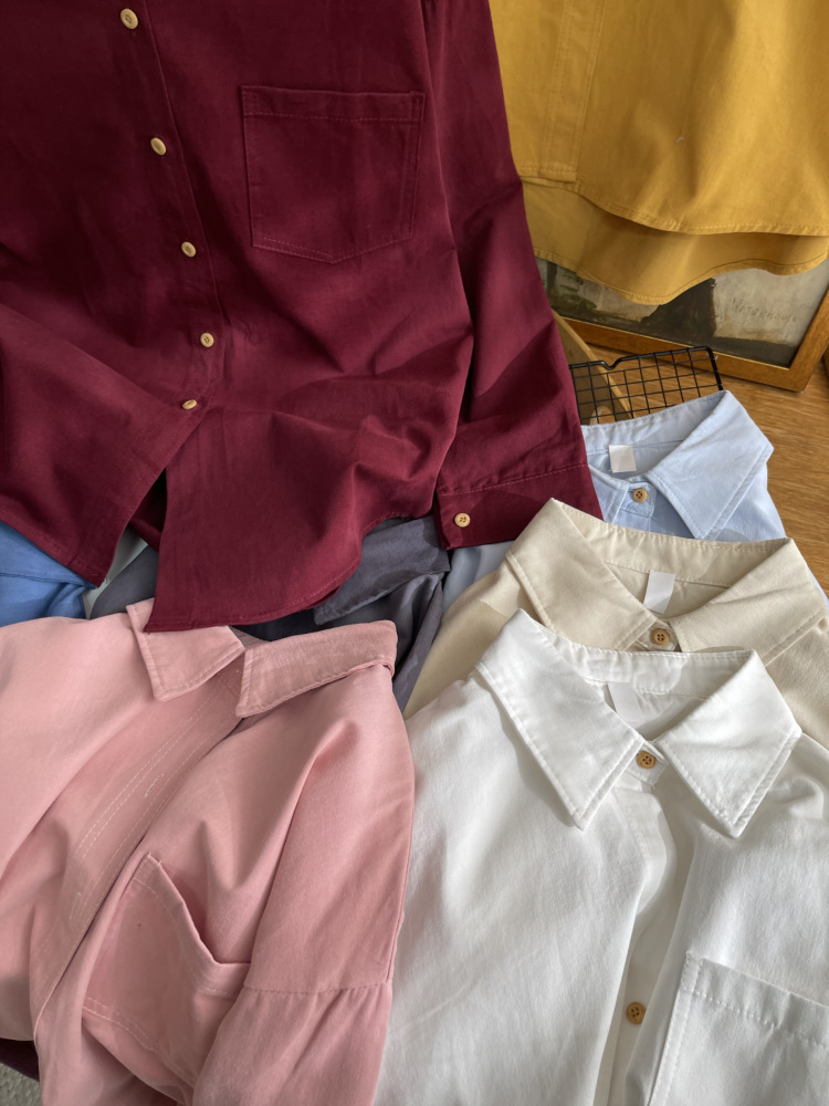 빈티지 옷깃 긴 소매 포켓 셔츠 여성 가을 겨울 한국 스타일 느슨한 캐주얼 스택 셔츠 올 매치 톱 4945