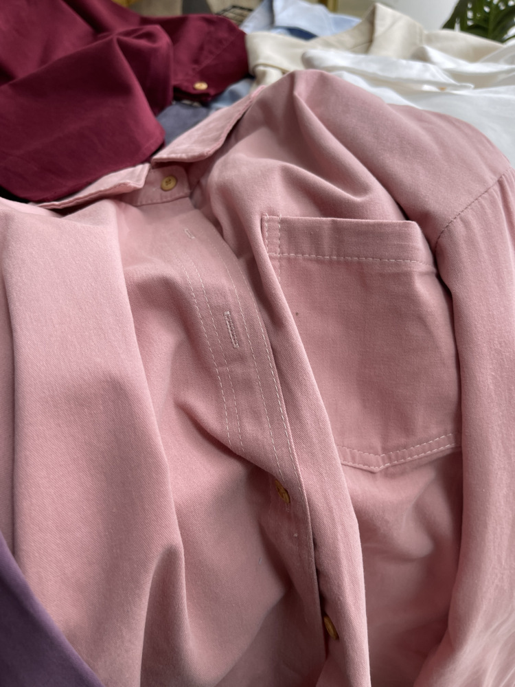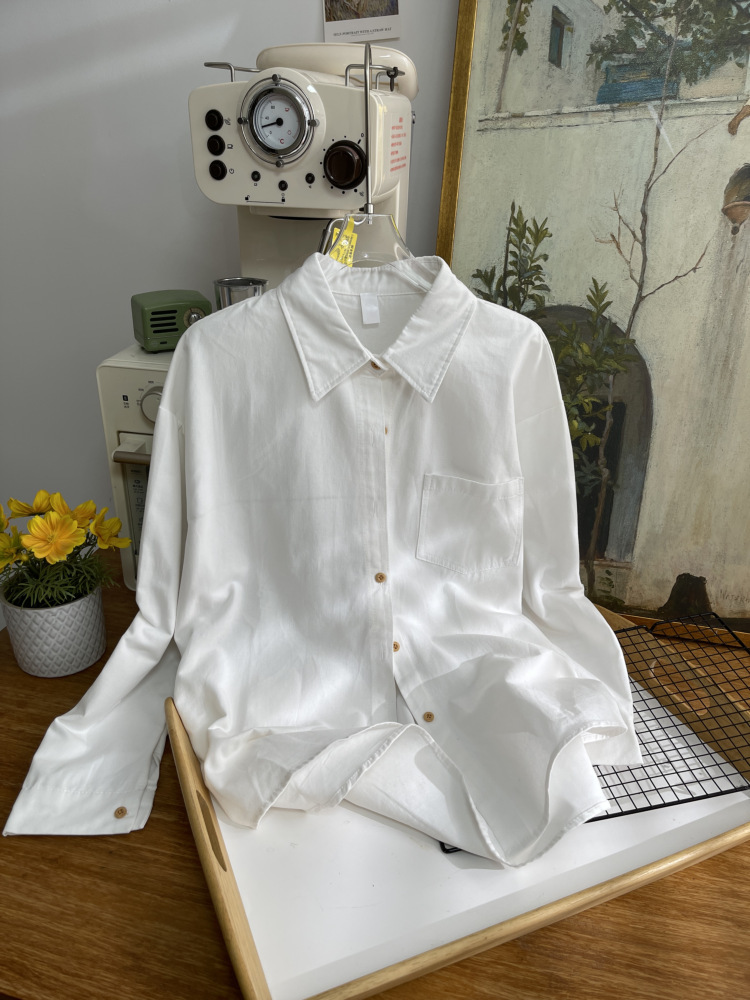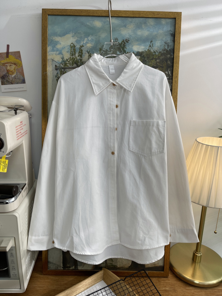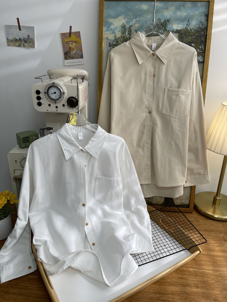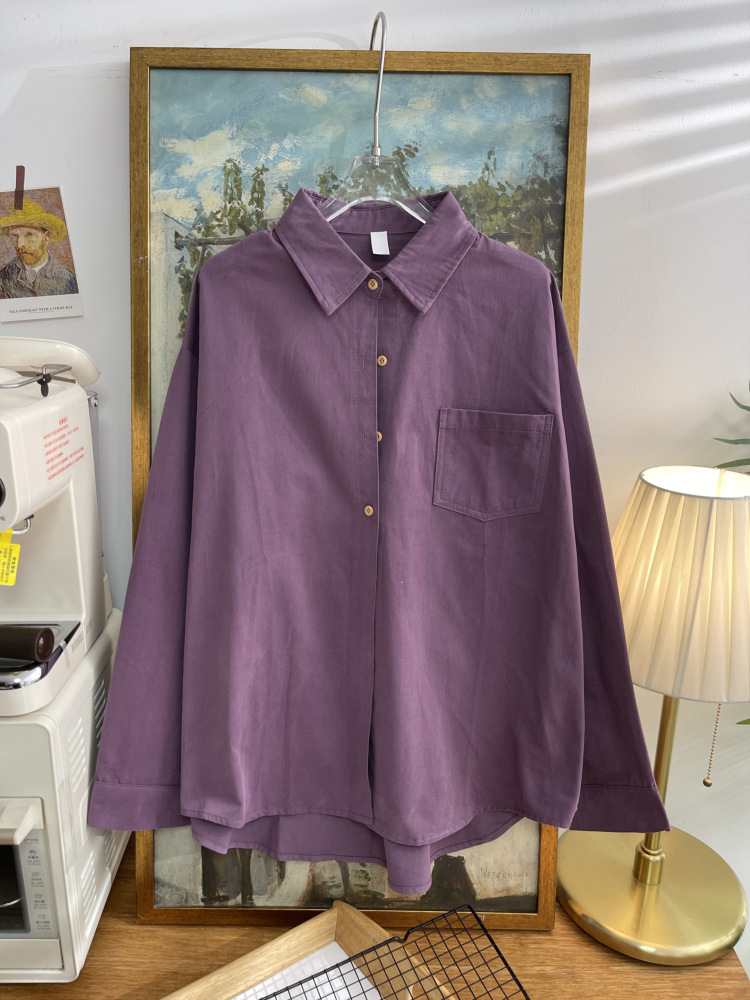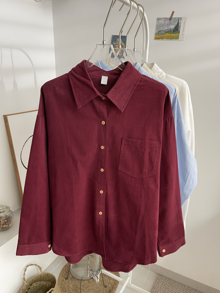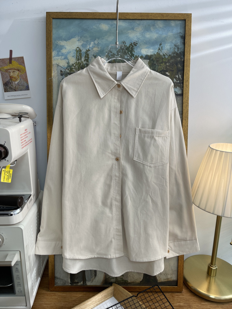 빈티지 옷깃 긴 소매 포켓 셔츠 여성 가을 겨울 한국 스타일 느슨한 캐주얼 스택 셔츠 올 매치 톱 4945