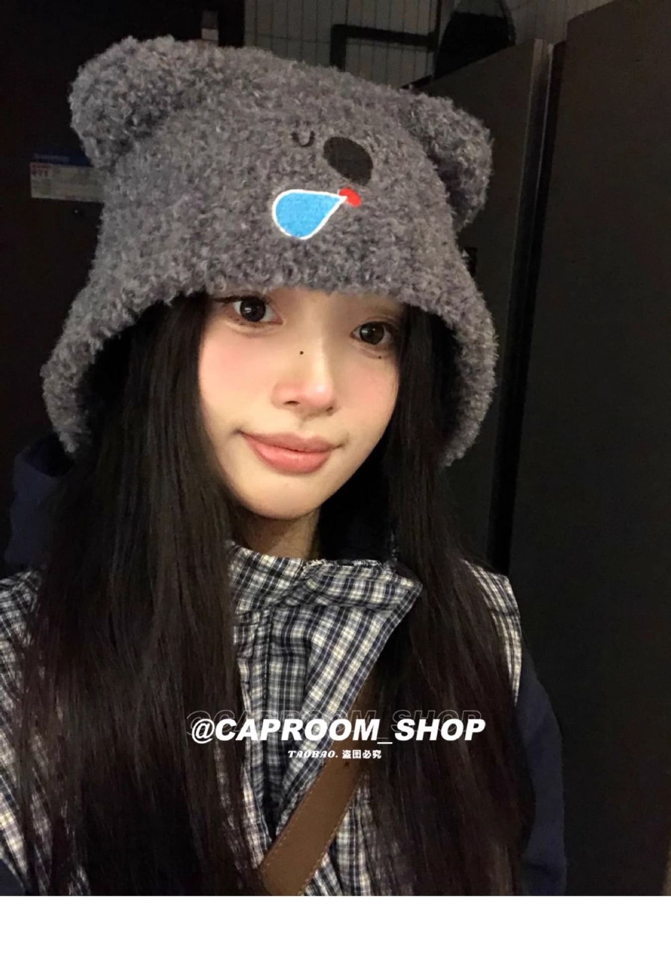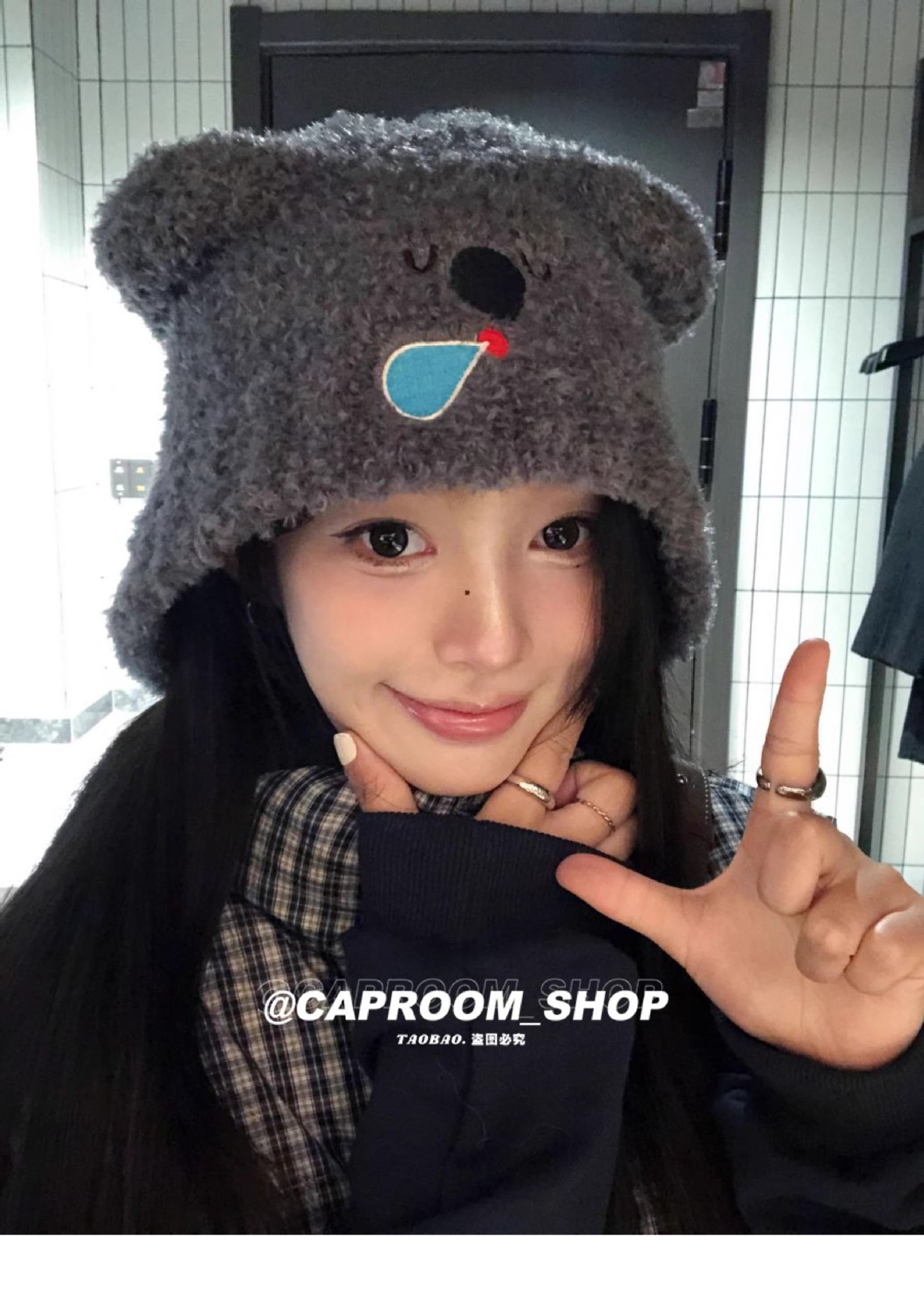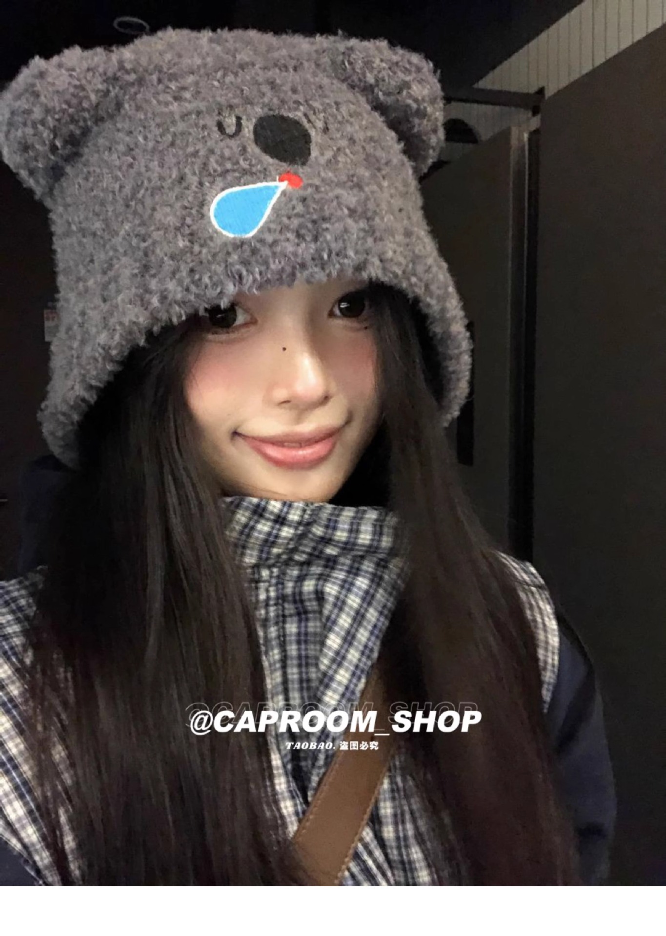 2024 큰 머리 귀여운 코알라 귀 울 모자 여성의 얼굴 작은 귀 보호 니트 모자 가을과 겨울 따뜻한 모자스토어 가기