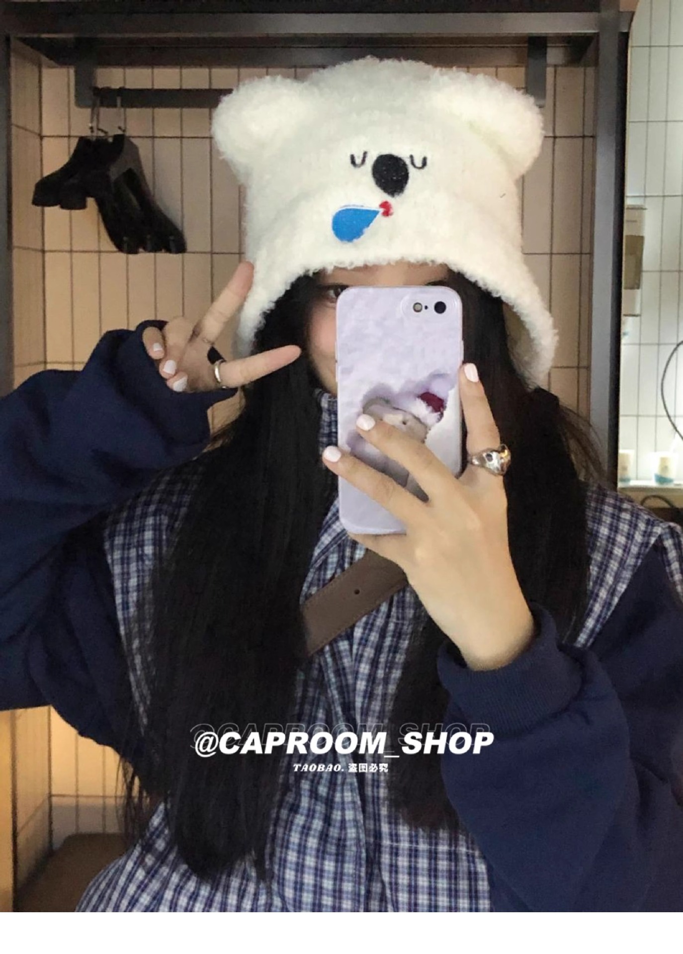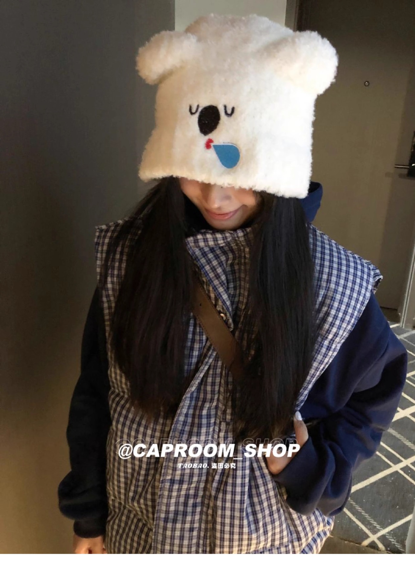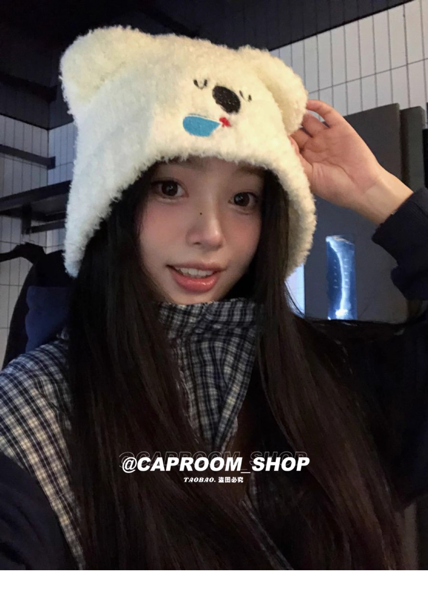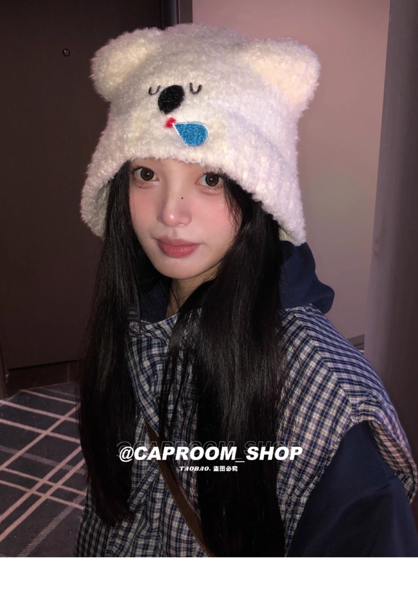 2024 큰 머리 귀여운 코알라 귀 울 모자 여성의 얼굴 작은 귀 보호 니트 모자 가을과 겨울 따뜻한 모자스토어 가기