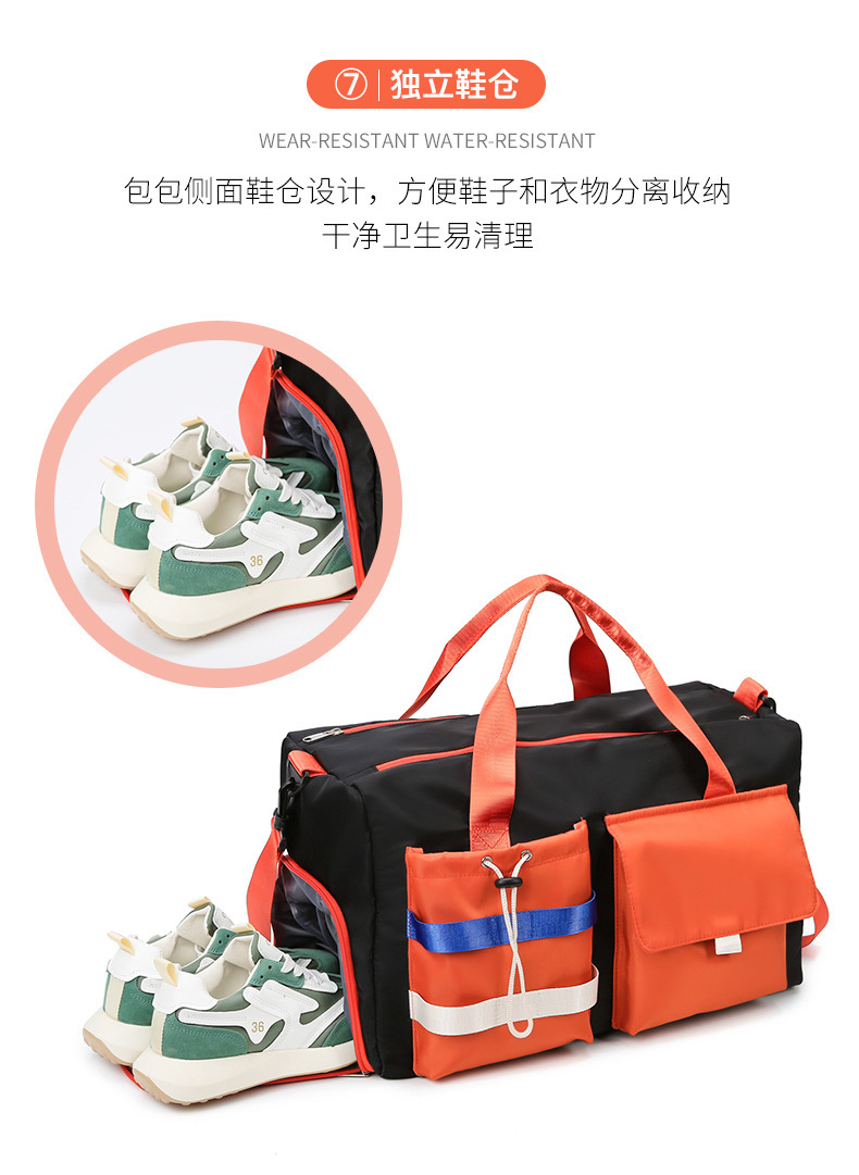 스포츠 피트니스 가방 여성의 건조하고 젖은 분리 색상 대비 남성용 단거리 여행 가방 휴대용 대용량 보관 수하물 가방스토어 가기