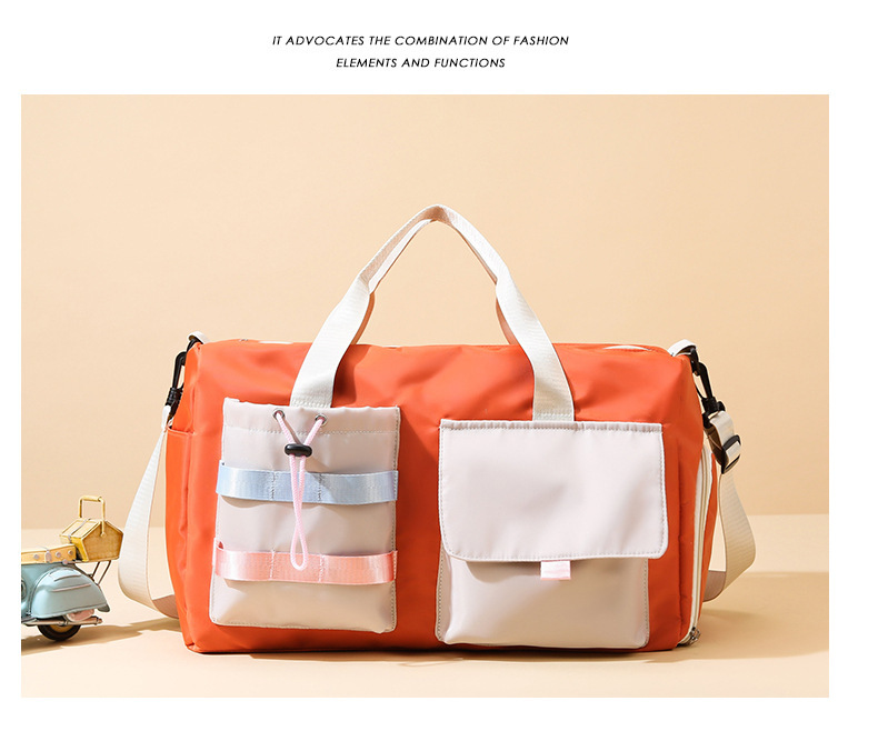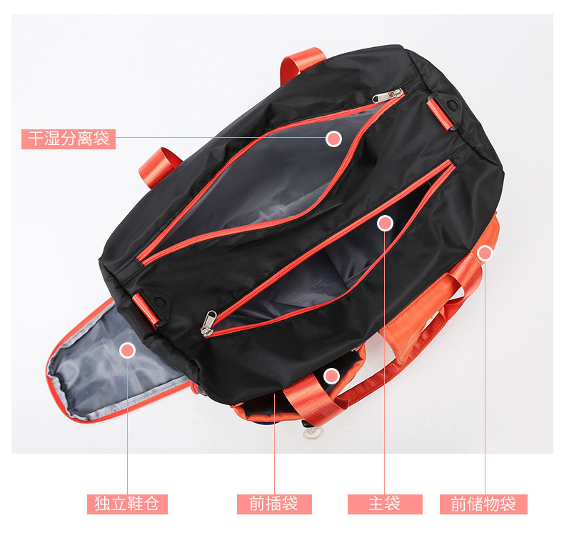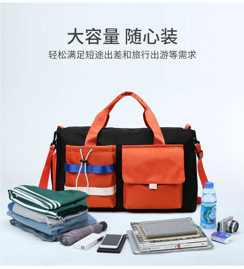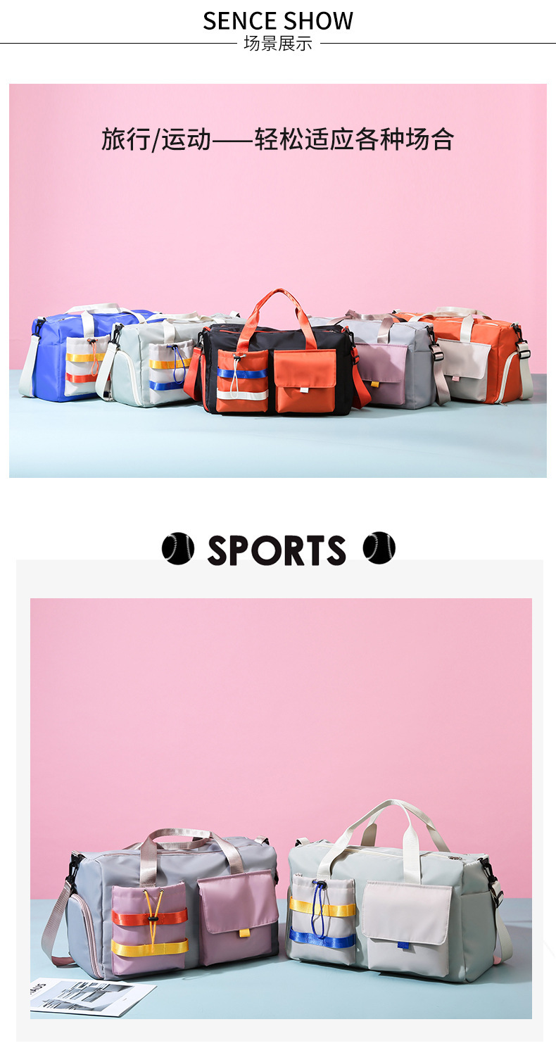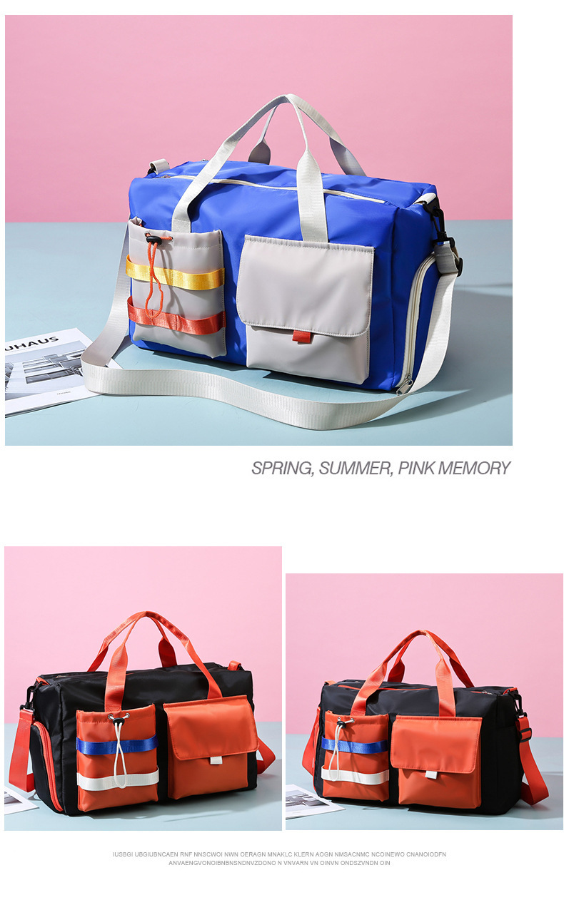 스포츠 피트니스 가방 여성의 건조하고 젖은 분리 색상 대비 남성용 단거리 여행 가방 휴대용 대용량 보관 수하물 가방