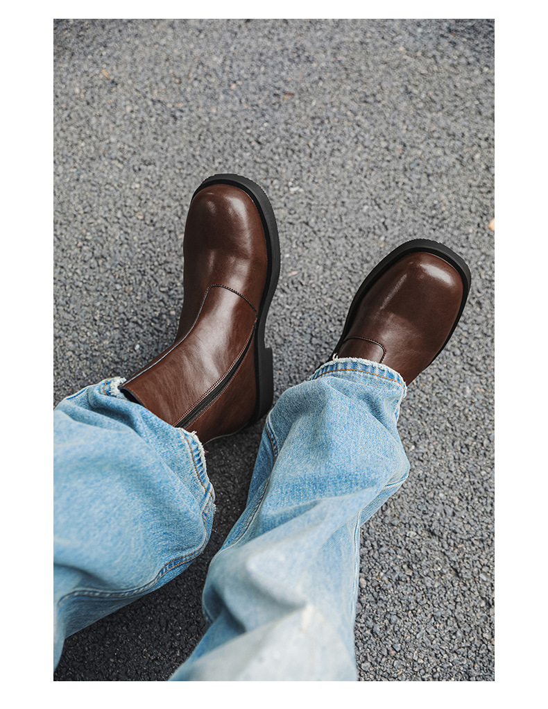 가을 2024 사이드 지퍼 두꺼운 밑창 높은 마틴 부츠 영국 스타일 복고풍 작업복 부츠 간단한 유행 키 큰 발목 부츠스토어 가기