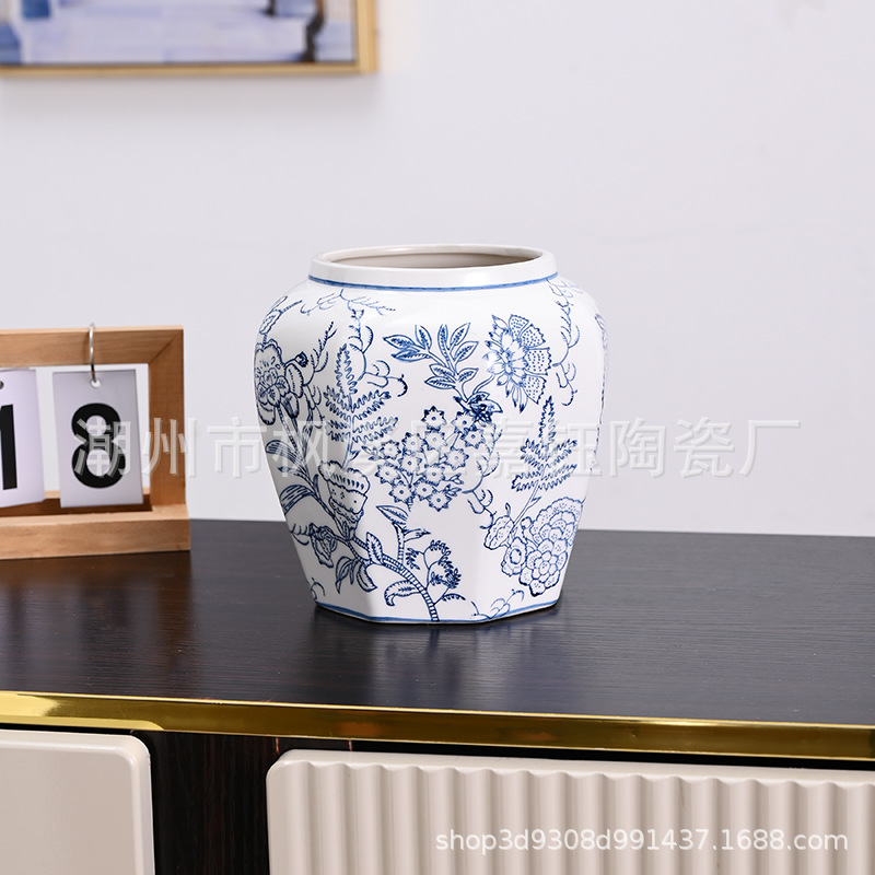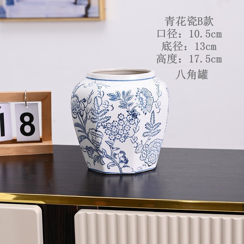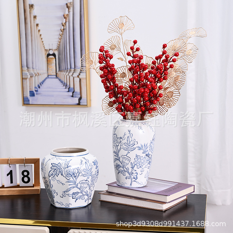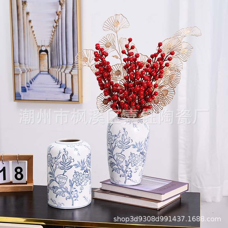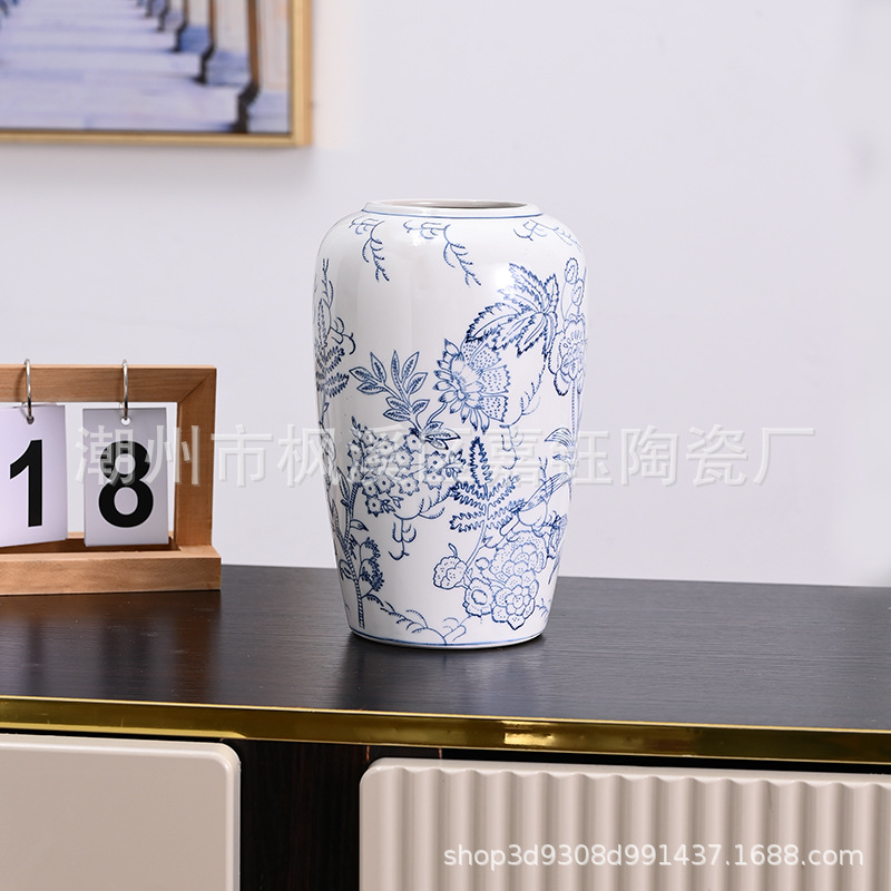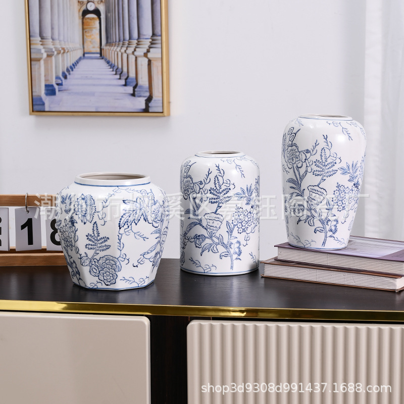 고급 중세 스타일 Jingdezhen 파란색과 흰색 도자기 손으로 그린 꽃병 색 물 높이 꽃 말린 꽃 거실 장식 장식품스토어 가기