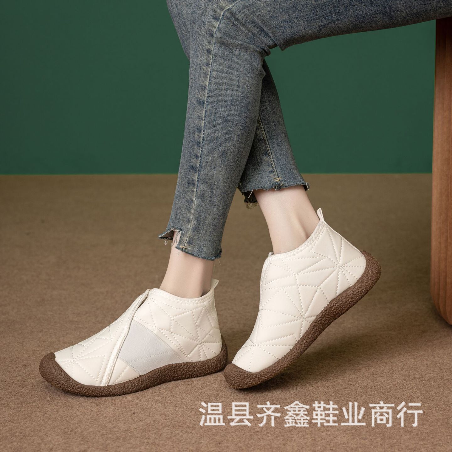 겨울 새로운 항주 자수 하이탑면 신발 기모 두껍게 부드러운 바닥 미끄럼 방지 어머니 신발 가벼운 캐주얼 스노우 부츠 도매