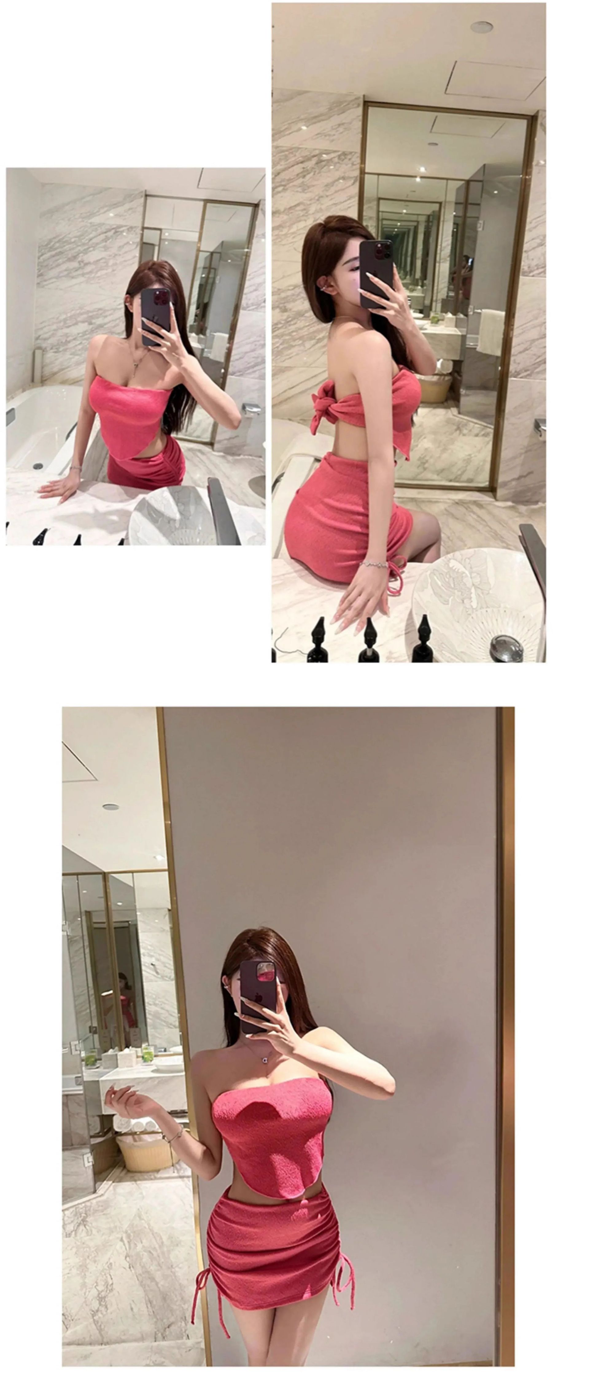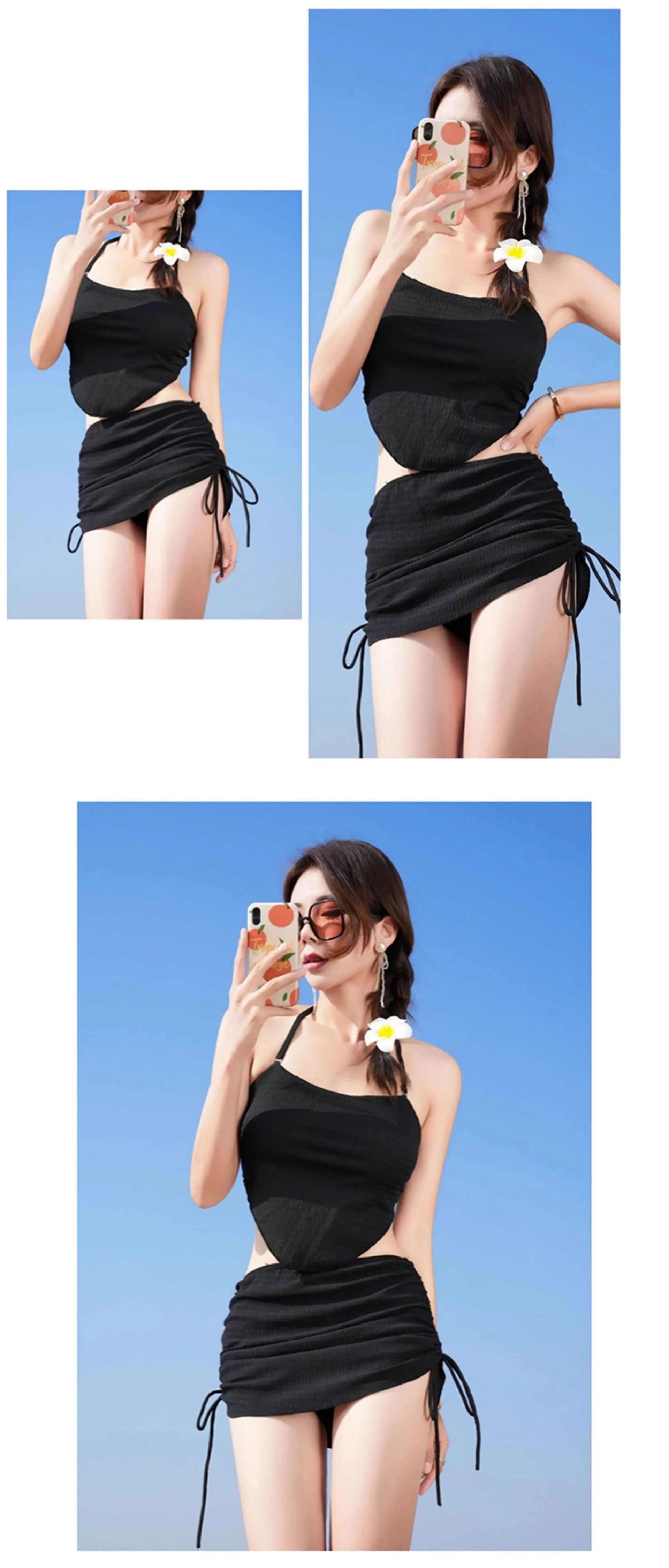 여성 수영복 2024 신상 스플릿 홀터넥 스타일, 배를 커버해 날씬해 보이는 해변 휴가 비키니스토어 가기
