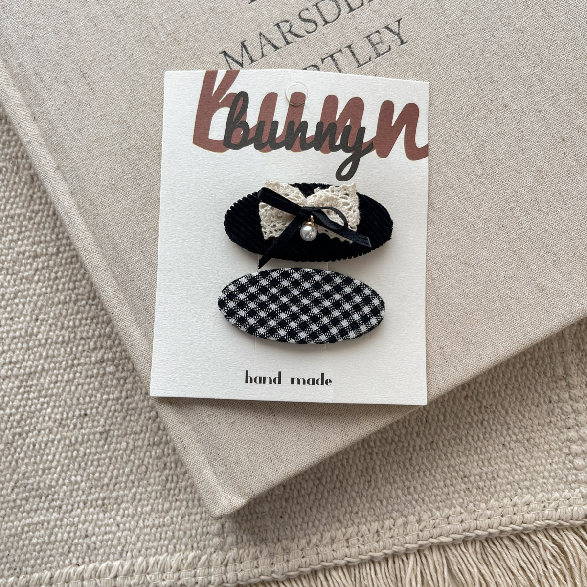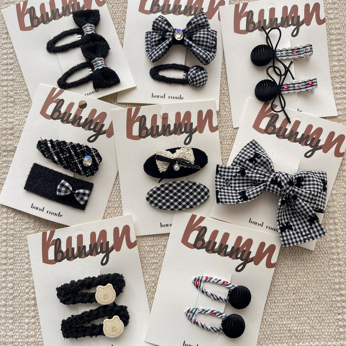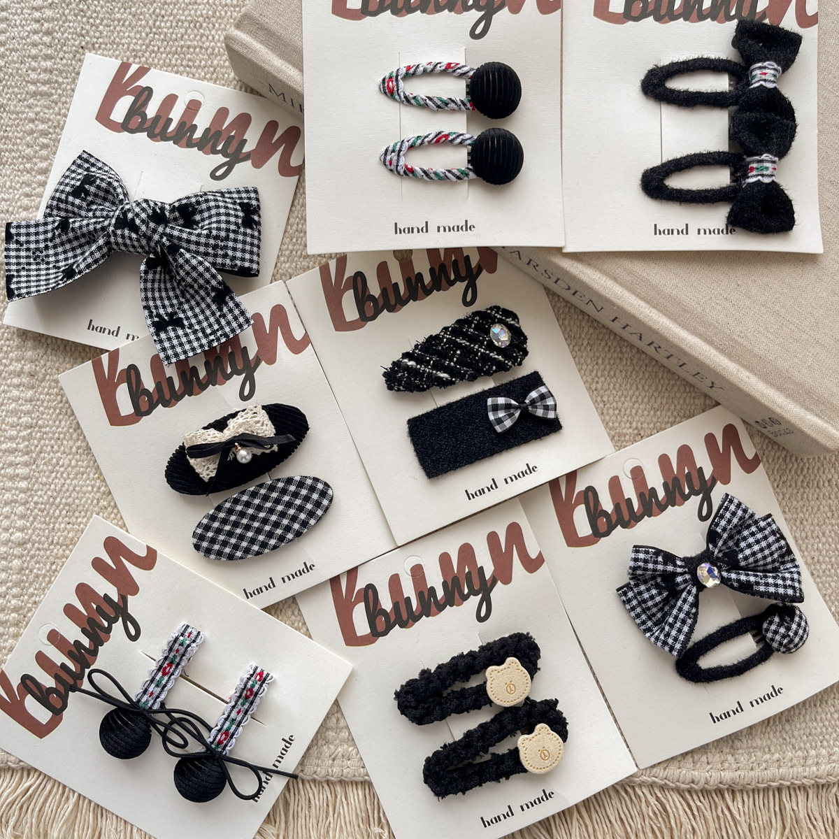 가을 새로운 블랙 레이스 격자 무늬 활 어린이 헤어 클립 원단 모든 일치 어린 소녀의 깨진 헤어 액세서리스토어 가기