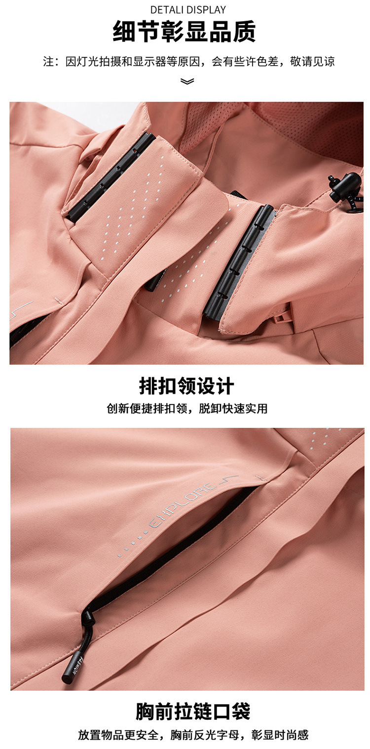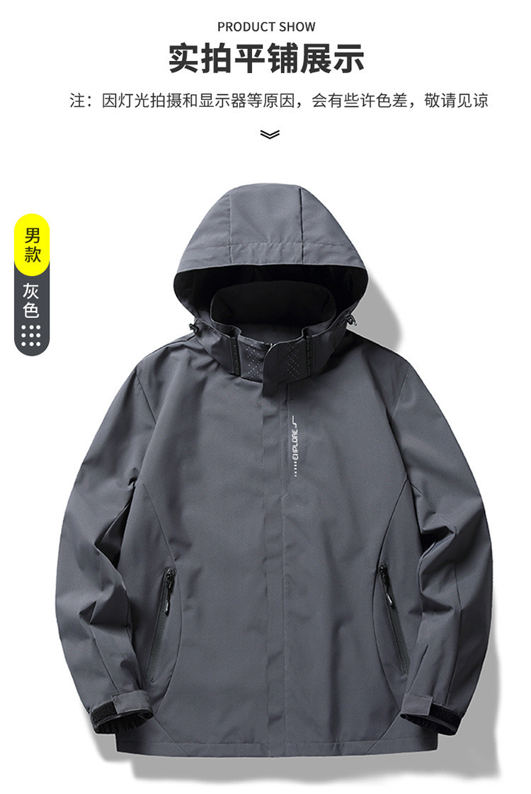 국경 간 봄과 가을 얇은 재킷 싱글 레이어 후드 방수 커플 단일 충격 방풍 재킷 남성 야외 등산 세트
