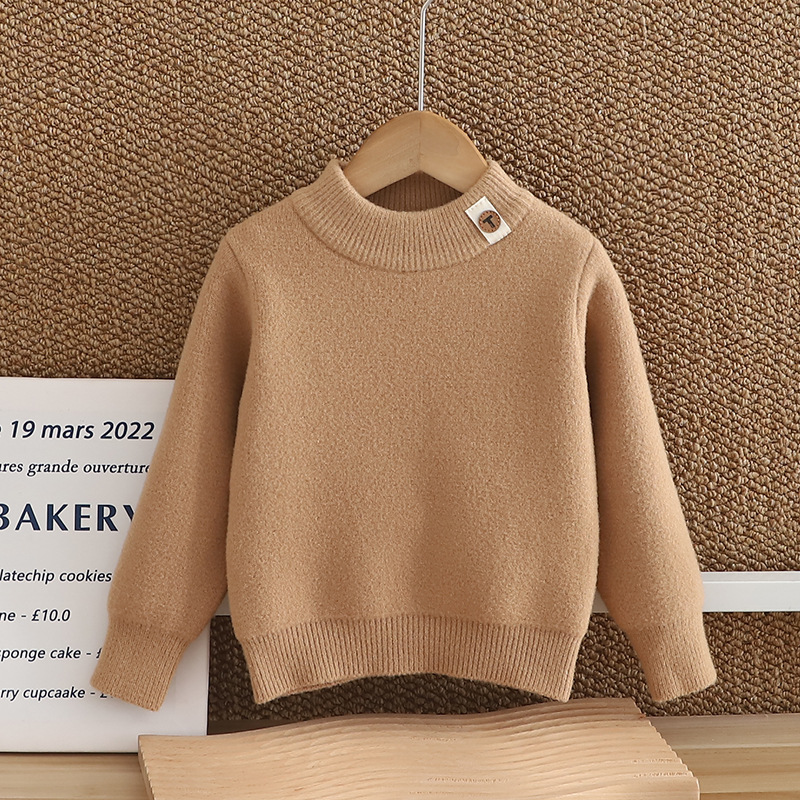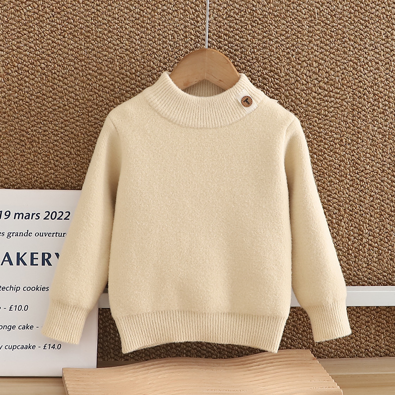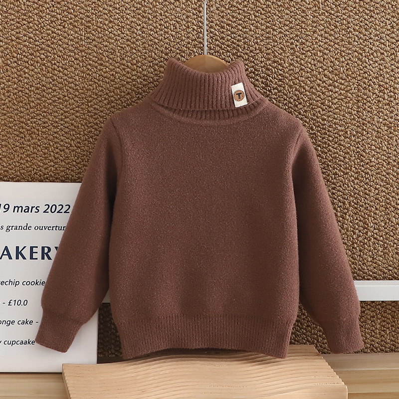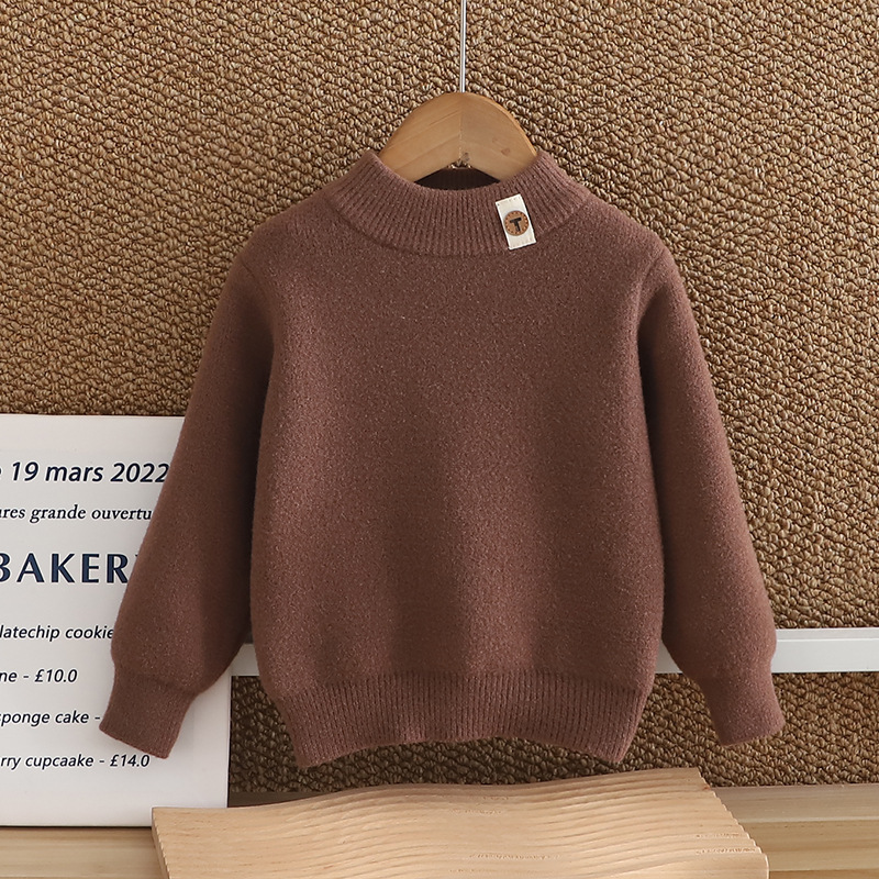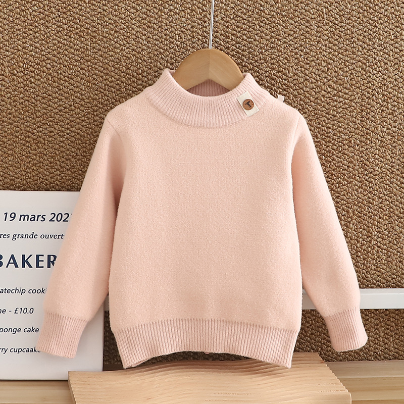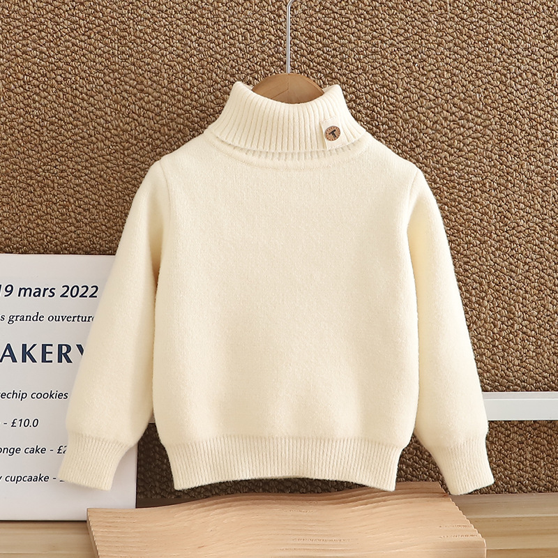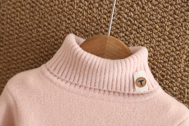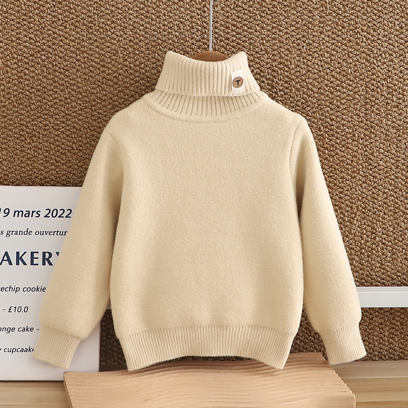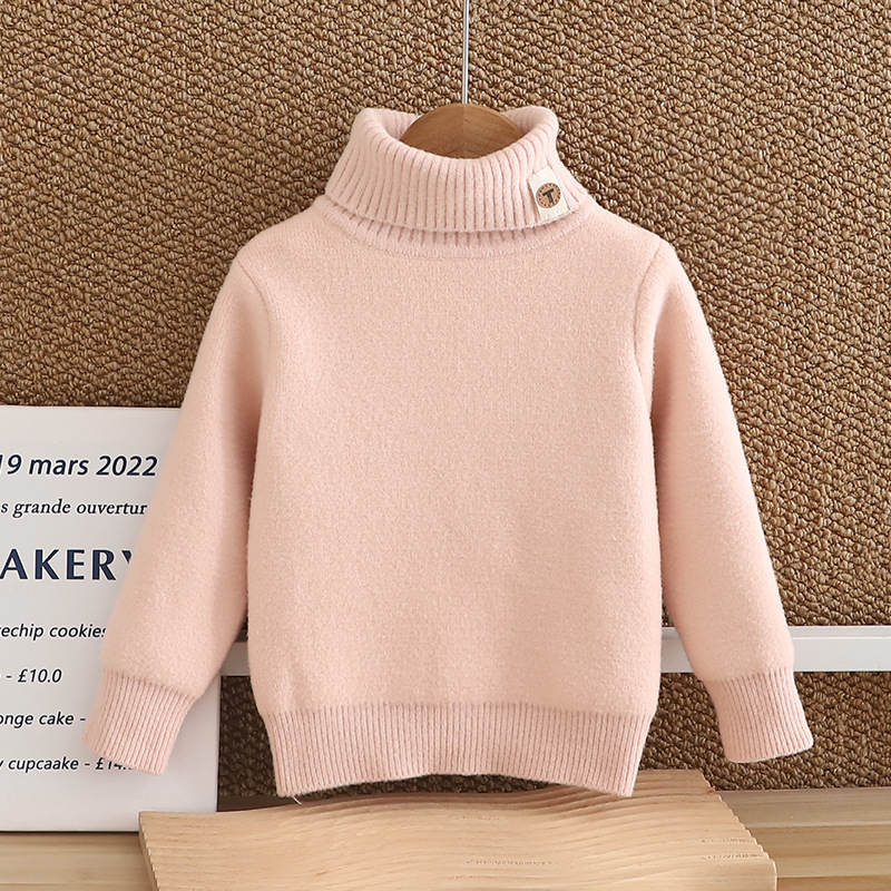 소년 스웨터 2024 새 한국 벨벳 두꺼운 가을 겨울 하이넥 걸스 니트 베이스 원피스 벨벳 스웨터