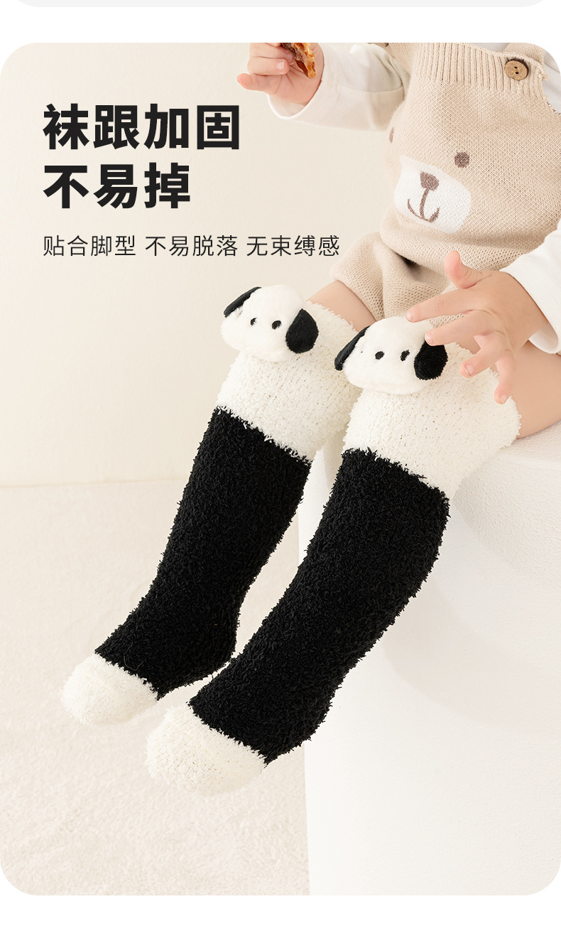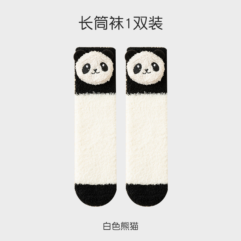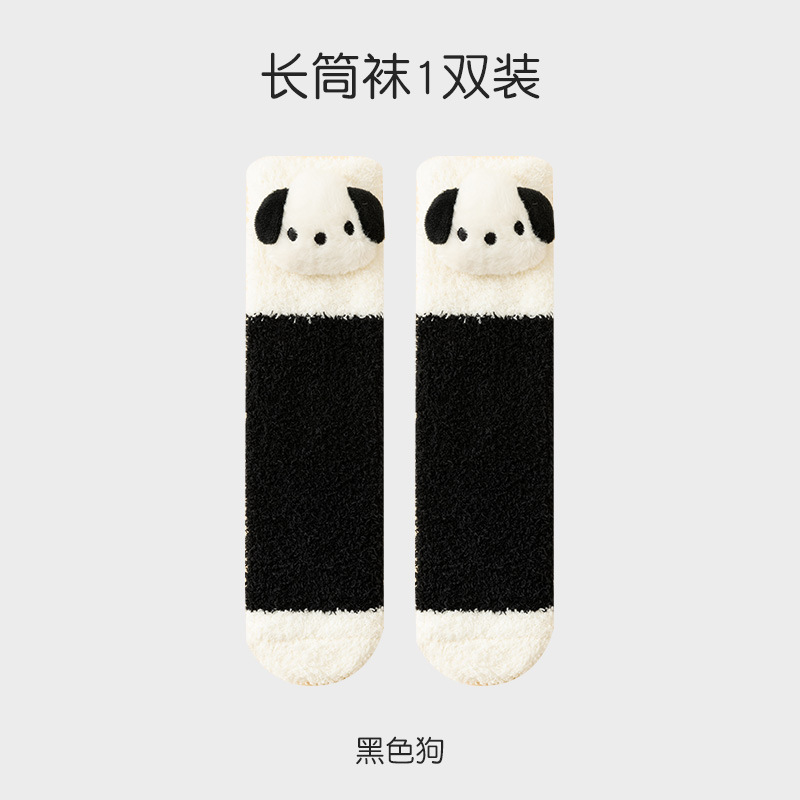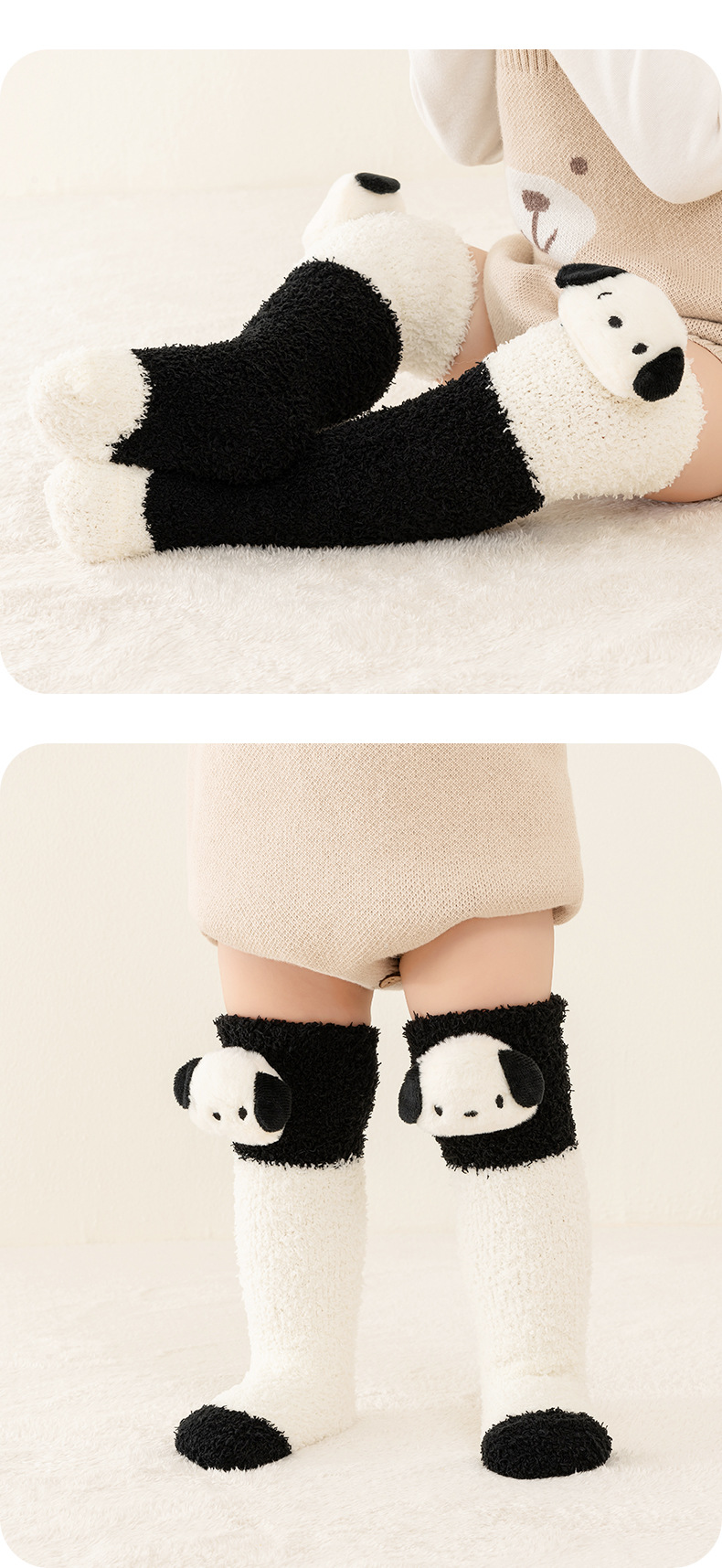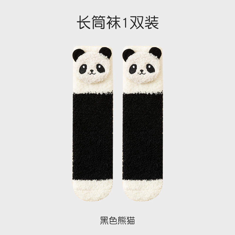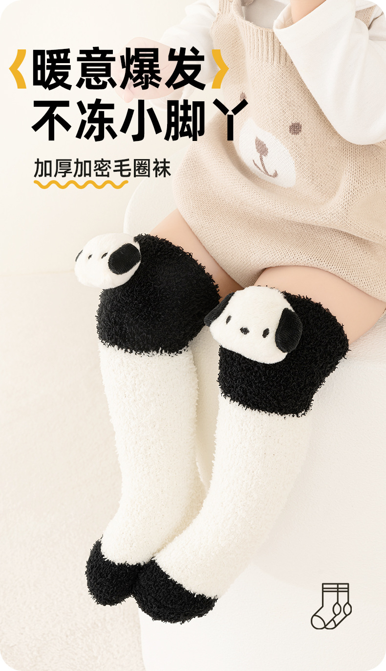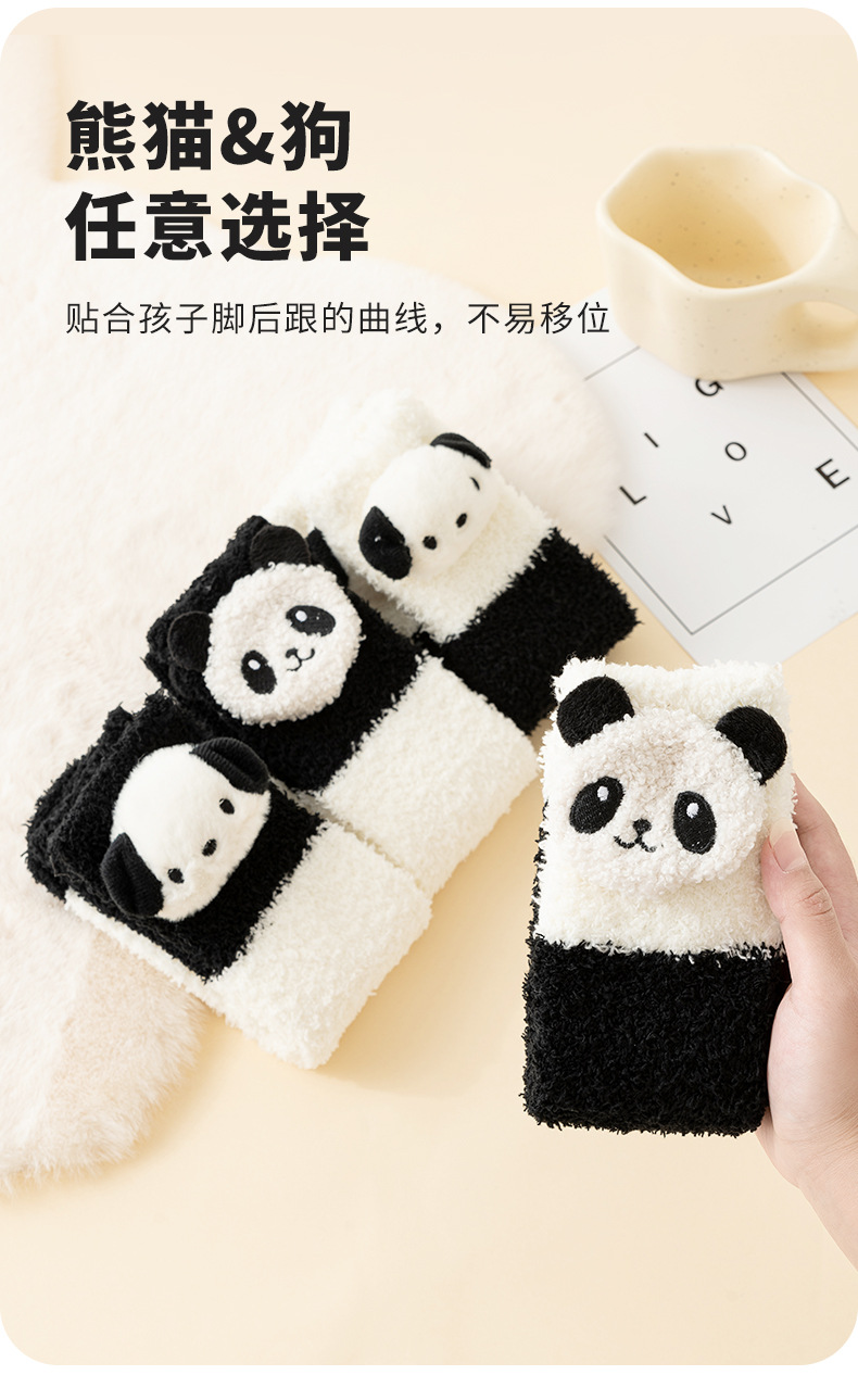 가을과 겨울 양말 귀여운 팬더 개 산호 양털 두꺼운 따뜻한 어린이 양말 아기 스타킹