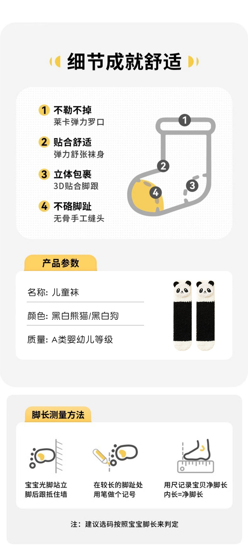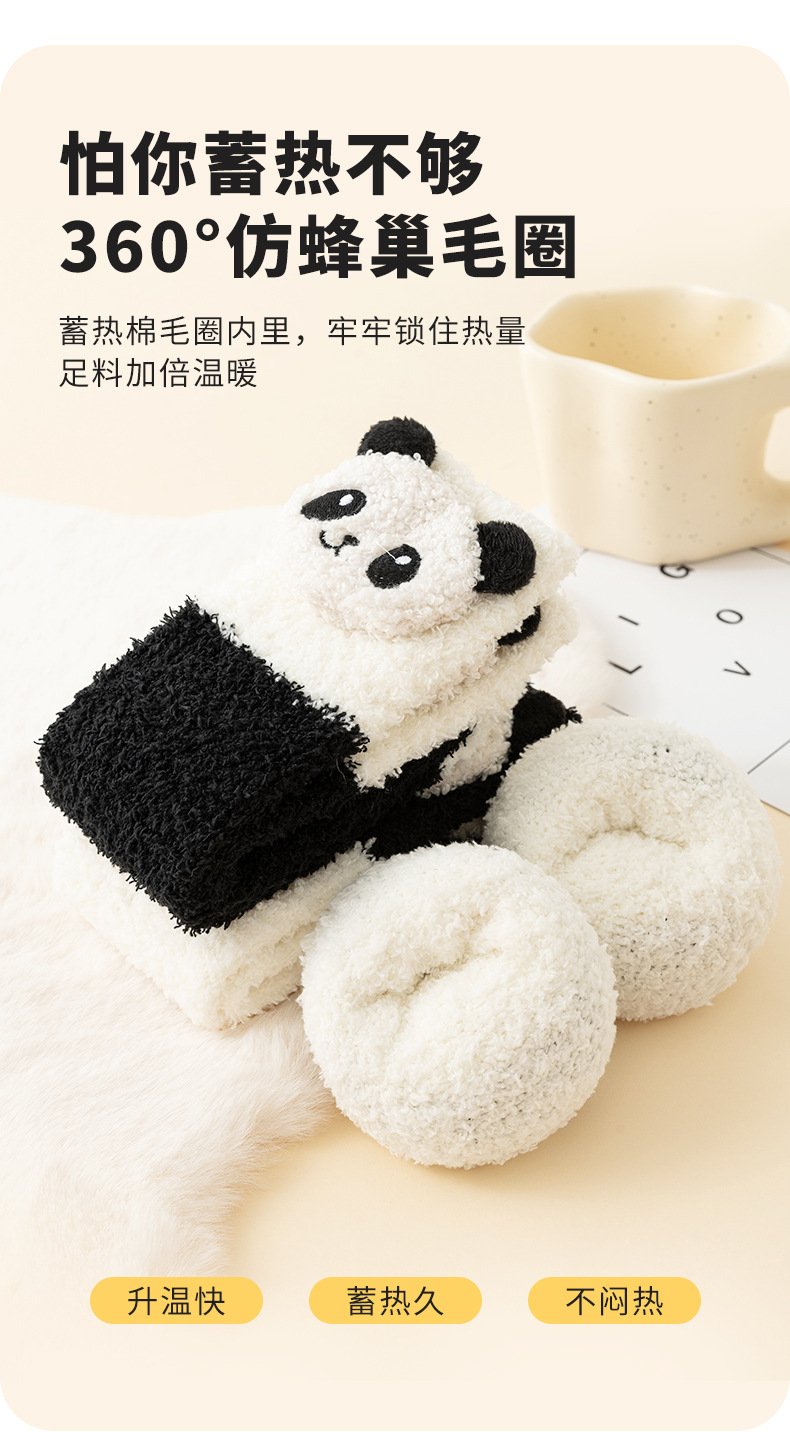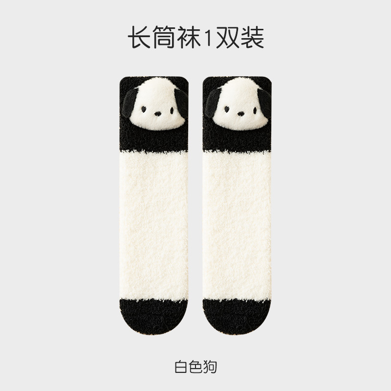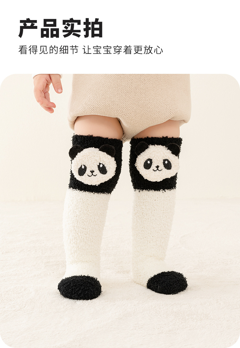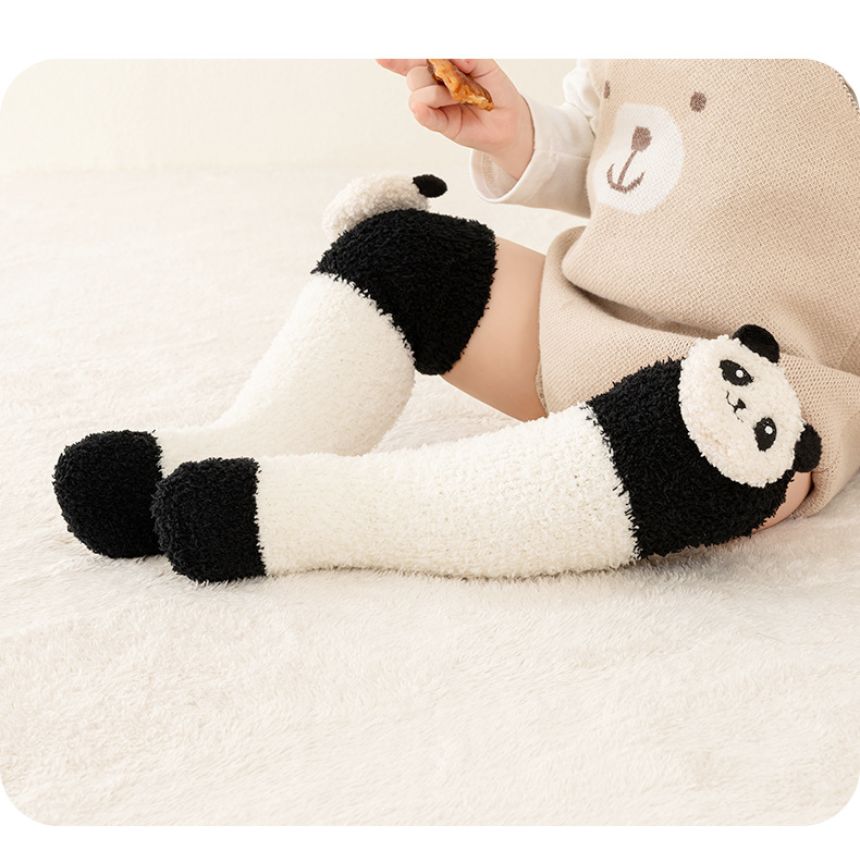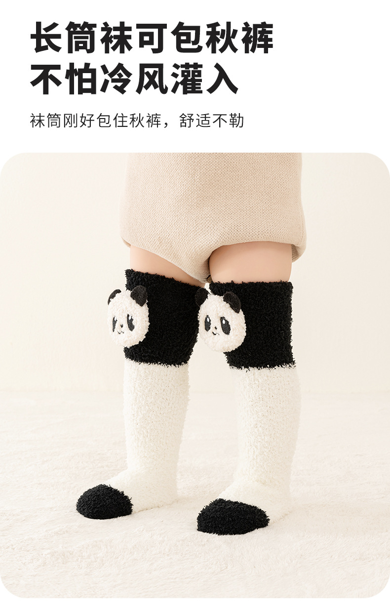가을과 겨울 양말 귀여운 팬더 개 산호 양털 두꺼운 따뜻한 어린이 양말 아기 스타킹