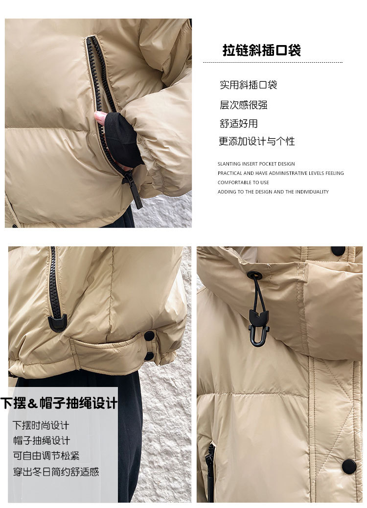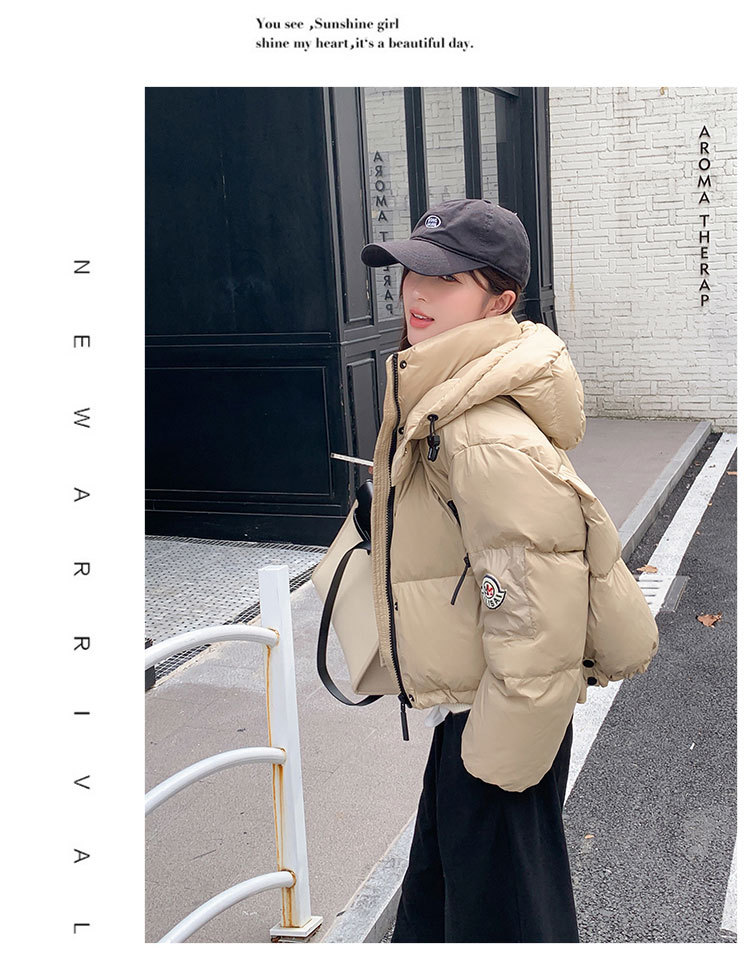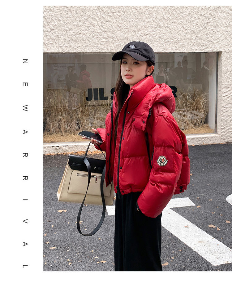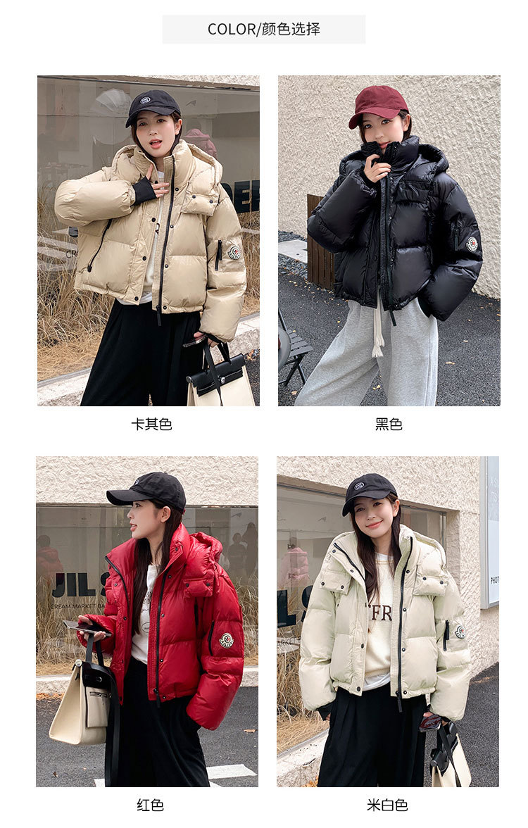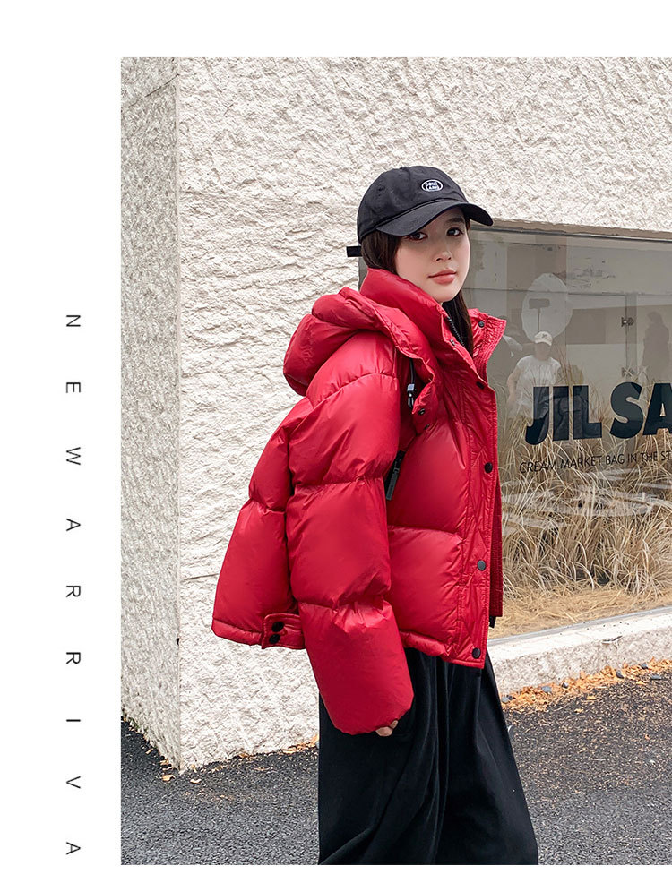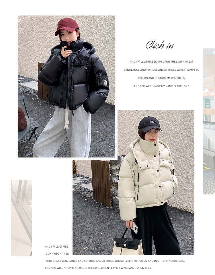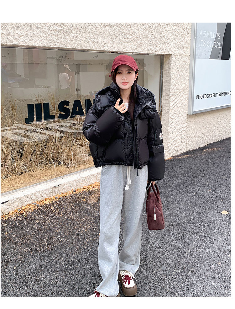 하이 엔드 브랜드 밝은 짧은 다운 재킷 여성의 2024 새로운 겨울 두꺼운 오리 후드 느슨한 빵 코트