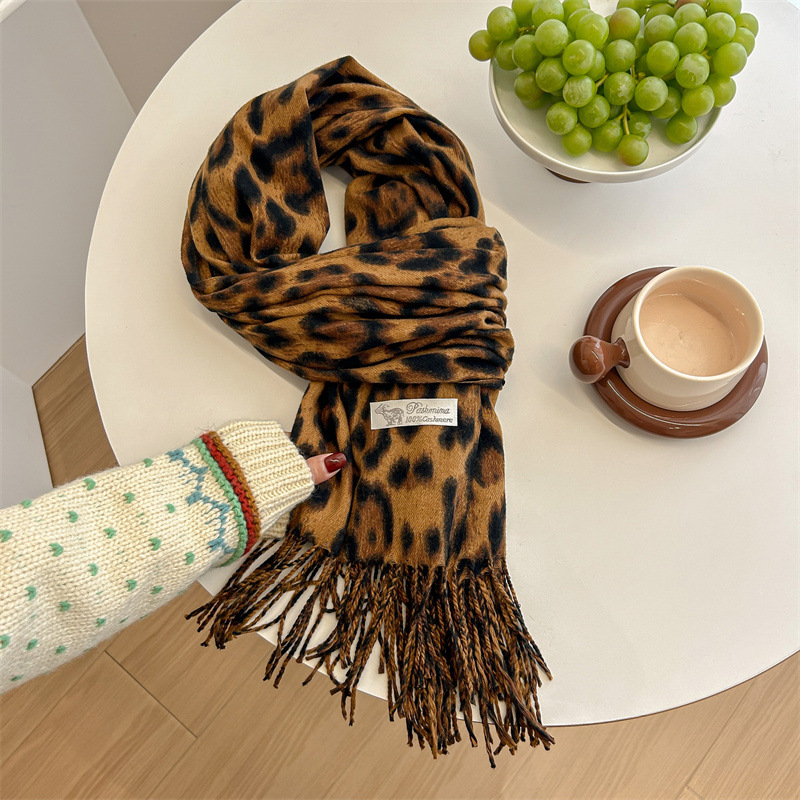 가을과 겨울 새로운 클래식 레오파드 무늬 캐시미어 스카프 여성 유럽과 미국 폭발 하이 엔드 소프트 왁스 따뜻한 술 목도리스토어 가기