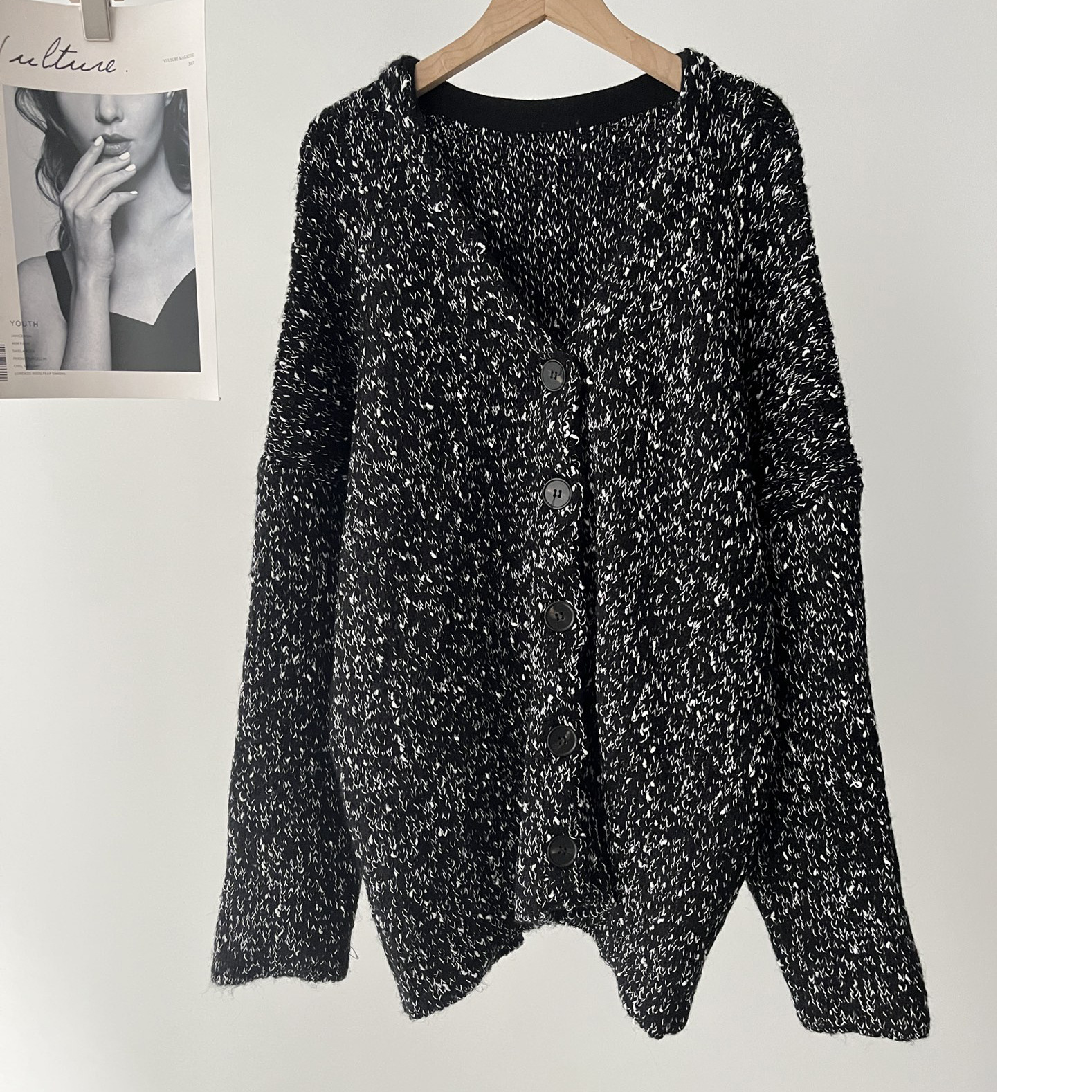 재고 CS 여성의 느슨한 버전 헤어링 텍스처 혼합 카디건 검은 가을과 겨울 새로운 1243643001스토어 가기