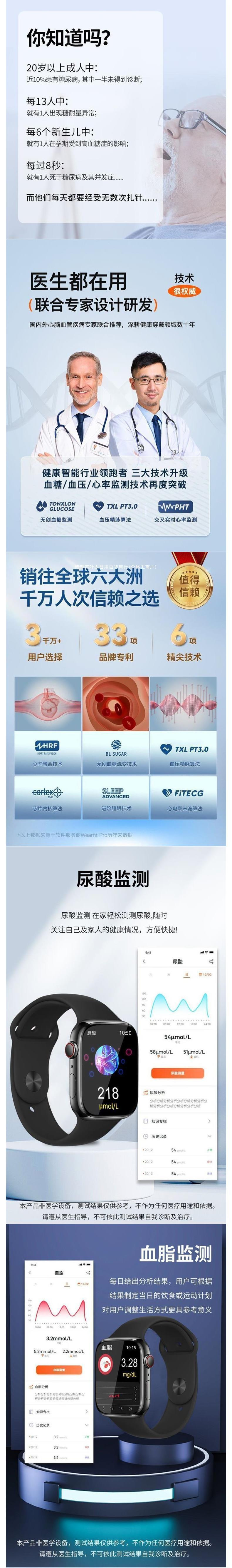 2024 새로운 혈당 스마트 시계 요산 혈액 지질 혈압 심박수 모니터링 운동 중년 및 노인 팔찌 정확한 측정스토어 가기