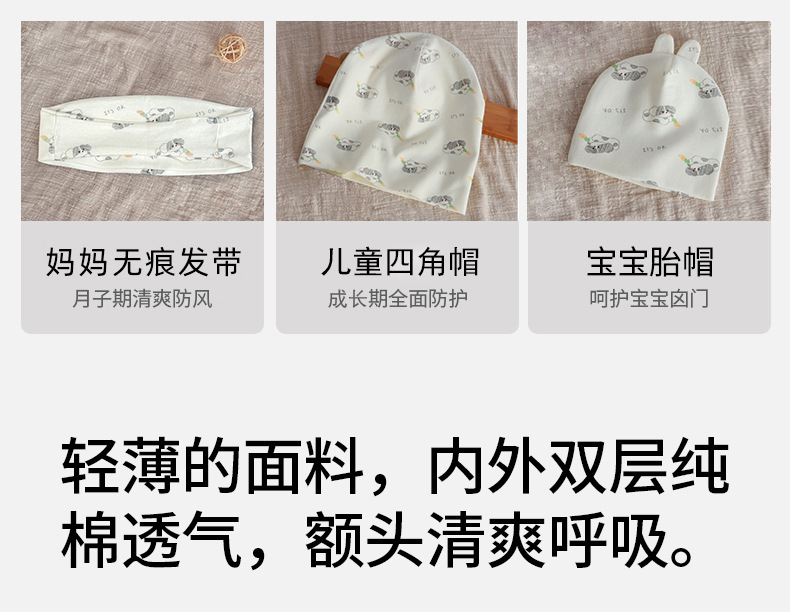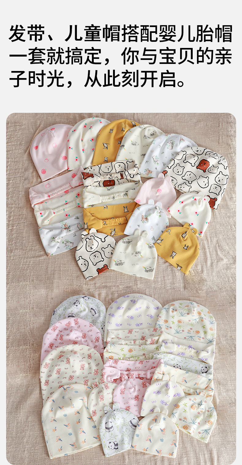 어린이 모자 태아 모자 순면 달 세트 가을과 겨울 따뜻한 원활한 방풍 문 모자 어머니-어린이 달 머리 벨트