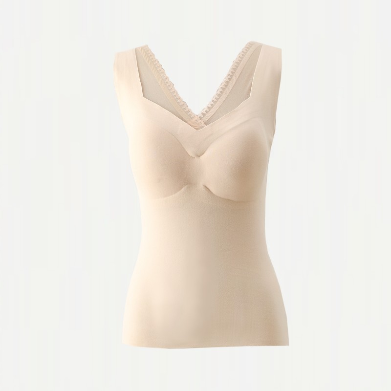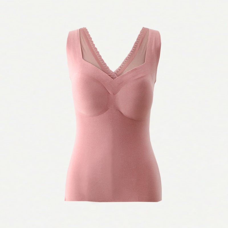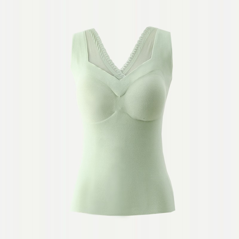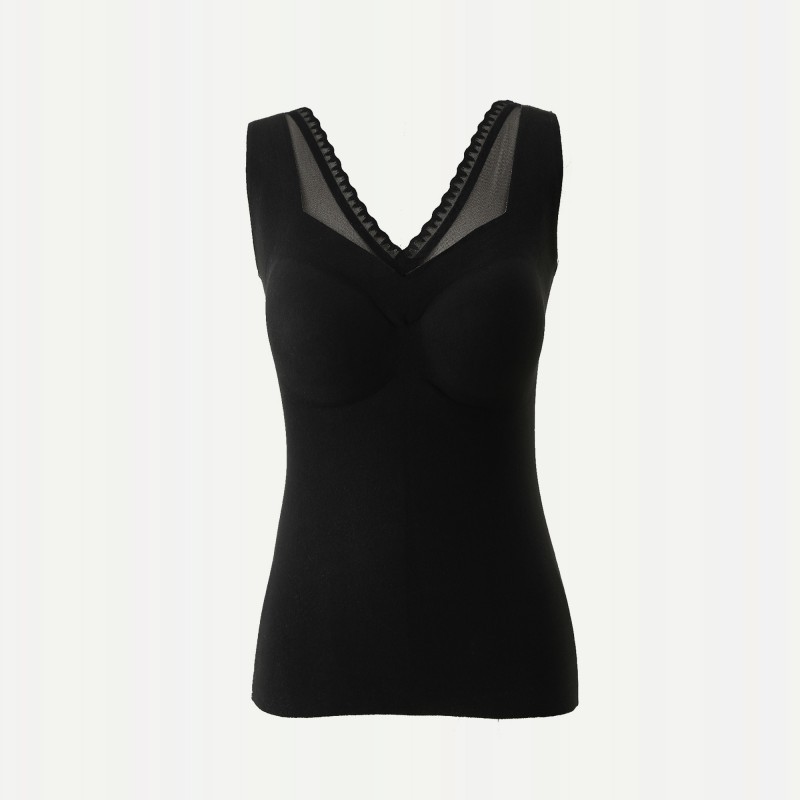 레이스 캐시미어 열 속옷 가슴 패드 조끼 여성 가을 및 겨울 새로운 도착 기모 노마크 슬림 핏 슬링 이너 탑