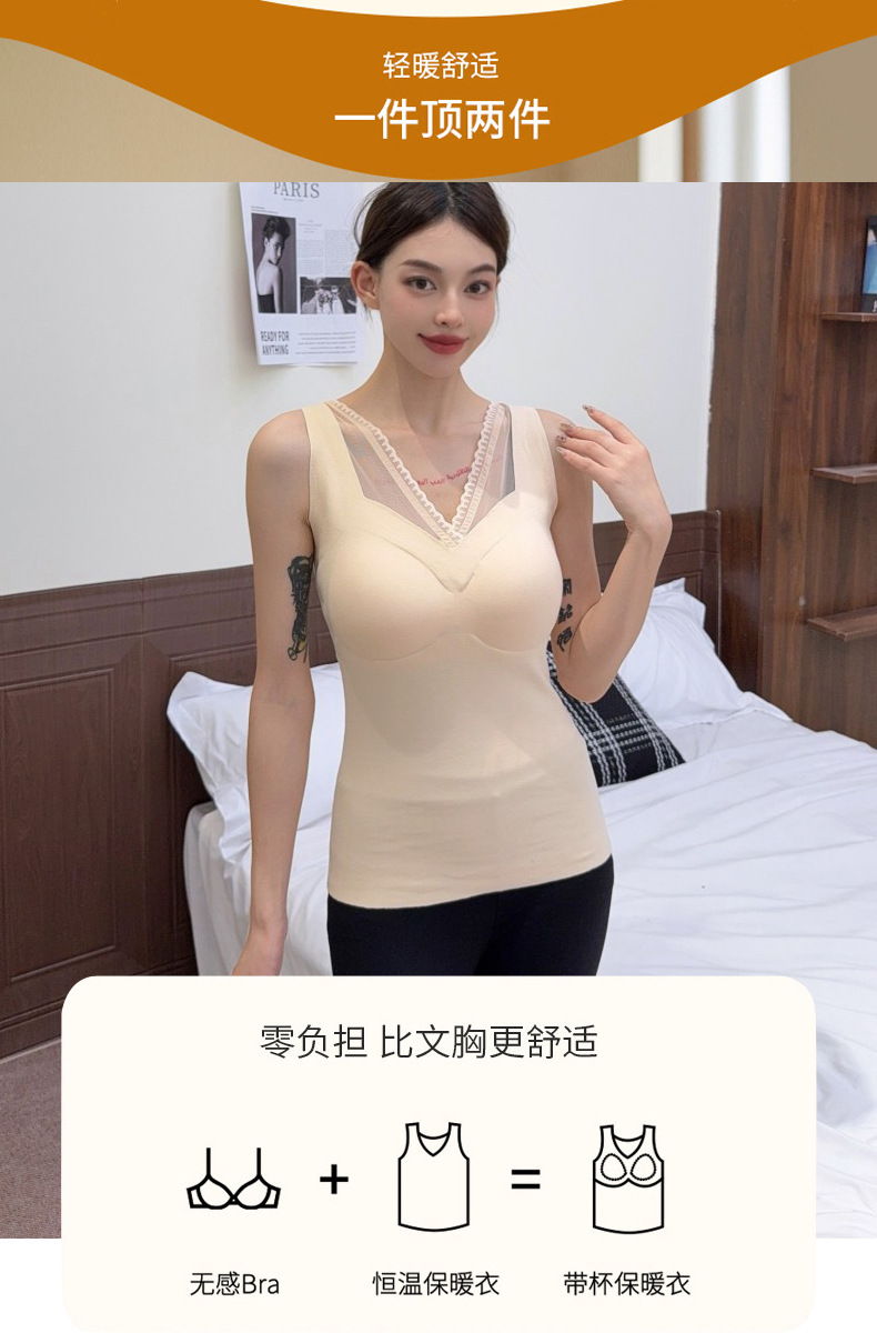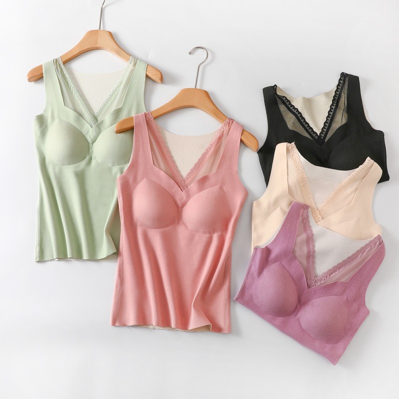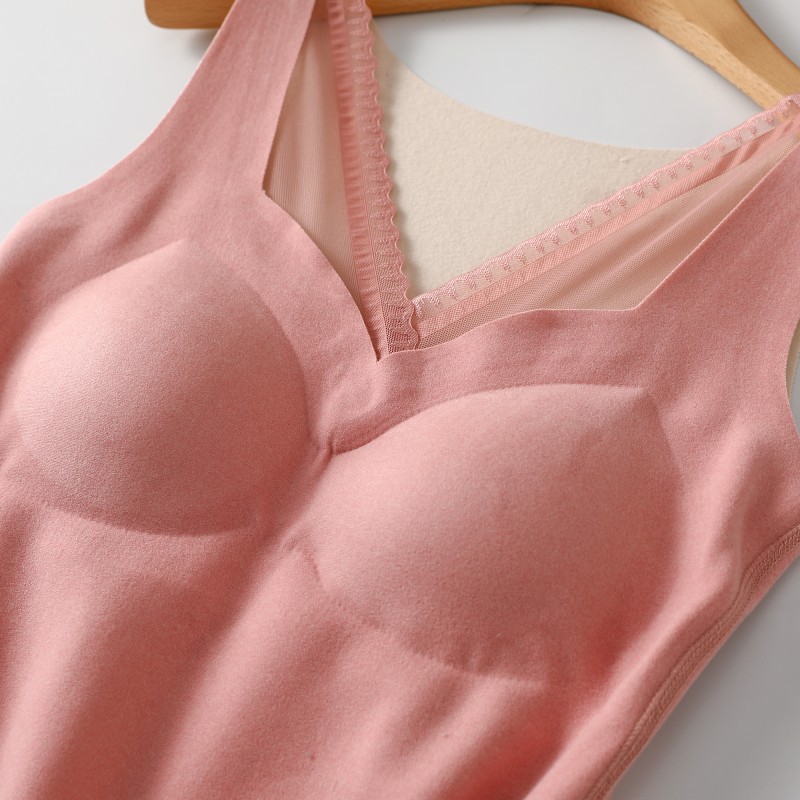 레이스 캐시미어 열 속옷 가슴 패드 조끼 여성 가을 및 겨울 새로운 도착 기모 노마크 슬림 핏 슬링 이너 탑스토어 가기