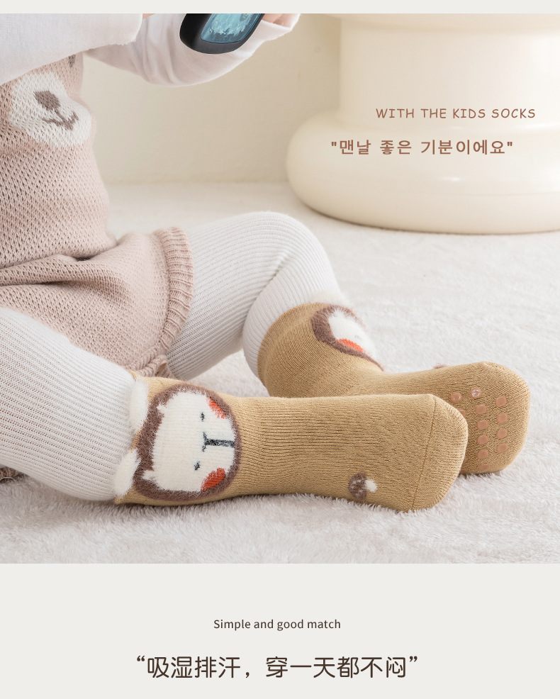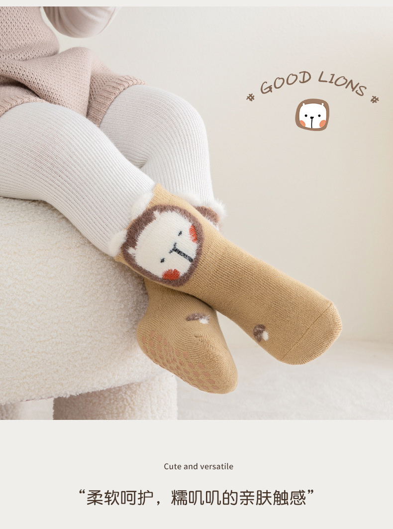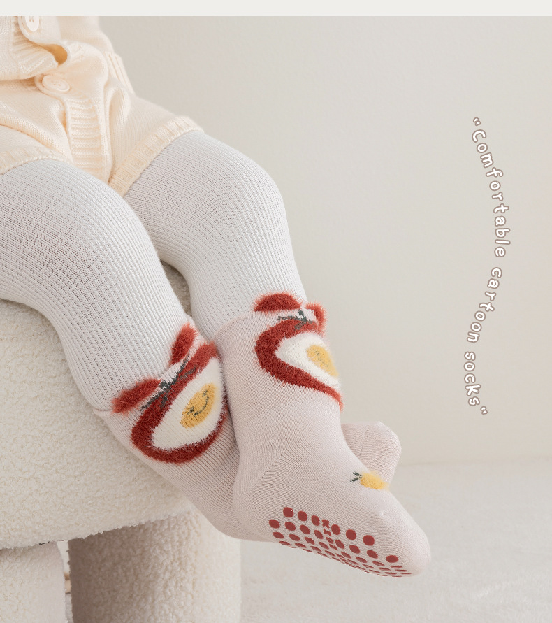 24 겨울 두꺼운 아기 분배 트램폴린 양말 아기 어린이 미끄럼 방지 바닥 양말 3 차원 밍크 모피 양말스토어 가기