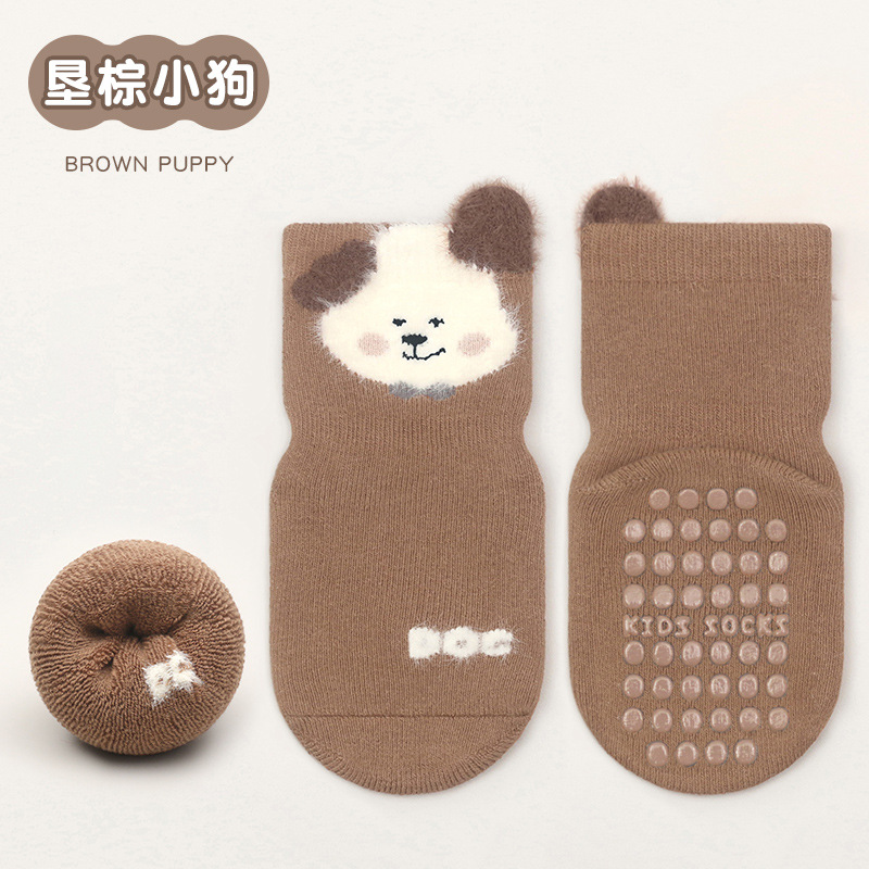 24 겨울 두꺼운 아기 분배 트램폴린 양말 아기 어린이 미끄럼 방지 바닥 양말 3 차원 밍크 모피 양말