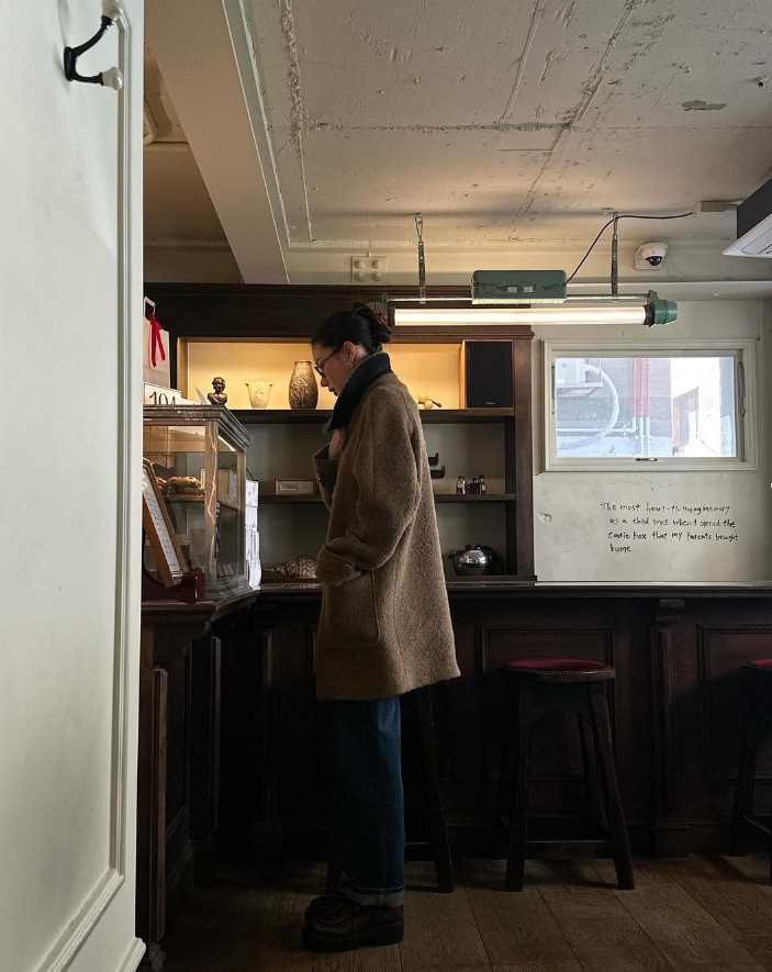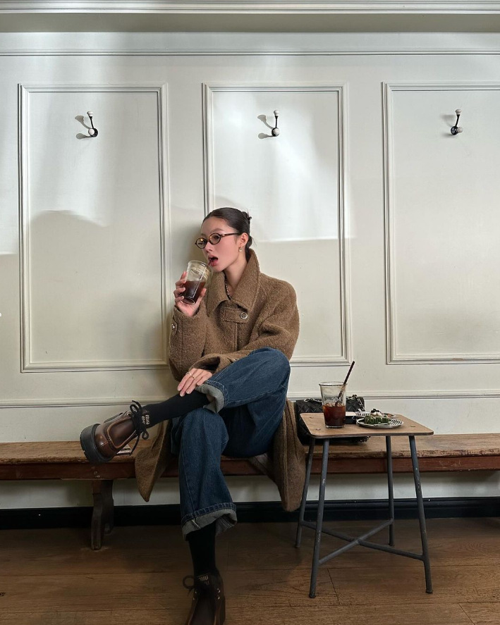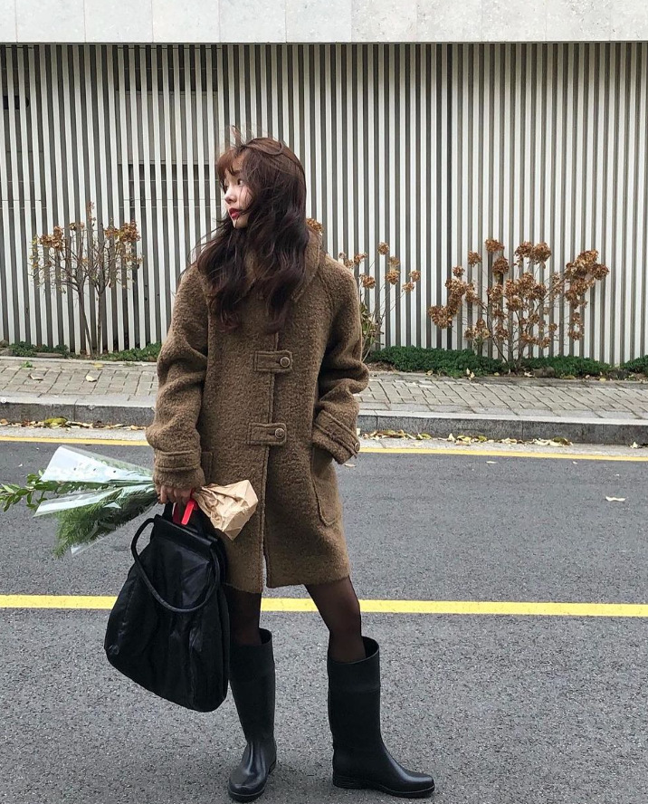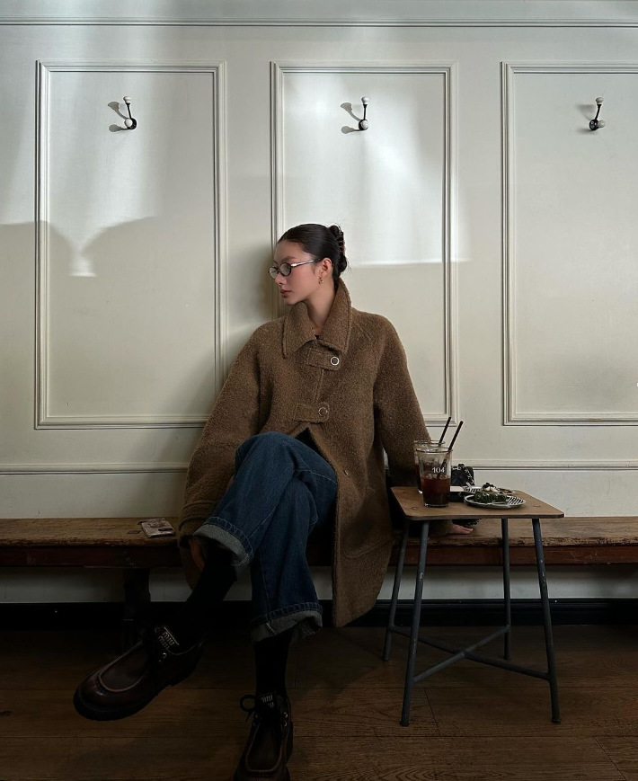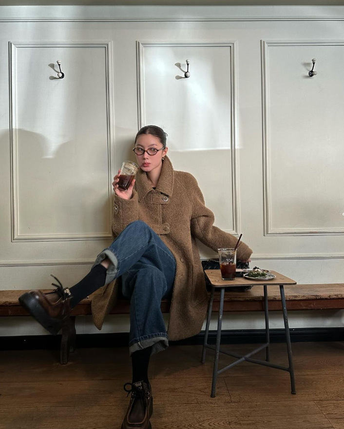 재고 있음 라펠 울 중간 길이 코트 고급스러운 한국 스타일 인스 동대문 2025 겨울 모직 코트스토어 가기