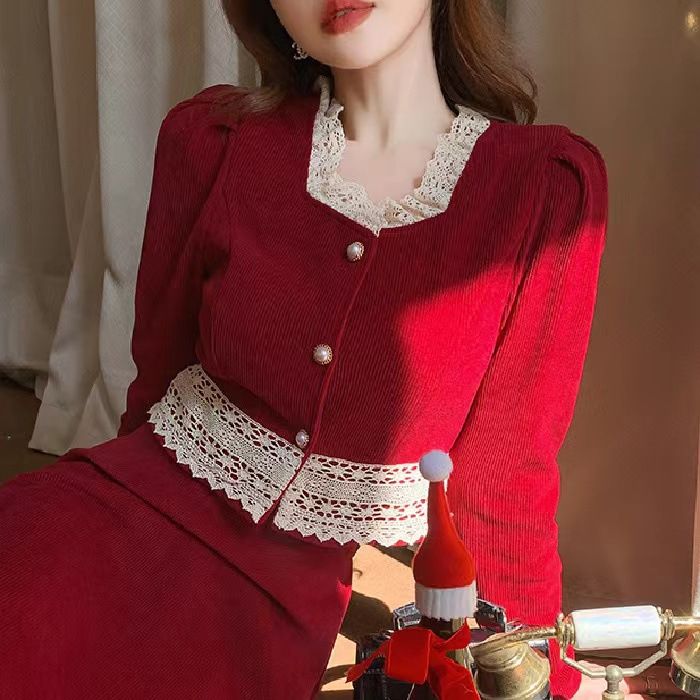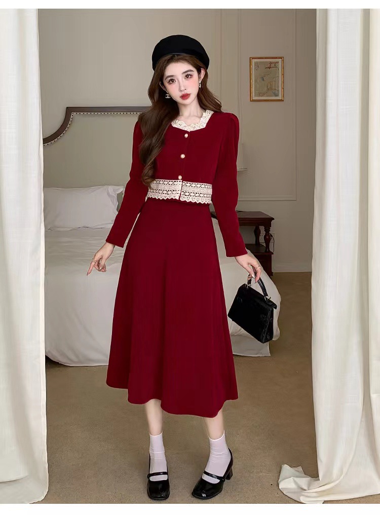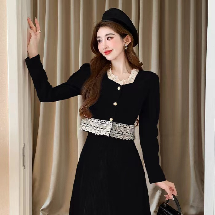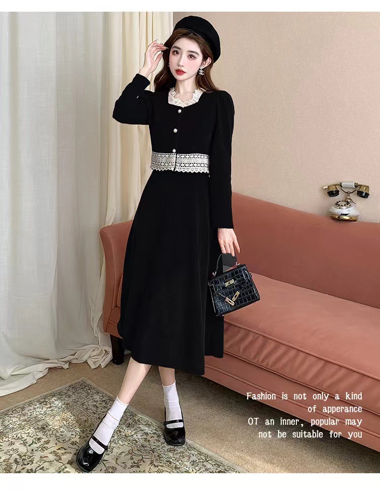 2024 새로운 가을과 겨울 하이 엔드 프렌치 레트로 헵번 스타일 작은 샤넬 스타일 세트 여성 블랙 원피스 여성